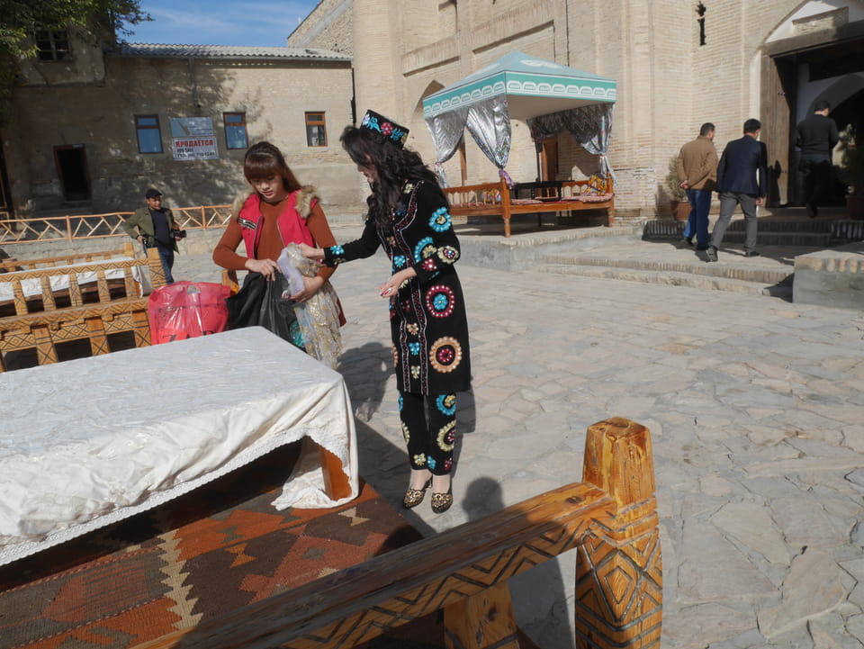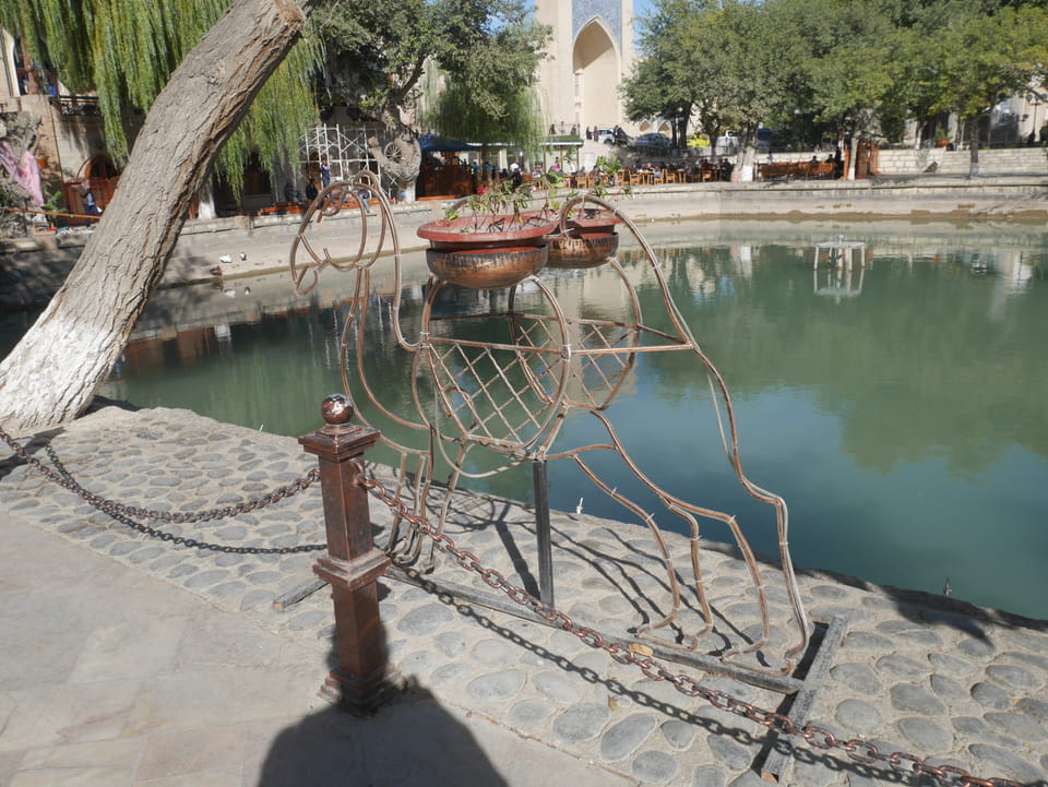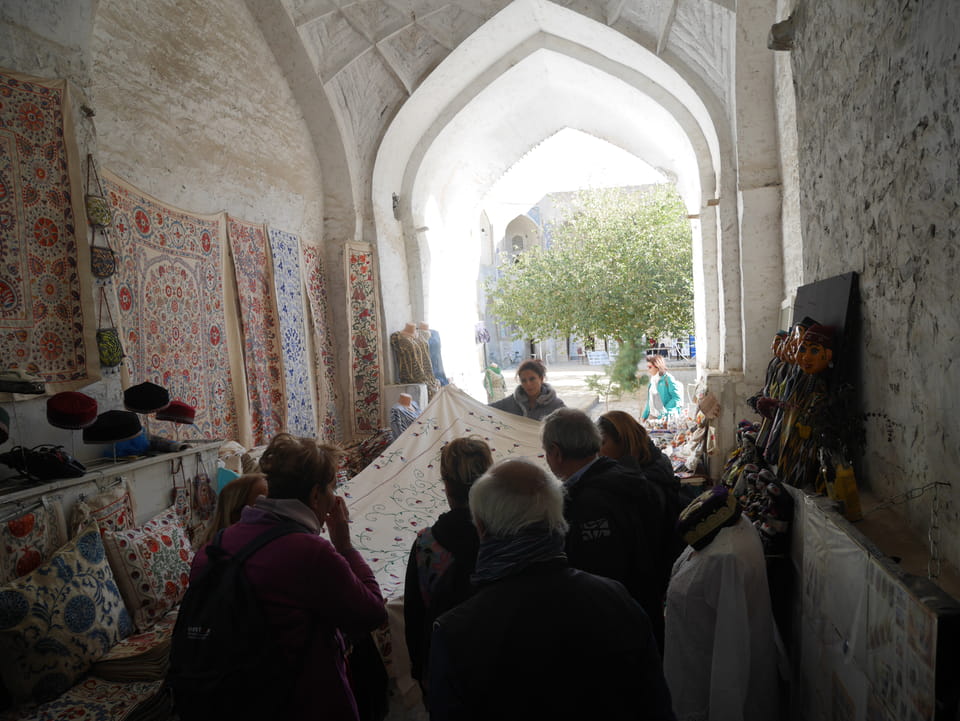 Mich überraschte etwas, wie neu alles aussah. Bukhara wird für Tourismus herausgeputzt, was alles etwas unauthentisch erscheinen lässt. An jeder Ecke werden Souvenirs verkauft. Oft haben die Läden auch die gleichen Artikel, was auf Produktion in China oder Pakistan schlißen lässt. Wieder einmal sah ich bekannte Touristen aus Samarkand. Hier sind auch alle auf der gleichen Route.