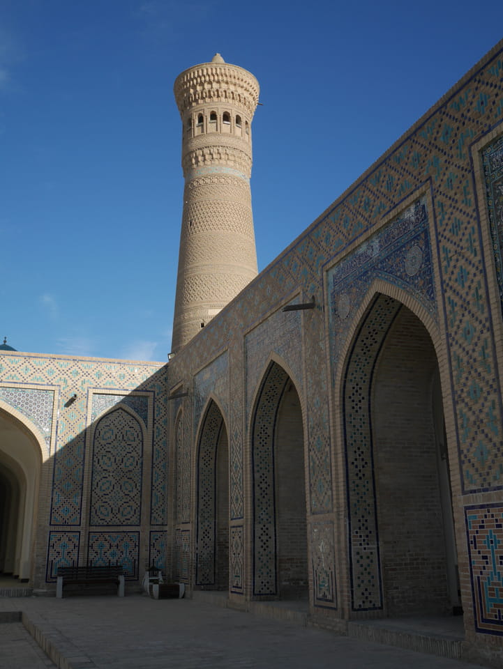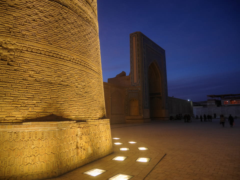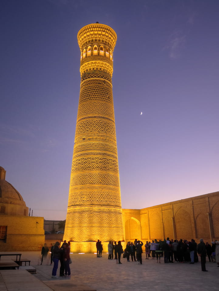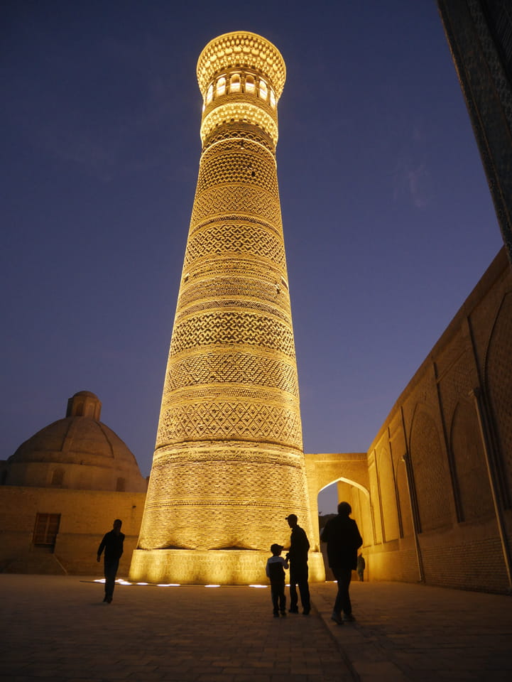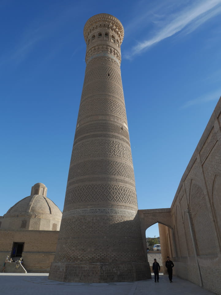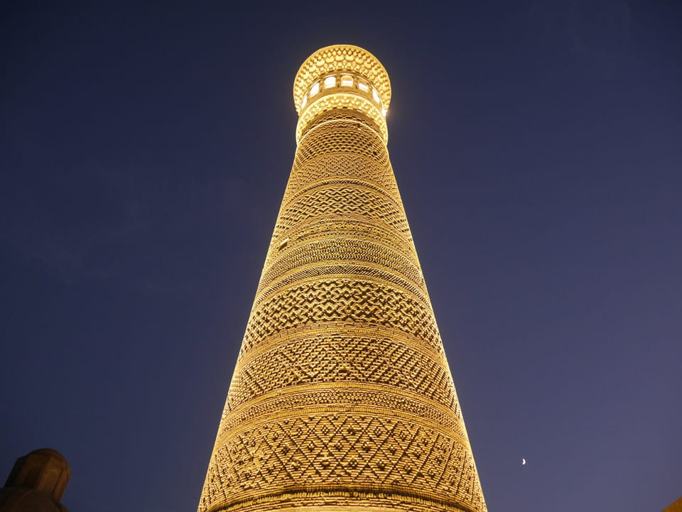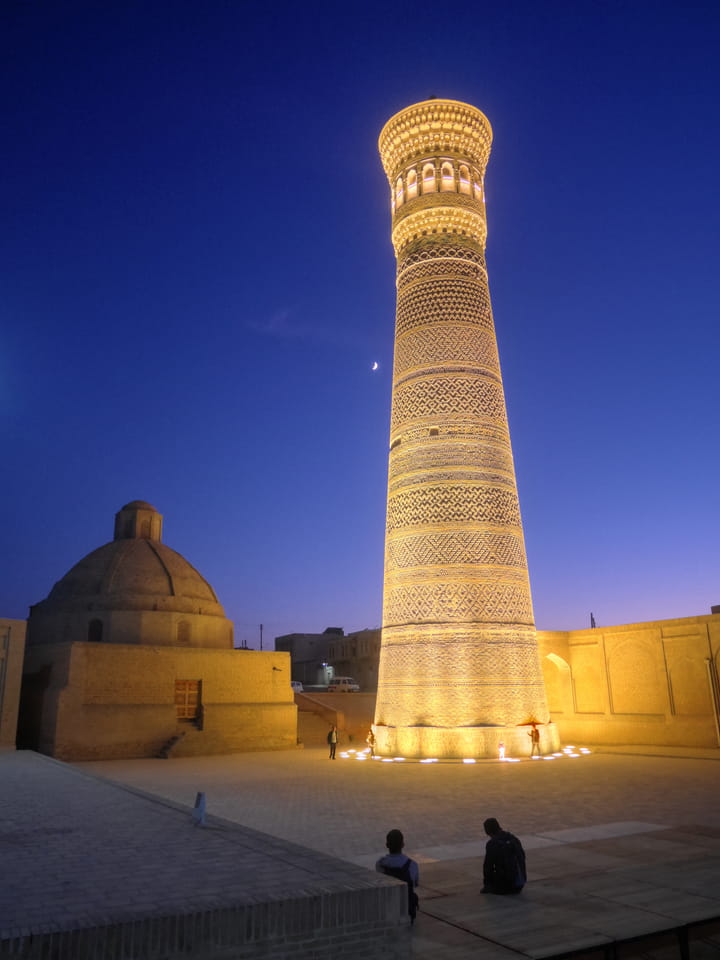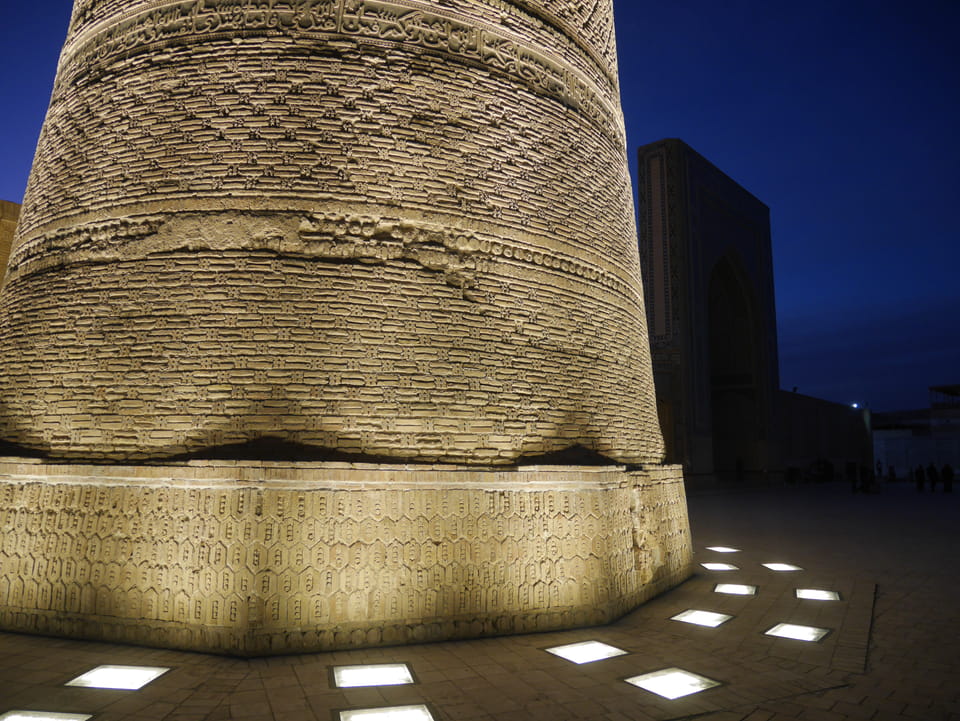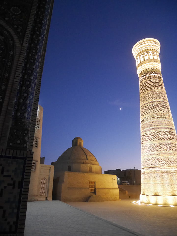 Ganz toll sah dann abends das angestrahlte Kalyan Minarett abends aus. Man sah so ganz besonders die vielen Muster und Stufen in der Ziegelverzierung. Alleine deswegen hatte sich die Stadt schon gelohnt. Genghis Khan ließ das Teil wohl als einziges der wenigen Gebäude stehen, weil es damals in Zentral Asien mit 48m eines der höchsten Gebäude und damit selbst für ihn stehend interessanter war.