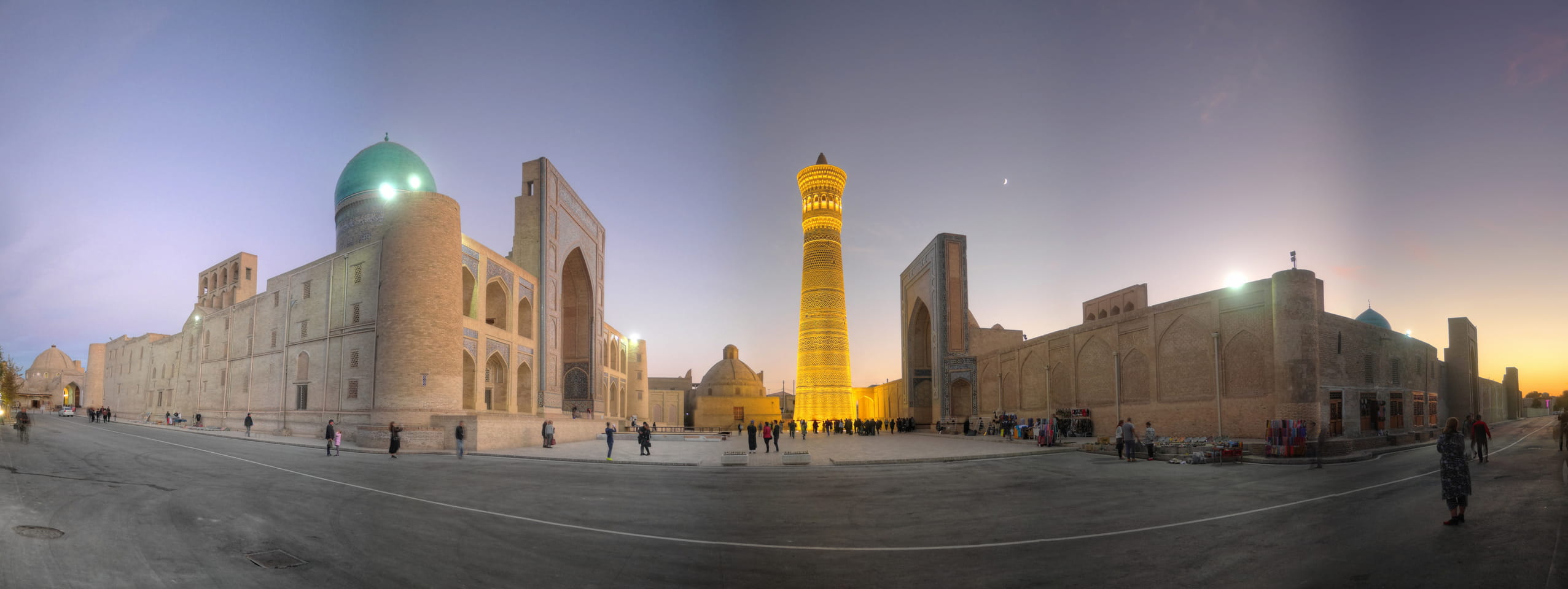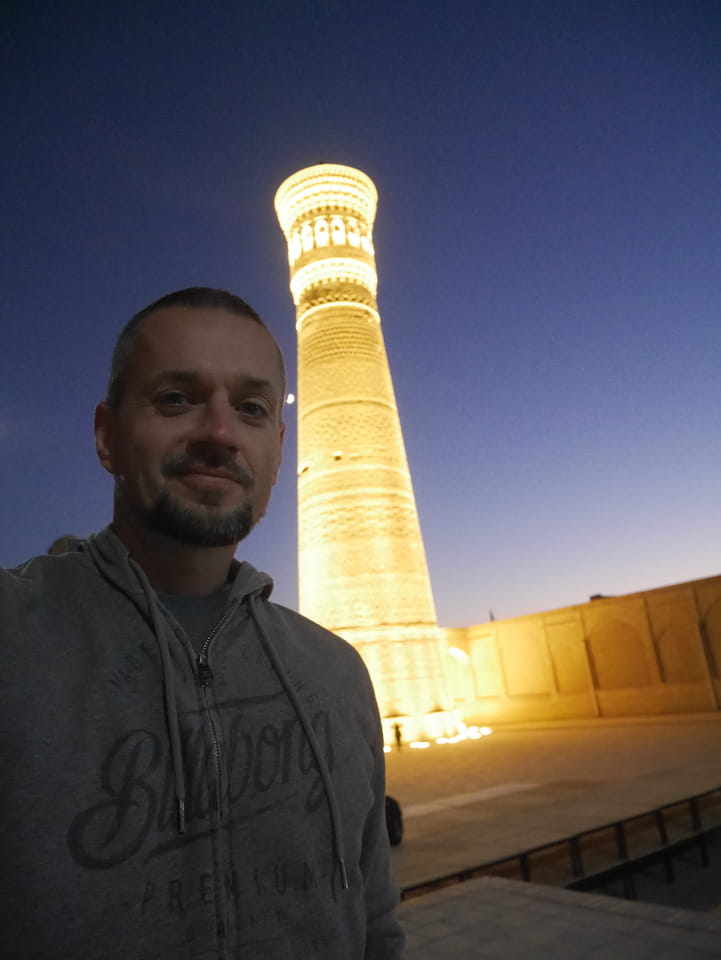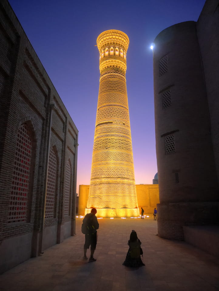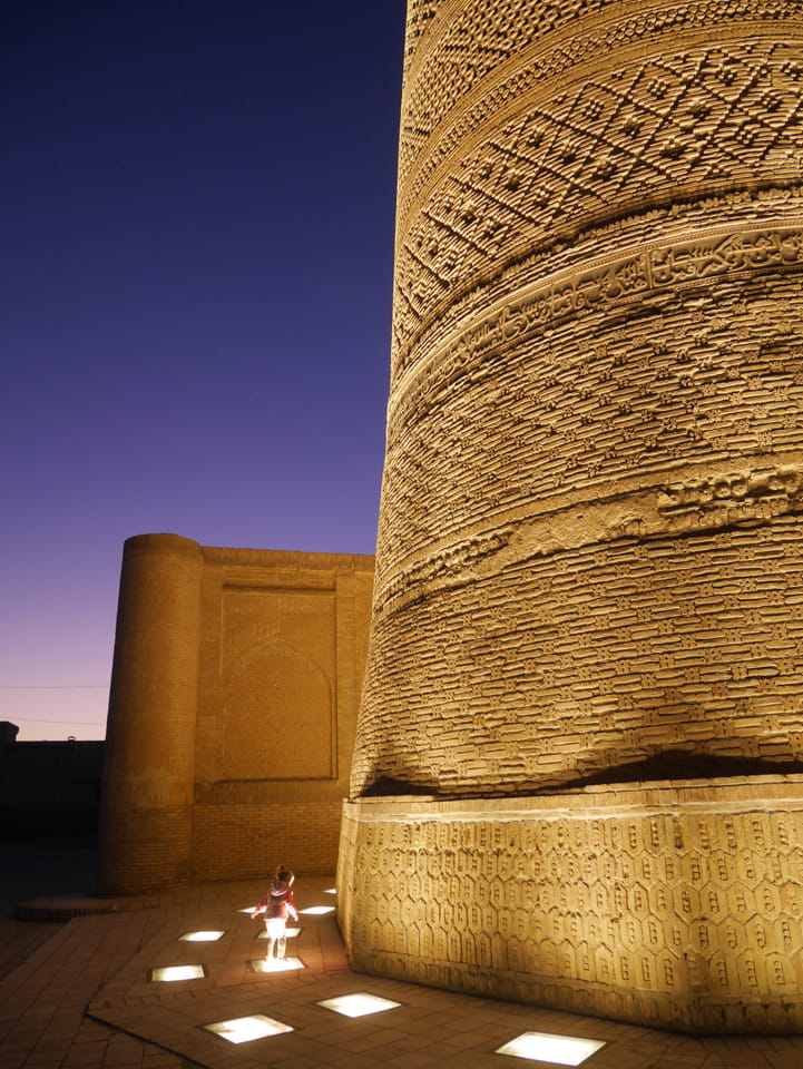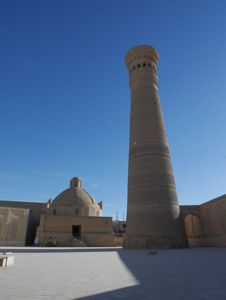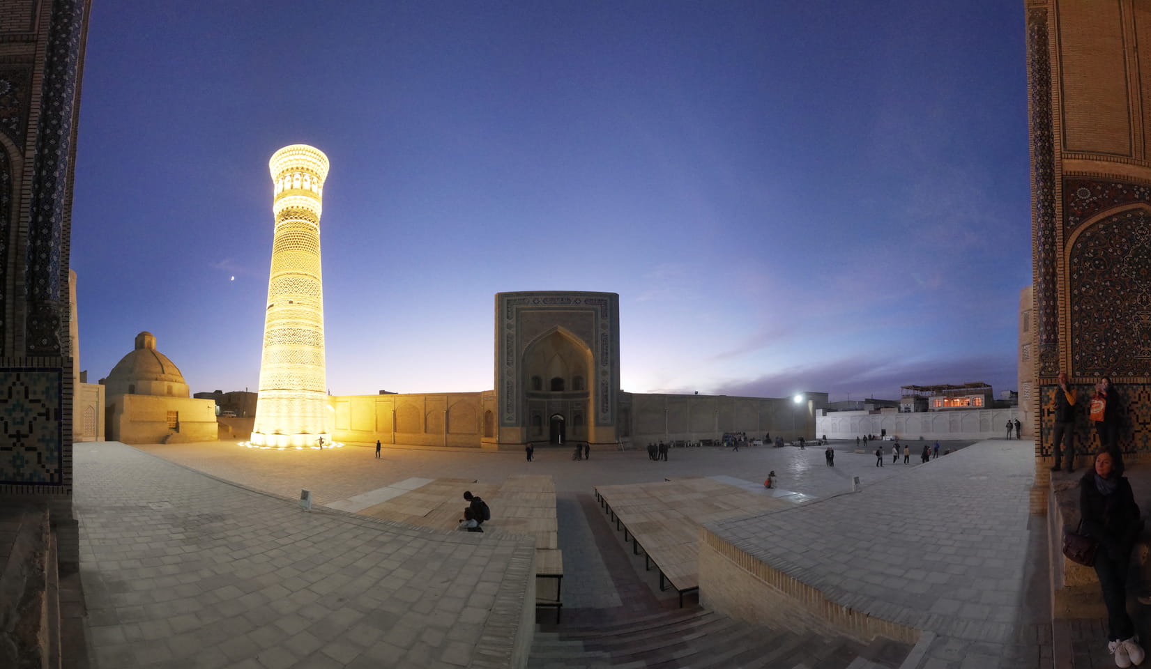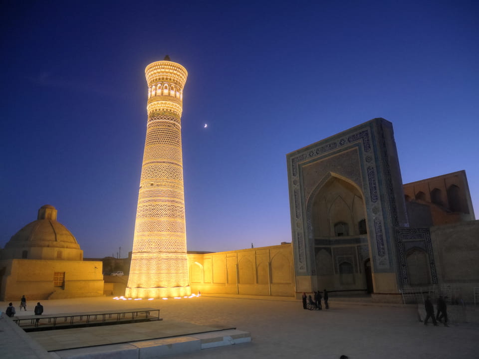 Ganz toll sah dann abends das angestrahlte Kalyan Minarett abends aus. Man sah so ganz besonders die vielen Muster und Stufen in der Ziegelverzierung. Alleine deswegen hatte sich die Stadt schon gelohnt. Genghis Khan ließ das Teil wohl als einziges der wenigen Gebäude stehen, weil es damals in Zentral Asien mit 48m eines der höchsten Gebäude und damit selbst für ihn stehend interessanter war.