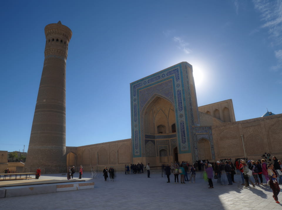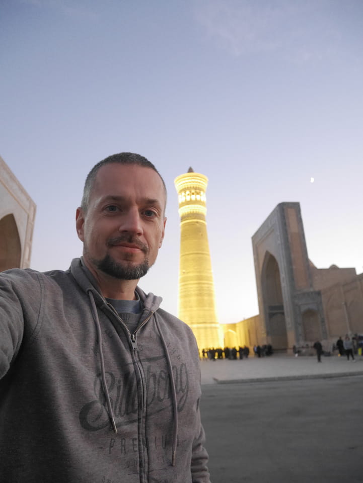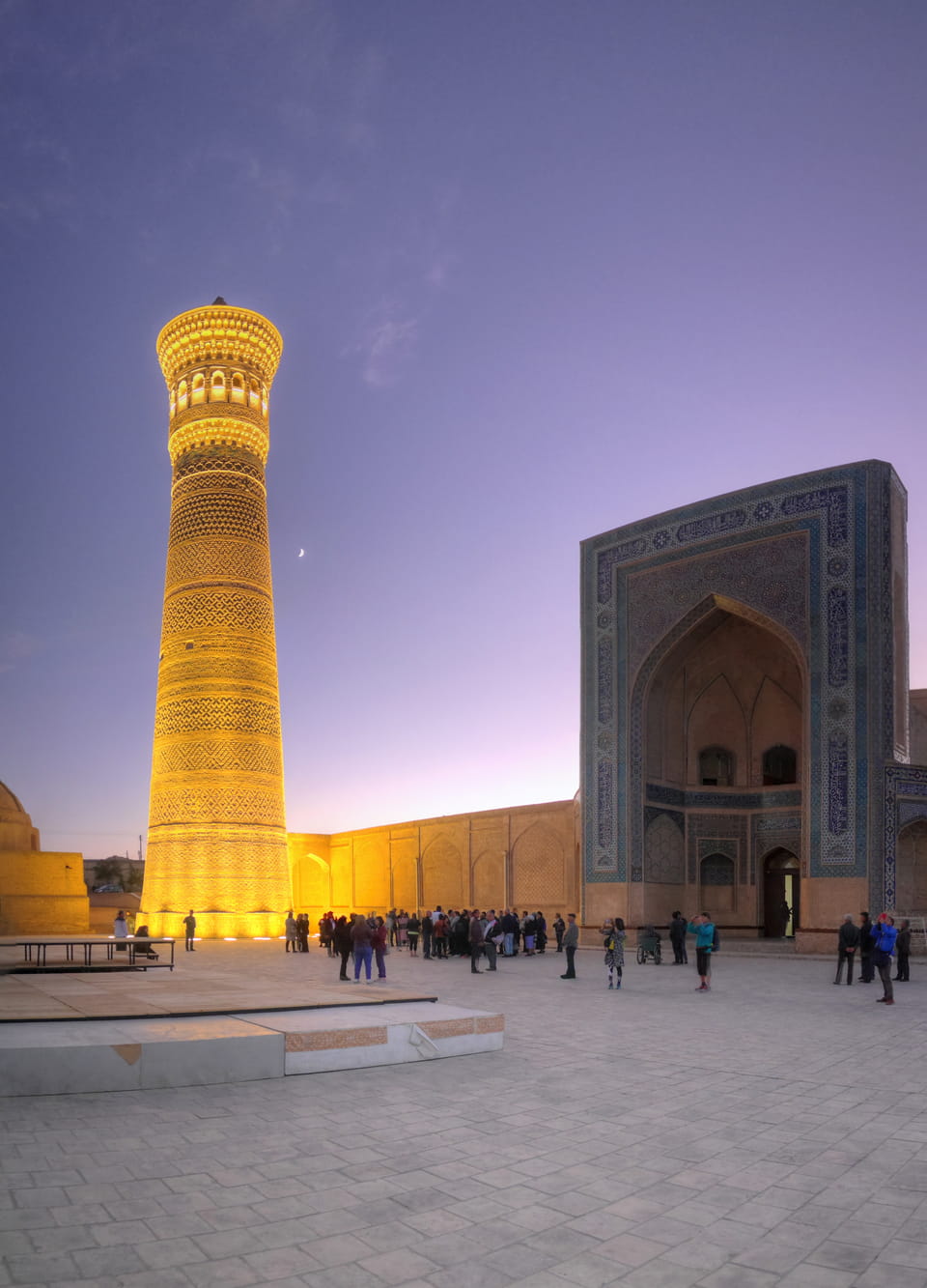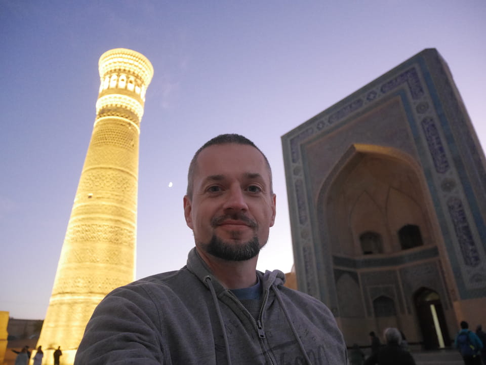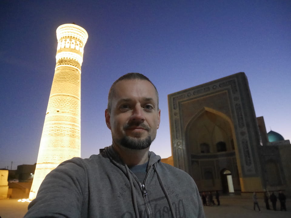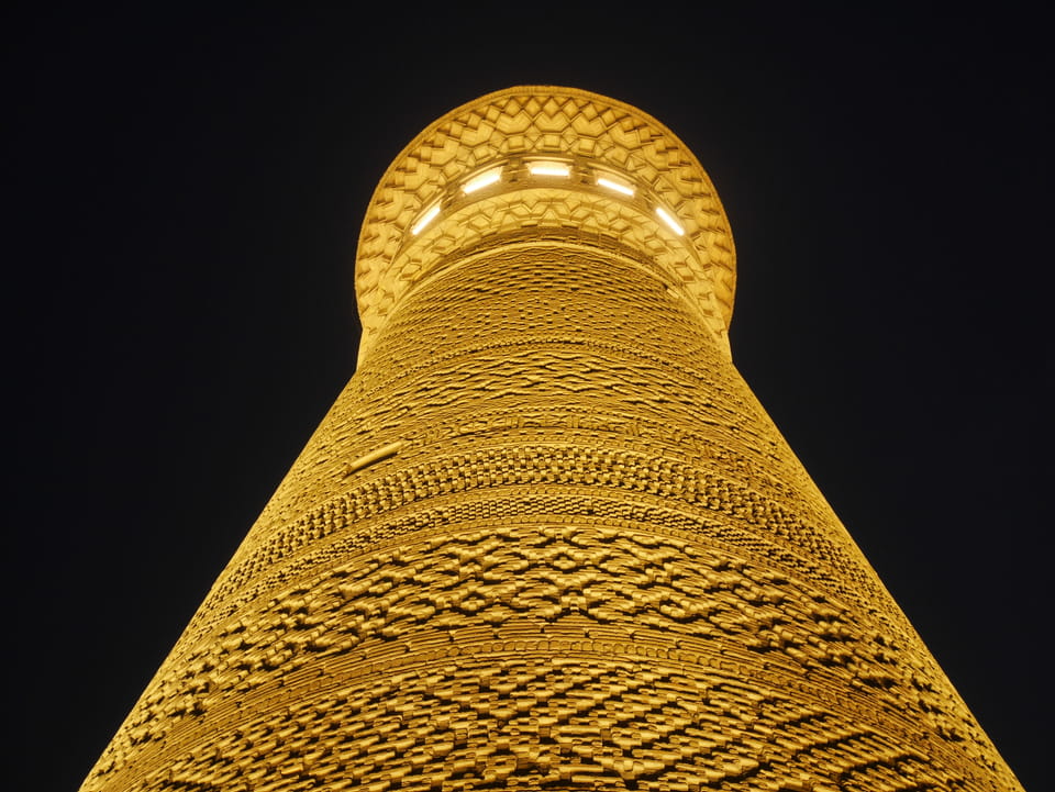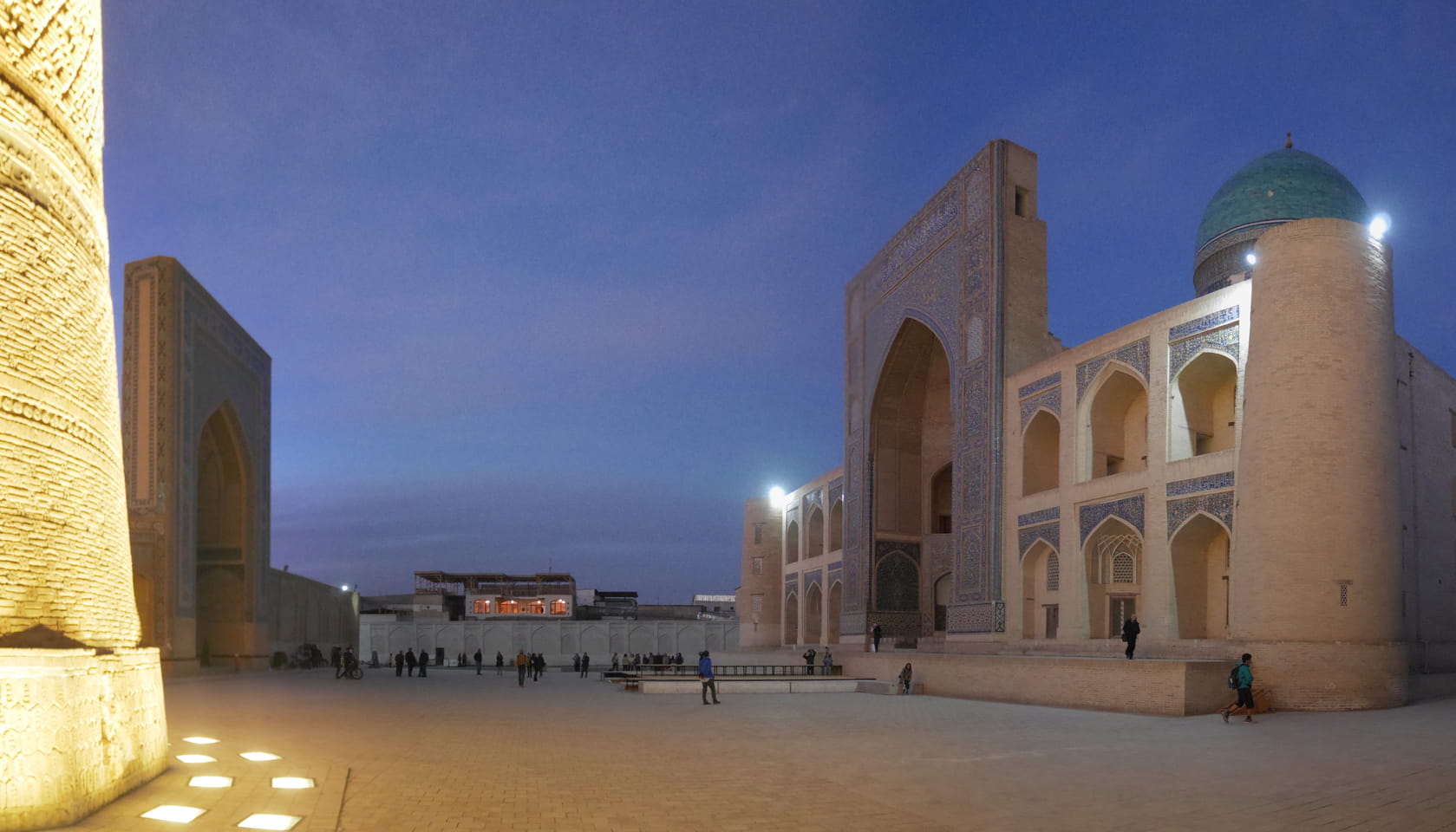 Ganz toll sah dann abends das angestrahlte Kalyan Minarett abends aus. Man sah so ganz besonders die vielen Muster und Stufen in der Ziegelverzierung. Alleine deswegen hatte sich die Stadt schon gelohnt. Genghis Khan ließ das Teil wohl als einziges der wenigen Gebäude stehen, weil es damals in Zentral Asien mit 48m eines der höchsten Gebäude und damit selbst für ihn stehend interessanter war.
