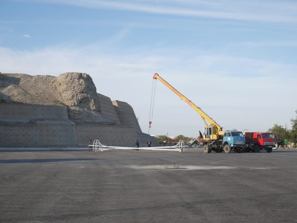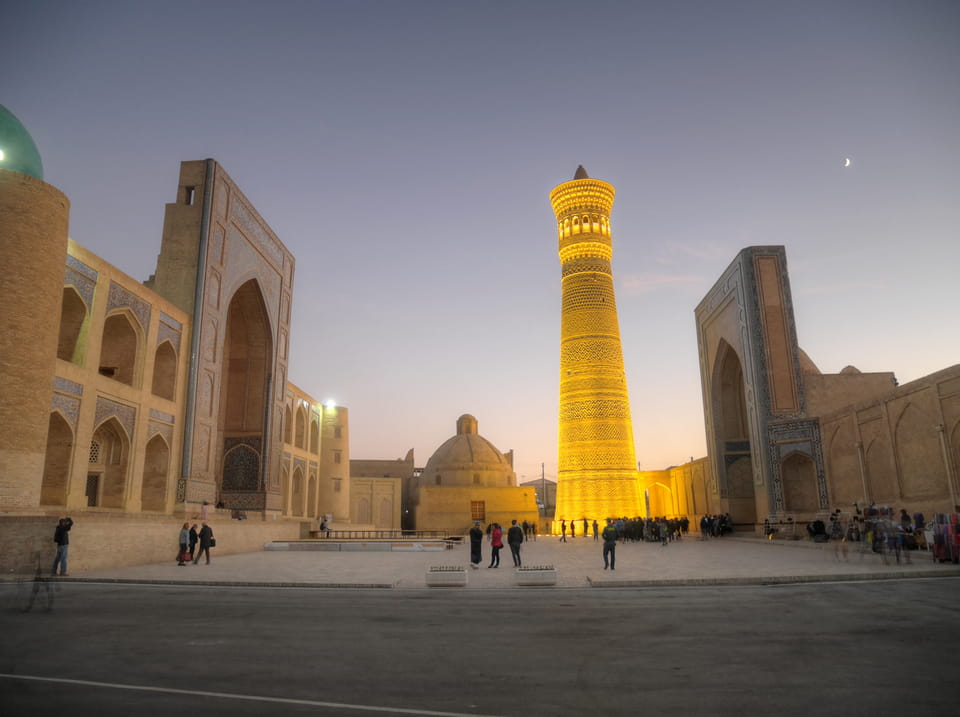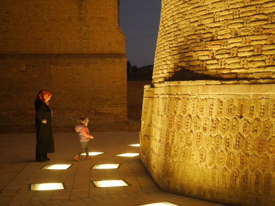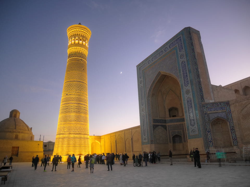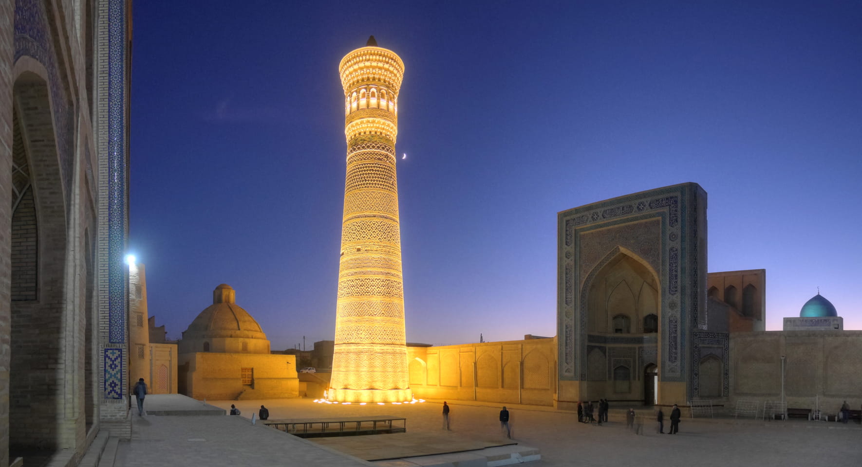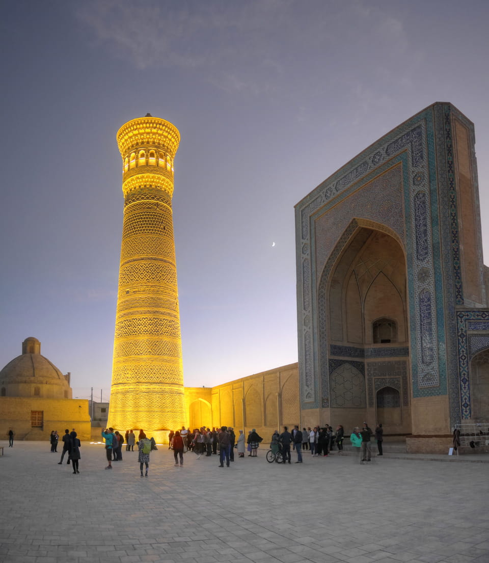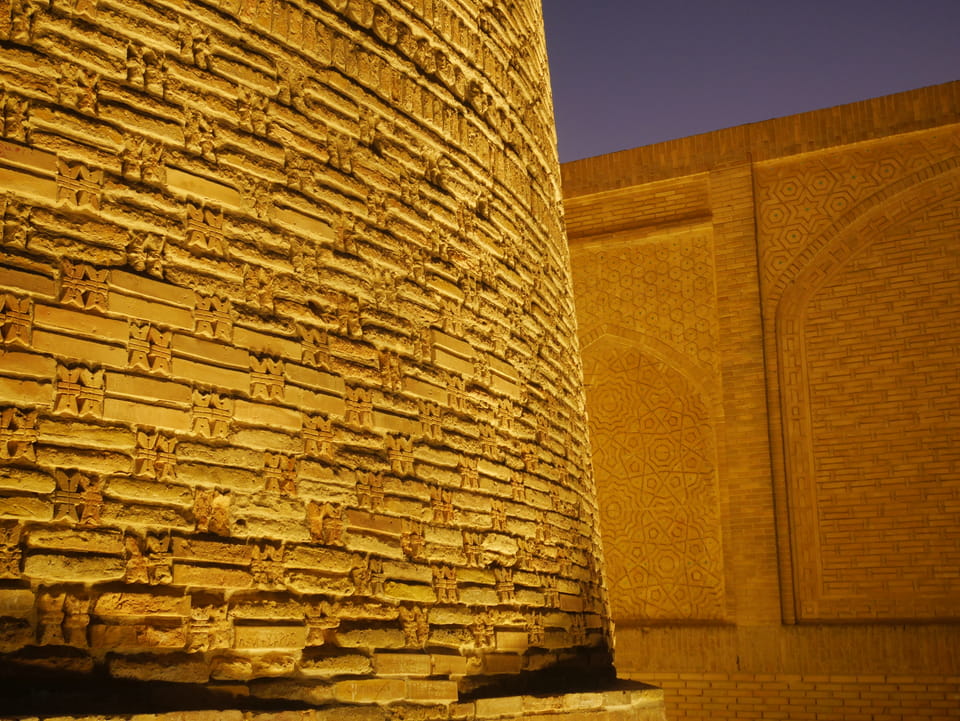 Ganz toll sah dann abends das angestrahlte Kalyan Minarett abends aus. Man sah so ganz besonders die vielen Muster und Stufen in der Ziegelverzierung. Alleine deswegen hatte sich die Stadt schon gelohnt. Genghis Khan ließ das Teil wohl als einziges der wenigen Gebäude stehen, weil es damals in Zentral Asien mit 48m eines der höchsten Gebäude und damit selbst für ihn stehend interessanter war.