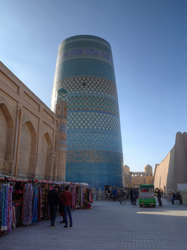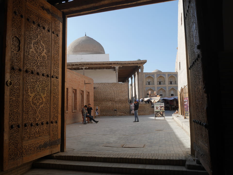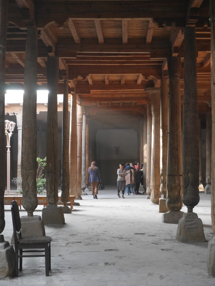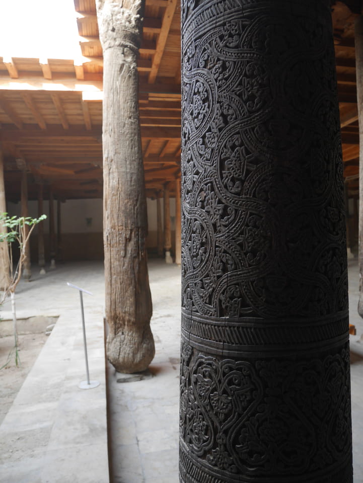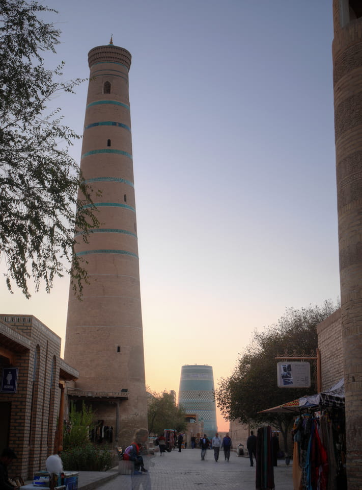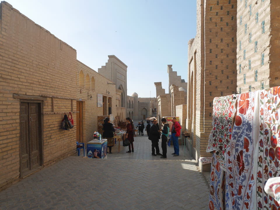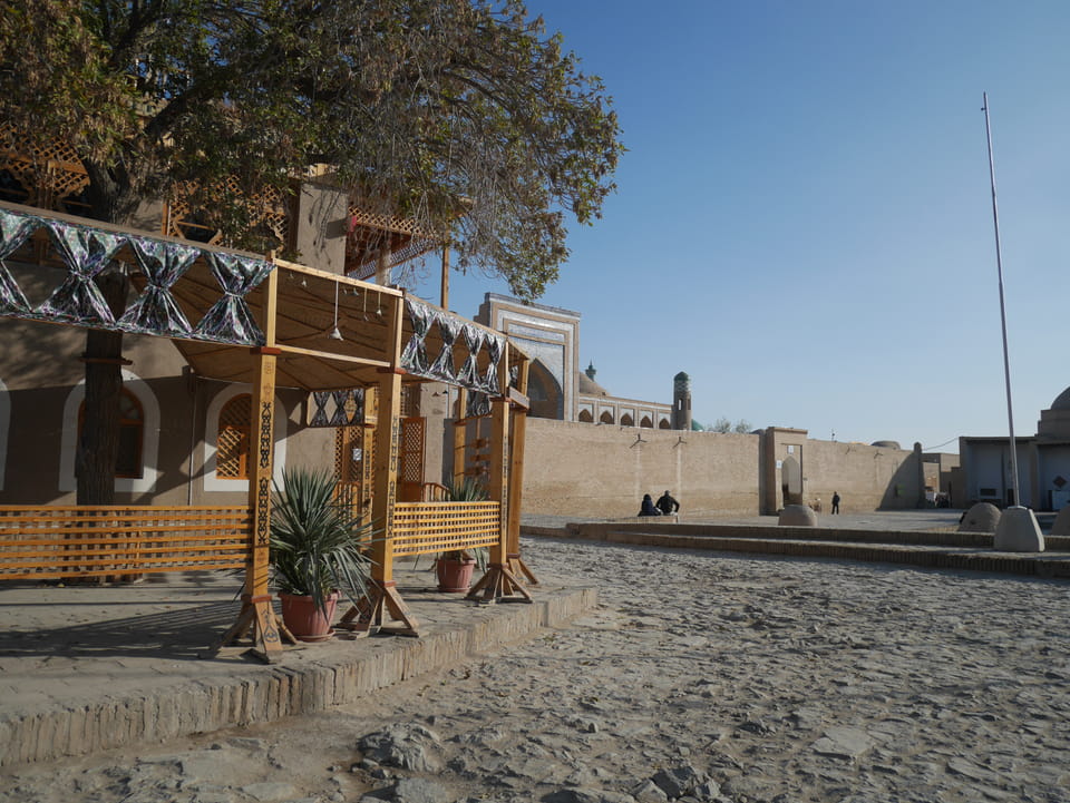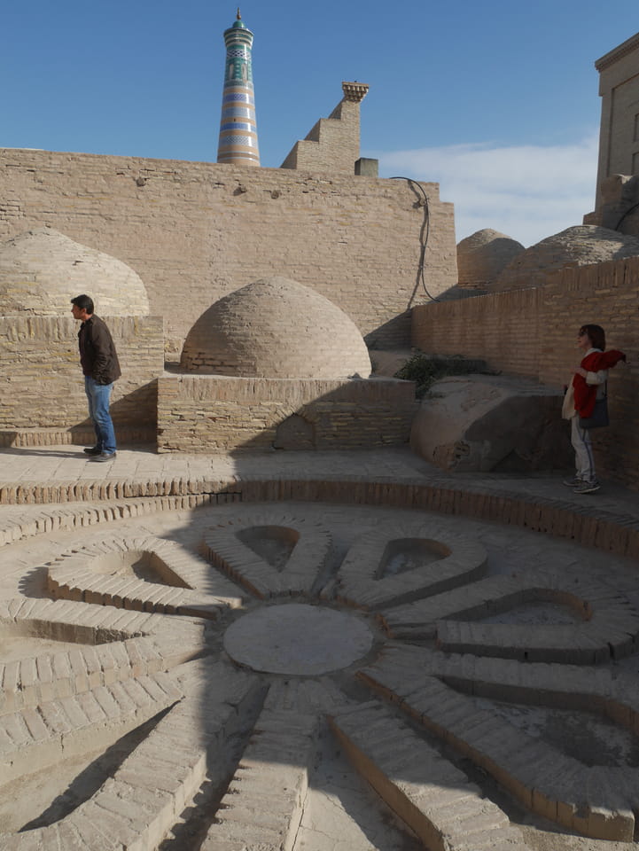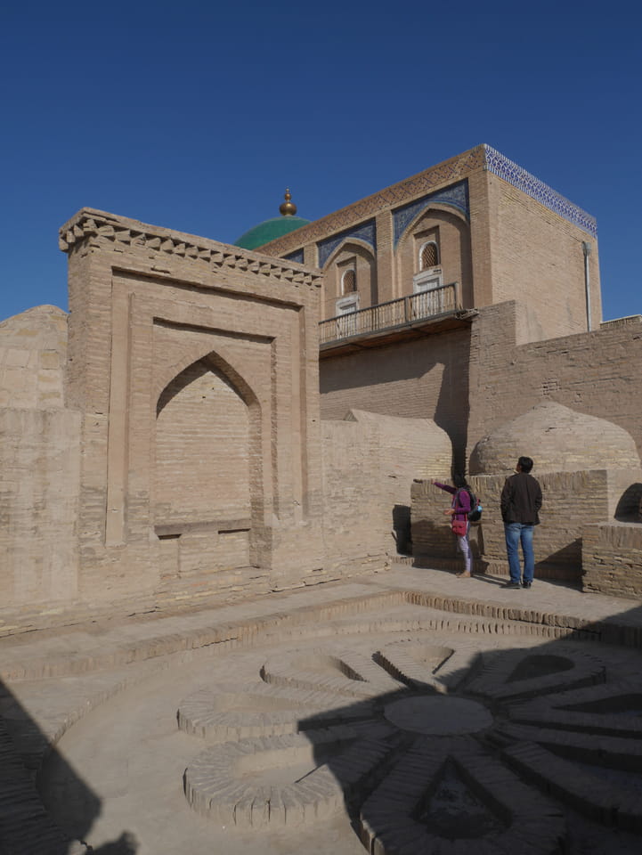 Ich guckte bissel planlos herum, wollte Eintrittsgelder vermeiden. Die vielen hölzernen Träger in der Djuma Moschee waren teils aufwändig verziert. Das Islam Khoja Minaret dann aber war das Highlight heute, denn man konnte da hoch klettern. Eine Frau kassierte 100 Som ab (€1,10) wobei ich klar machte, da bis zu zwei Mal hochzukraxeln. Ich wollte später gegen Sonnenuntergang nochmal hoch.