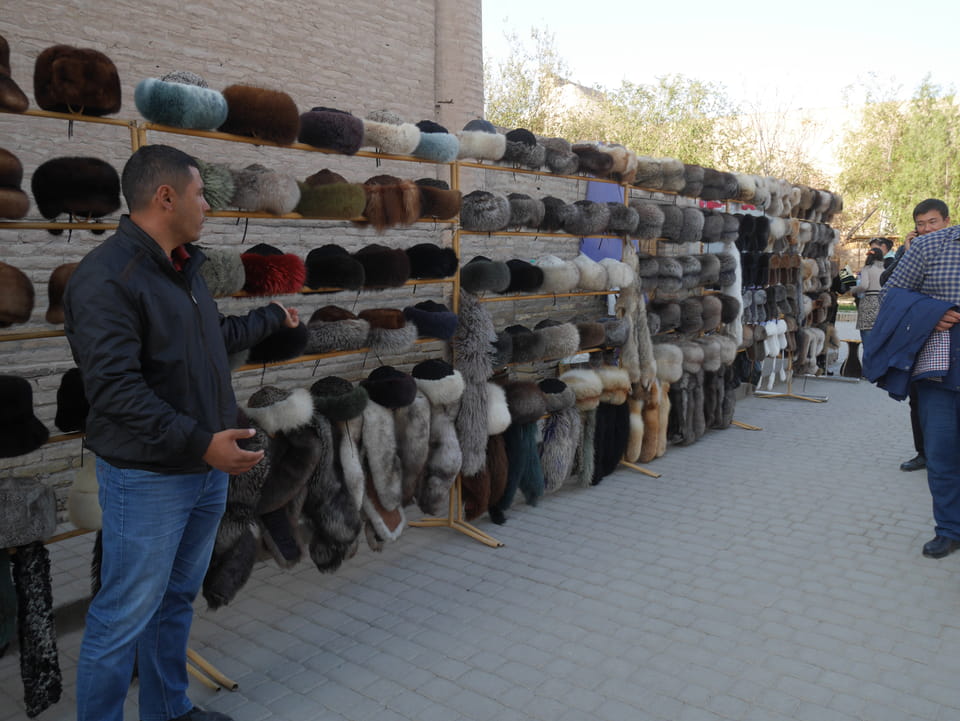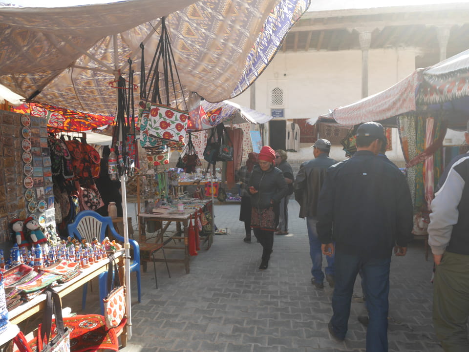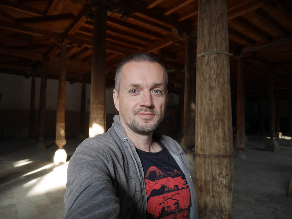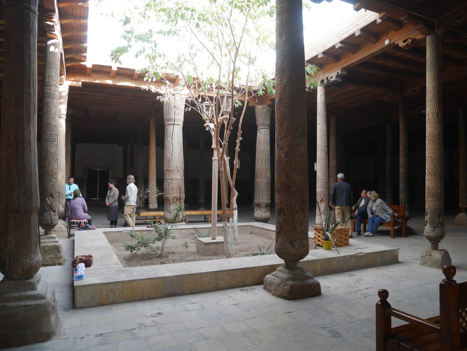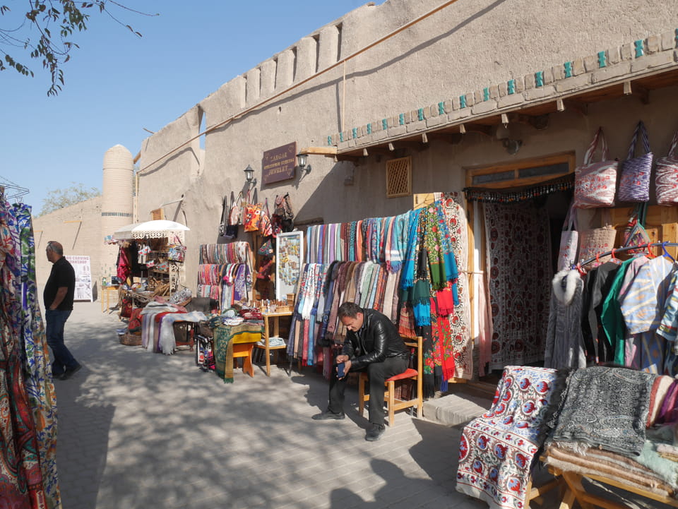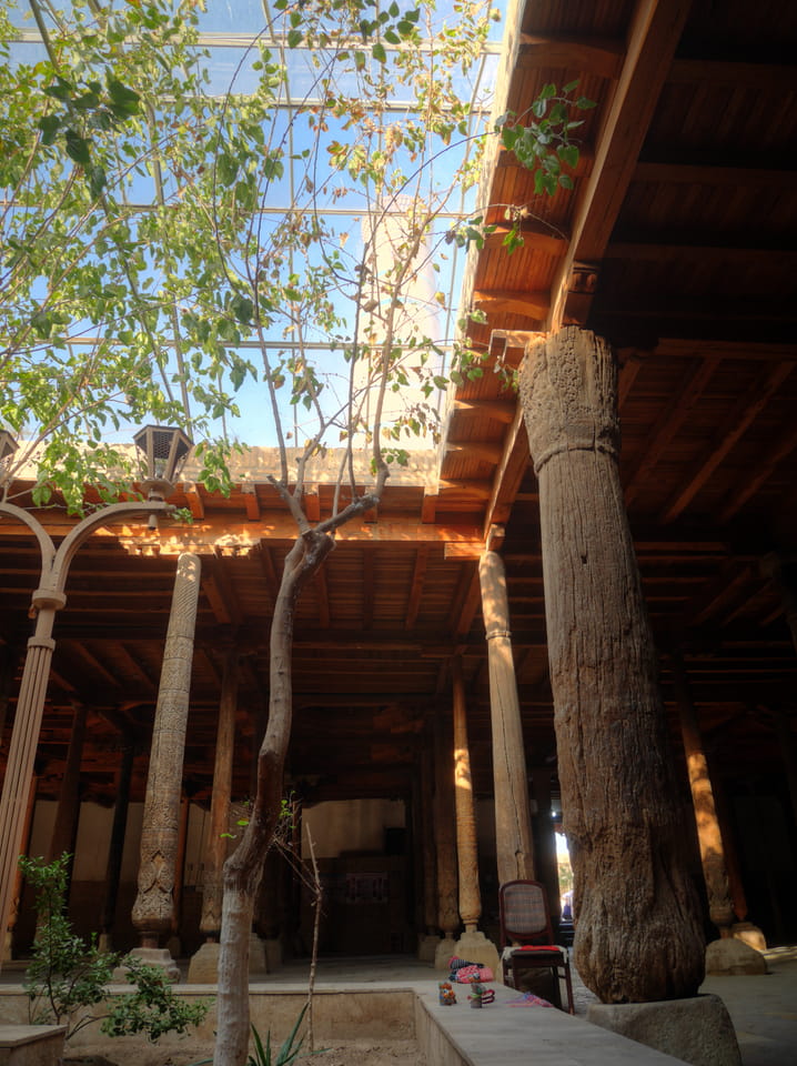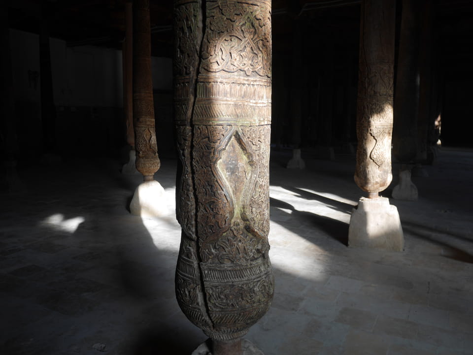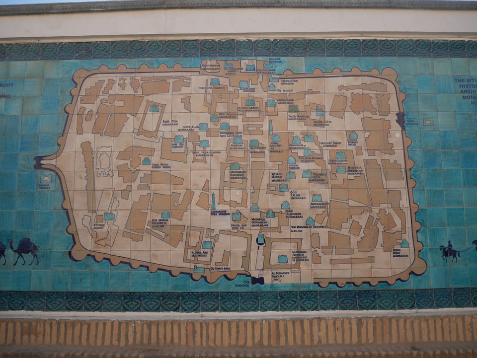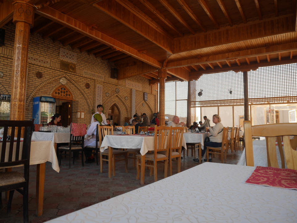 Ich guckte bissel planlos herum, wollte Eintrittsgelder vermeiden. Die vielen hölzernen Träger in der Djuma Moschee waren teils aufwändig verziert. Das Islam Khoja Minaret dann aber war das Highlight heute, denn man konnte da hoch klettern. Eine Frau kassierte 100 Som ab (€1,10) wobei ich klar machte, da bis zu zwei Mal hochzukraxeln. Ich wollte später gegen Sonnenuntergang nochmal hoch.