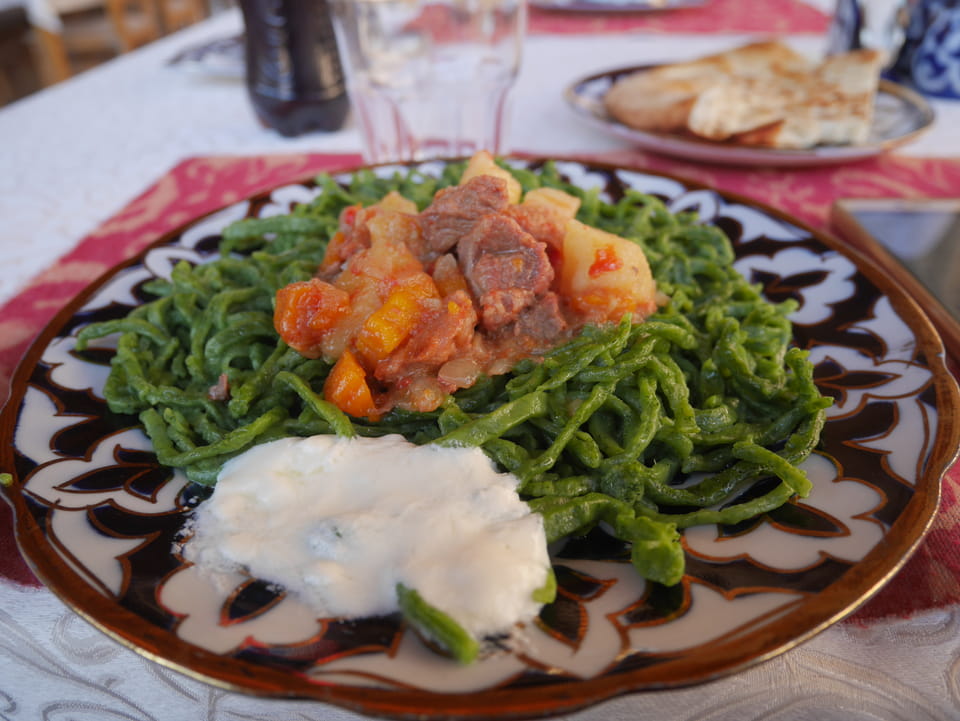 Größere Touristengruppen fehlten heute in den Straßen. Zum Mittagessen nahm ich eines der traditionellen Gerichte mit Spinatnudeln, was ganz OK war.