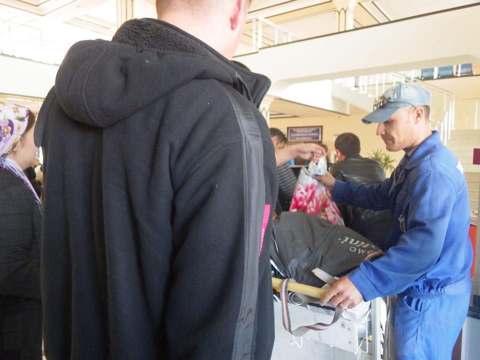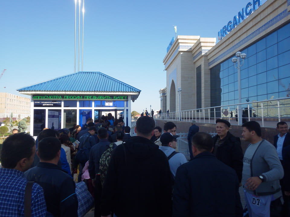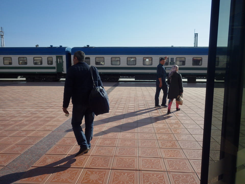 Nun war’s schon 15:00 und ich nahm ein Taxi zum Bahnhof. Lustiger Fahrer, 5K. Ich kaufte mir noch ’ne Plastiktasse, Kekse für paar Cent. Da war ich nun am Urgench Vokzal, eine Schlange vor der Sicherheitskontrolle hatte sich schon gebildet. Als ich dran war und mein elektronisches Ticket zeigte, verwies man mich auf das Kassengebäude. Gut, dass ich Zeit hatte. Erst dort gab’s ein echtes Ticket ausgedruckt.