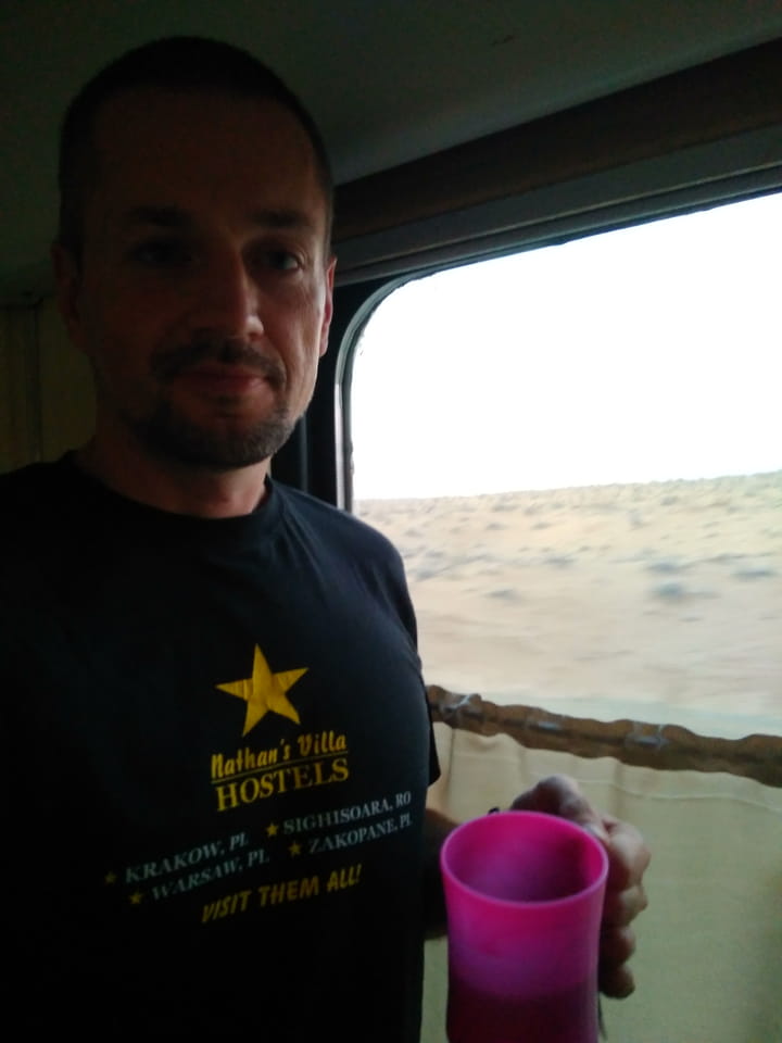 Ich war fix müde und schlief mal ’ne Stunde. Tasse Tee auf der Fahrt durch die Wüste. Das war schon cool, da durch den Sand zu fahren. Nach dem Sonnenuntergang legte ich mich wieder hin und schaute mir Filme auf dem Handy an. Zuerst kam der Rest „Rampage“ dran. War OK für ein Videospiel-Film. Aber „Valerian“ war doch ziemlicher Rotz. Die Effekte super aber die Schauspieler, was sollte das? Der Typ sah aus, als hätte er Tage nicht geschlafen. Das Mädel machte ihr Ding und da sollte irgendeine Romanze entstehen? Ich wunderte mich dann auch nicht mehr, als Chinesische Schauspieler auftauchten, weil die Chinesen wohl den Film mitfinanzierten. Alles in allem ein teurer Schrottfilm, den ich nur wegen der Effekte bis zu Ende schaute. Ich bekam da etwas Hass auf die Chinesen und wohl den Script-Einfluss. Und dann war noch Rhianna drin. Mannomann. Naja, wenigstens verrückt das Ganze – ordentliches Geldverplempern.