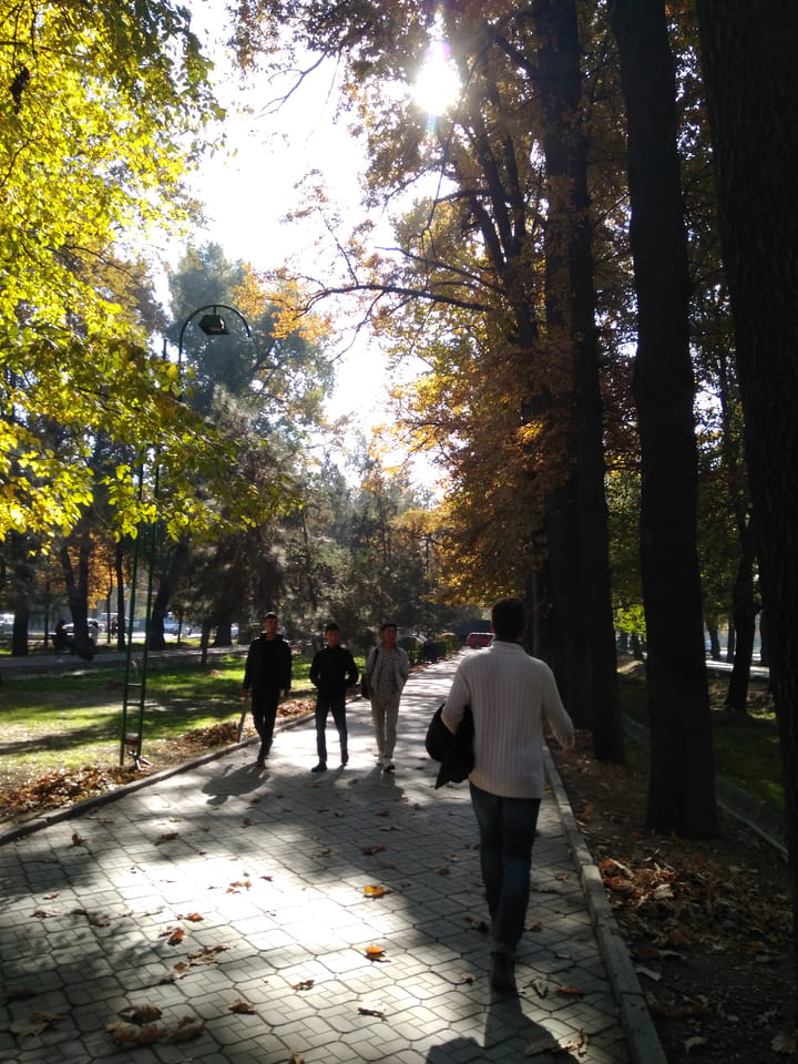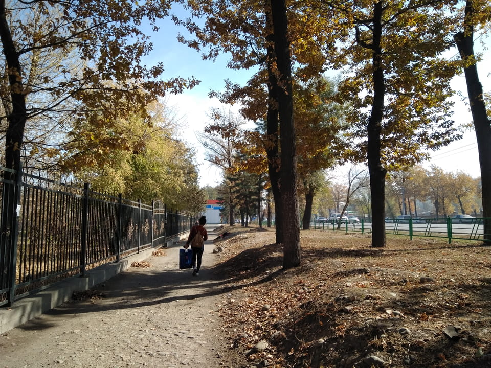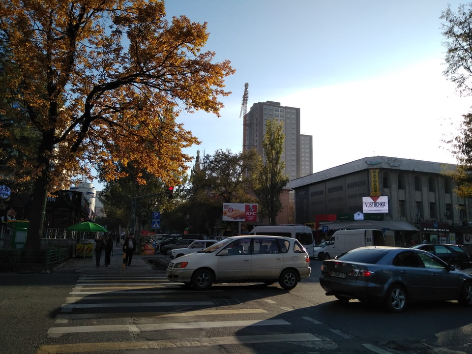 Die Nacht ging ganz gut vorüber. Ich konnte ordentlich eingeklemmt ganz gut schlafen, mit meinem kleinen Rucksack als Kissen. Die letzte Grenze wieder von Kasachstan raus und Kirgistan rein, Tagesanbruch und dann war ich wieder zurück in Bishkek.