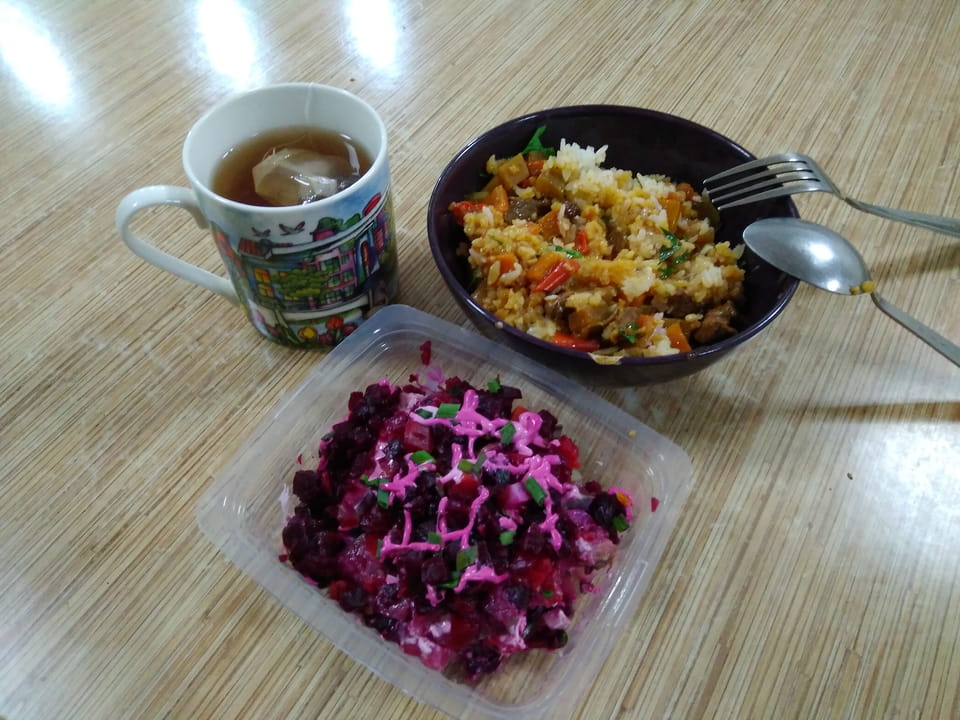 Ich zog 5K, checkte ein – jetzt ca. 13 Uhr und zahlte die 1428 KGS (€18). Ich hatte mein Bett, ’ne Dusche und war erst mal zufrieden. Internet mal wieder schnell und dann später im Supermarkt machte ich weitere Sachen klar. Ein Einkauf. Ich gab dann auch meinen Pullover und Rucksack zum Nähen ab. Beides zusammen um die 300 und bitte heute noch, weil ich morgen vielleicht zum Ala Archa komme.