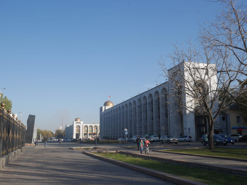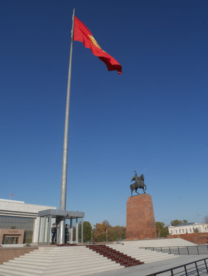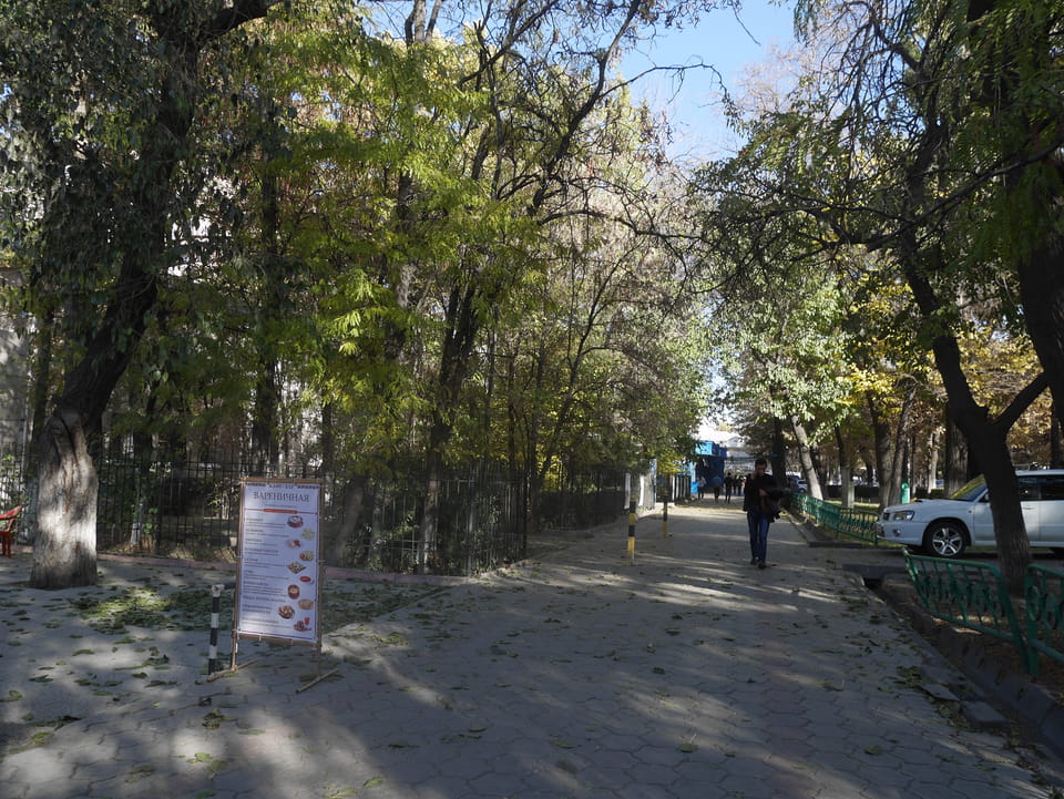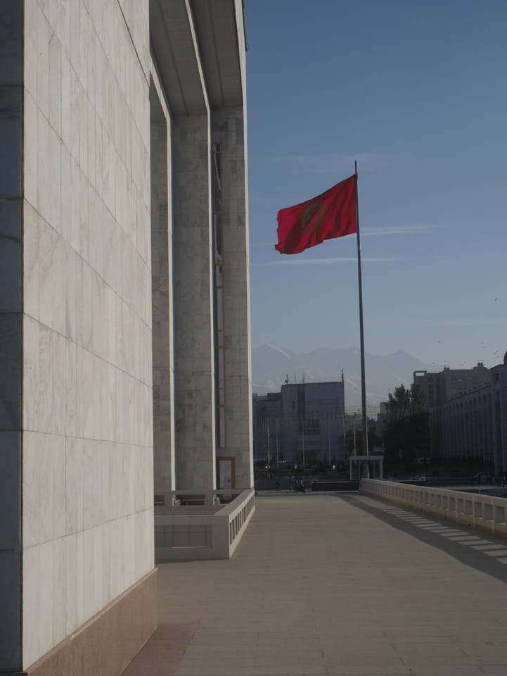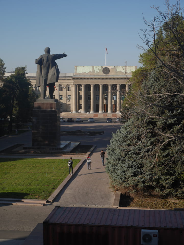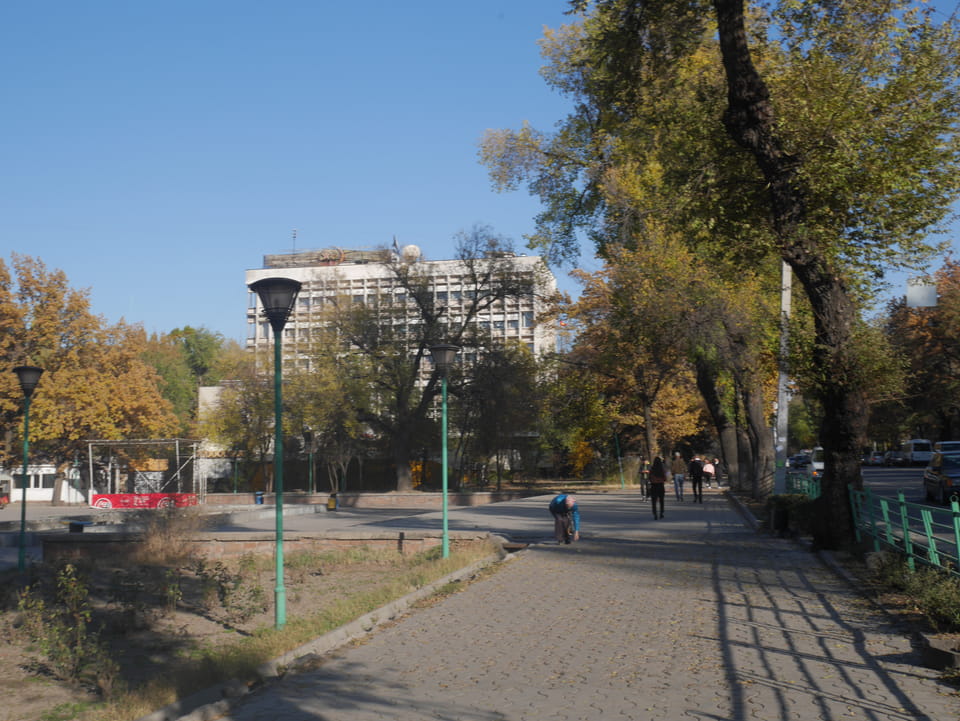 Meine Wäsche machte ich, damit wenigstens was Sinnvolles heute geschieht. Vor 16:00 dann endlich raus und nebenan ein eher schlechtes Essen. Suppe mit komisch schmeckendem Brot. Ich wollte in’s Geschichtsmuseum, suchte nach dem Eingang und sah nach einer Runde, dass es noch immer (oder wieder) renoviert wird. Damit erübrigte sich die touristische Alternative. Angesichts des genialen Wetters ärgerte ich mich weiterhin, Ala Archa verpasst zu haben. In der Ferne sah ich die Berge. So schön! Eventuell klappt es noch morgen, doch da ziehe ich um in ein Privatzimmer, womit die Zeit zu knapp wird.