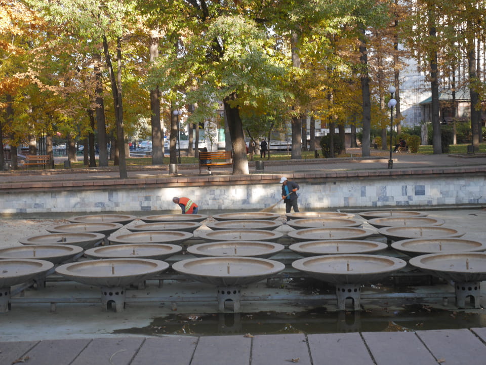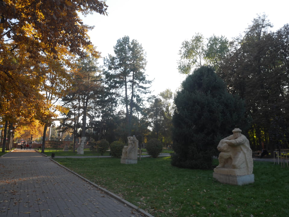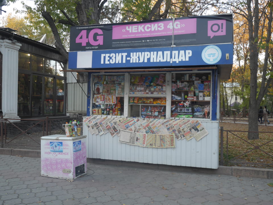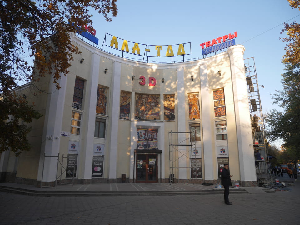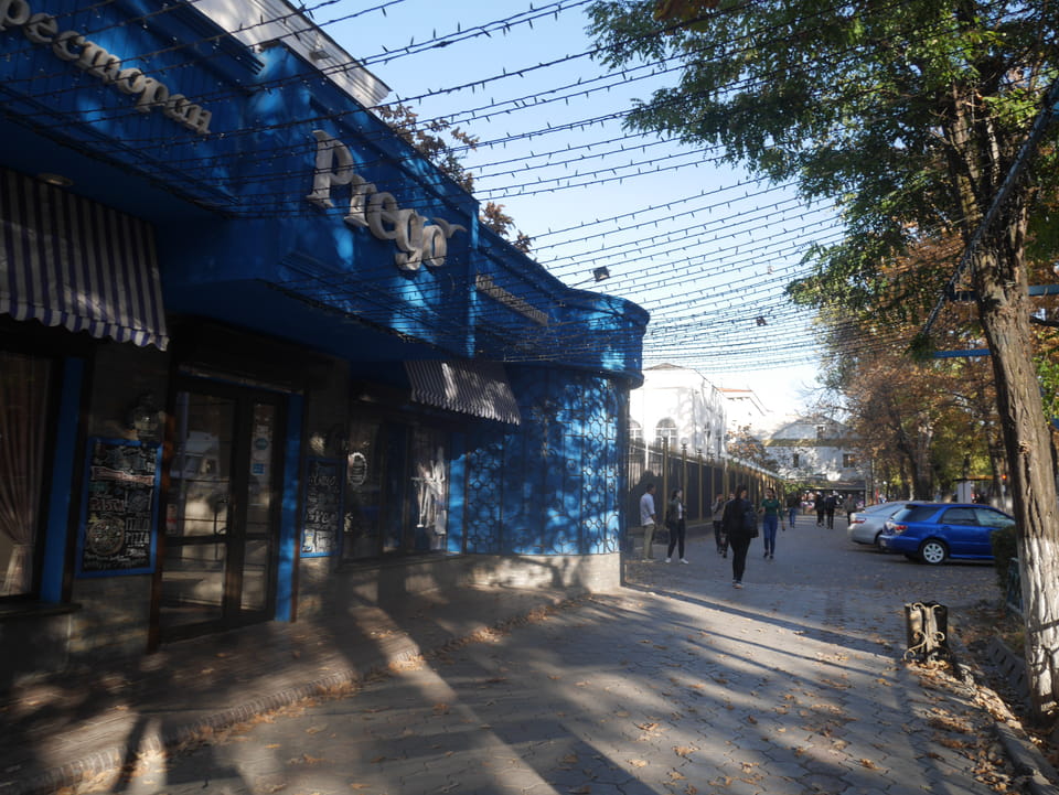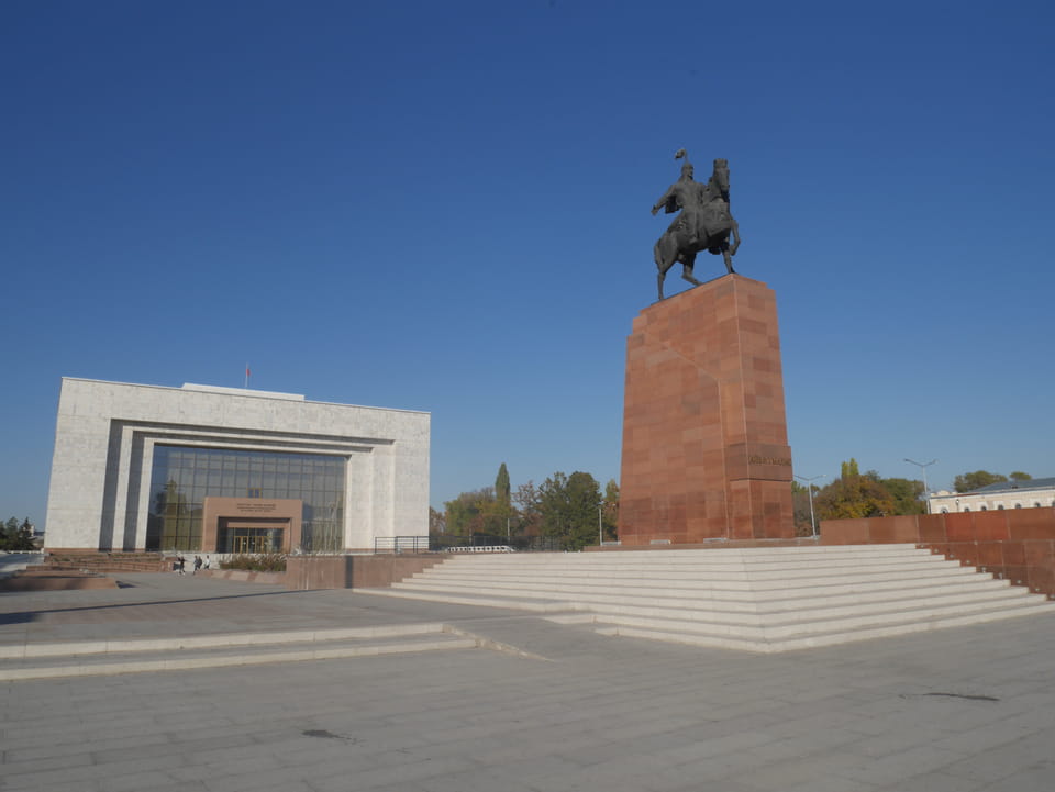 Meine Wäsche machte ich, damit wenigstens was Sinnvolles heute geschieht. Vor 16:00 dann endlich raus und nebenan ein eher schlechtes Essen. Suppe mit komisch schmeckendem Brot. Ich wollte in’s Geschichtsmuseum, suchte nach dem Eingang und sah nach einer Runde, dass es noch immer (oder wieder) renoviert wird. Damit erübrigte sich die touristische Alternative. Angesichts des genialen Wetters ärgerte ich mich weiterhin, Ala Archa verpasst zu haben. In der Ferne sah ich die Berge. So schön! Eventuell klappt es noch morgen, doch da ziehe ich um in ein Privatzimmer, womit die Zeit zu knapp wird.