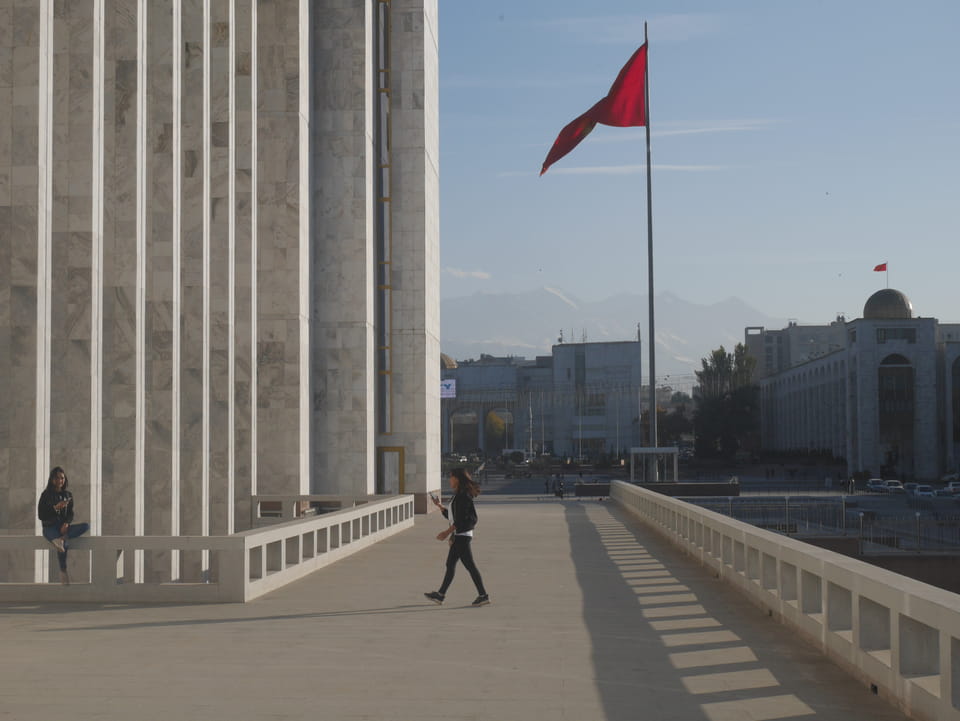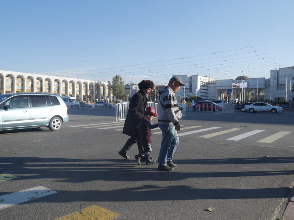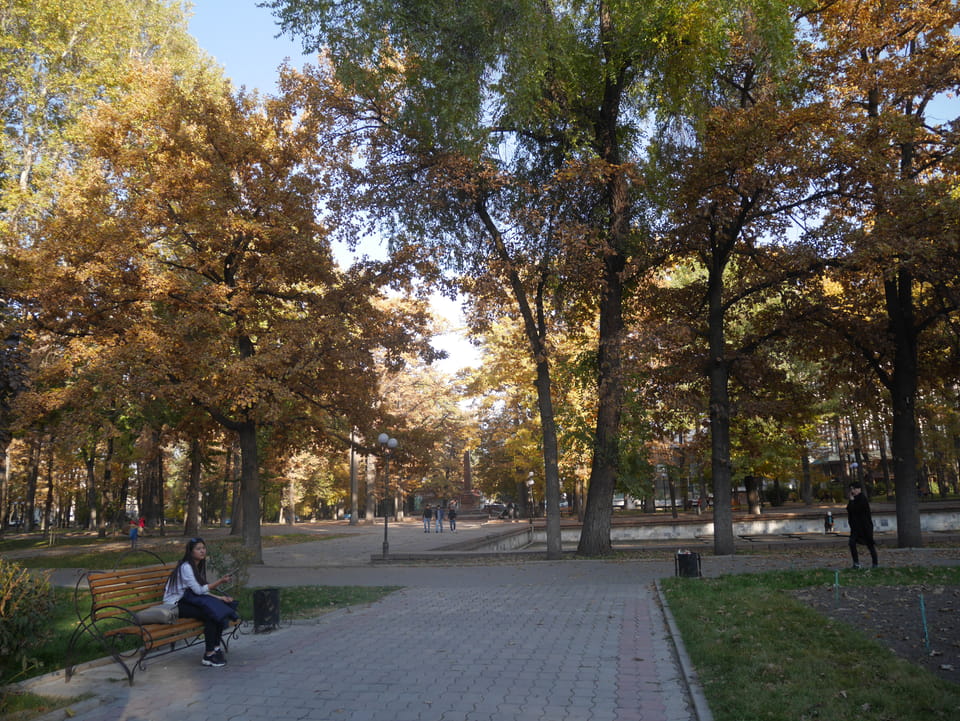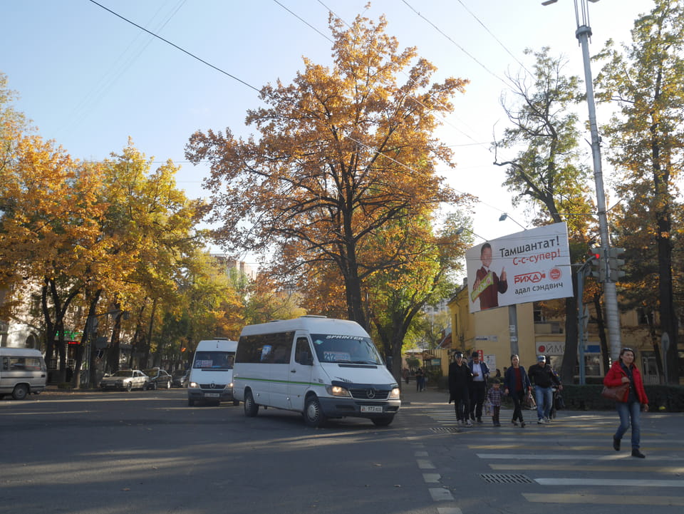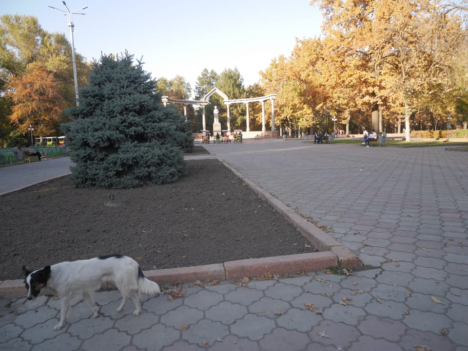 Mit Sonnenschein ging ich sogar nur mit ’nem T-Shirt durch Bishkek. Mit dem Sonnenuntergang wurde es frisch – Zeit für Rückzug.