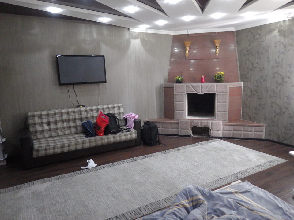 Wir brauchten dann durch den Stau in Almaty nochmal lange, weil der Fahrer irgendwo im Norden was abzuliefern hatte. Dann gegen 19:00 und damit 7h nachdem ich den Sitz im Auto eingenommen hatte, war ich endlich im Hostel64 wieder. Ich wurde sofort von der freundlichen Frau erkannt. Sie freute sich. Ich hatte leider kein Bett in der unteren Etage, stattdessen das Mittlere Bett oben, was eben ein paar fremde Füße in Kopfnähe bedeutet.