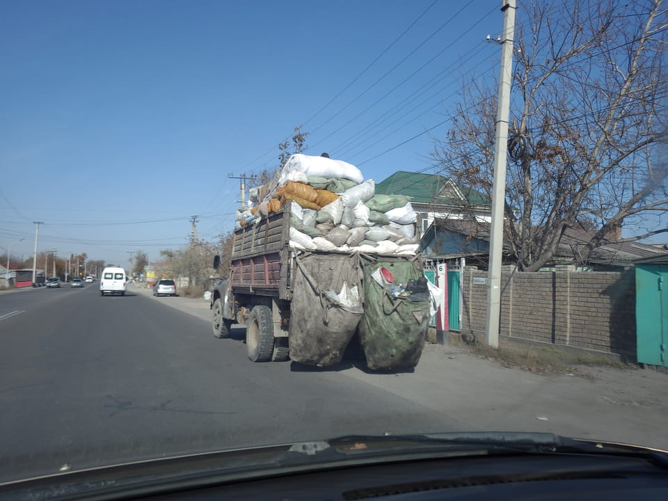 Kein Stress früh, trotz etwas unrealistischer Auscheck-Zeit um 10. Man ließ mich in Ruhe, sodass ich vor 12 erst raus kam und die $20 in KGS zahlte. Man rief mir ein Taxi zum Busbahnhof. Ich wollte mit dem Sammeltaxi fahren, doch die Frau schlug die Marshrutka vor.