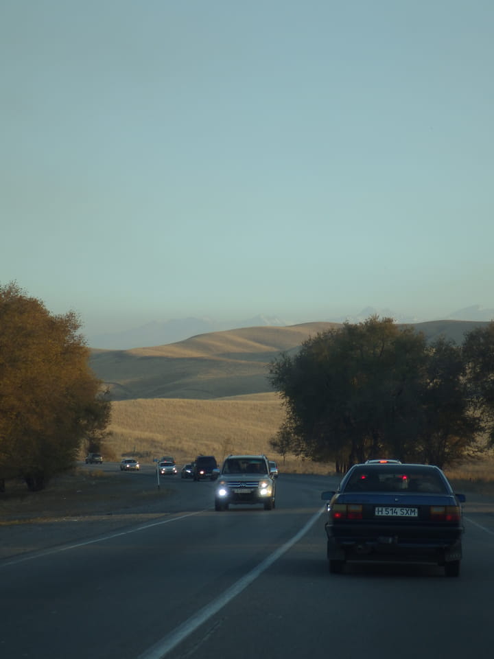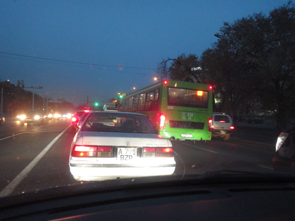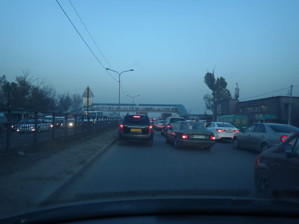 Der Taxifahrer war etwas verwirrt, setzte mich am Ende doch an der richtigen Stelle ab. Man wollte 800 KGS für die Fahrt nach Almaty, was am oberen Ende der Preisspanne war (700-800). Die Marshrutkas kosten die Hälfte. Bis zum Hostel wollte man 1000, doch ich hatte nur 900, womit man auch zufrieden war. Ich war der erste Gast, hatte den Vordersitz und wartete eine Ewigkeit – am Ende fast ‘ne Stunde, bis das Auto voll wurde.