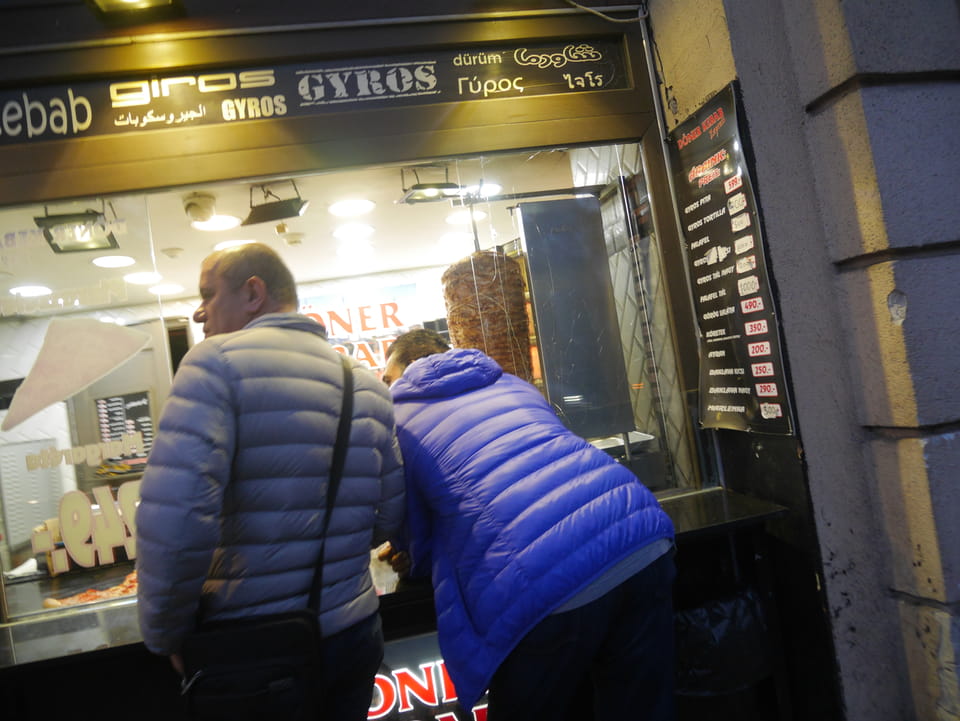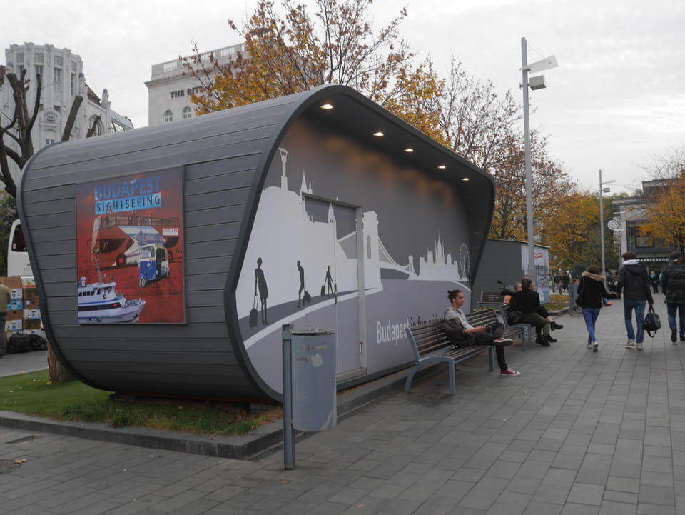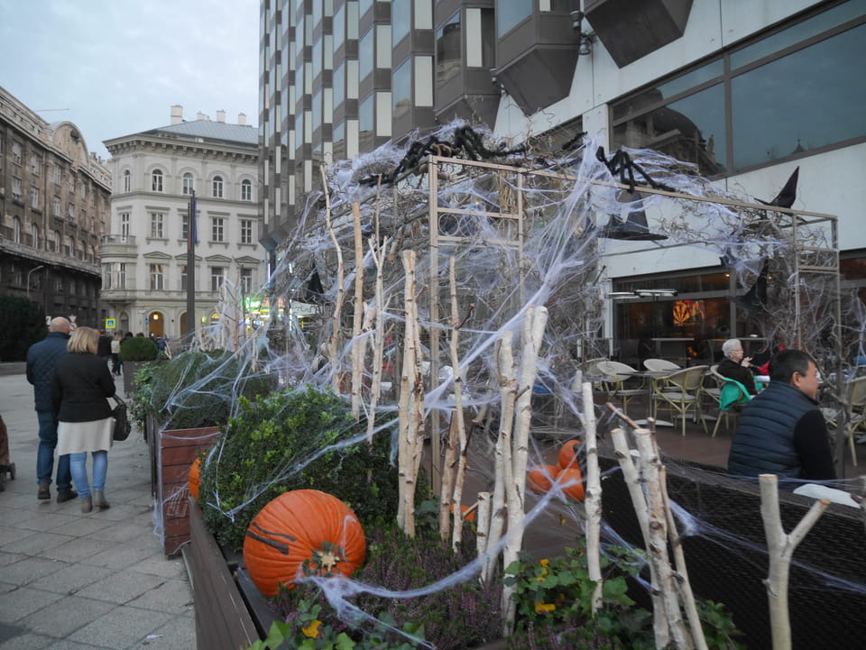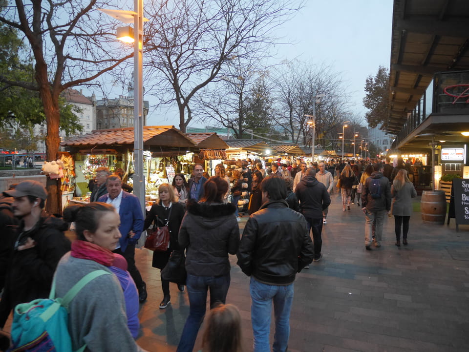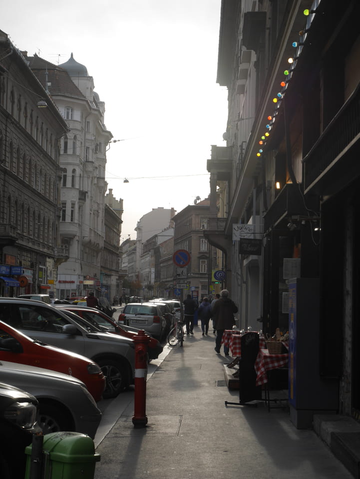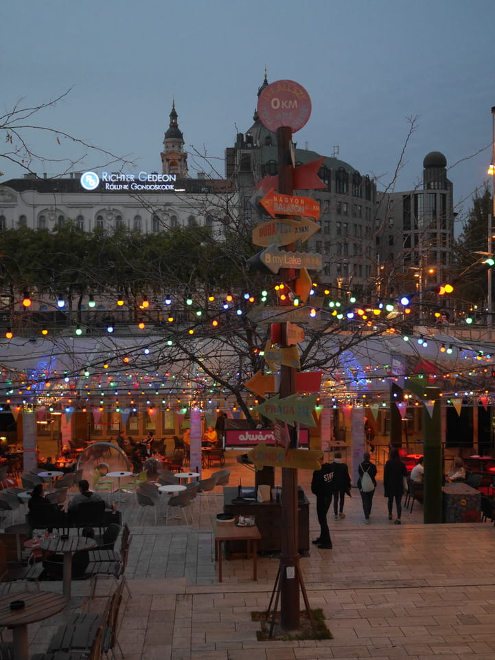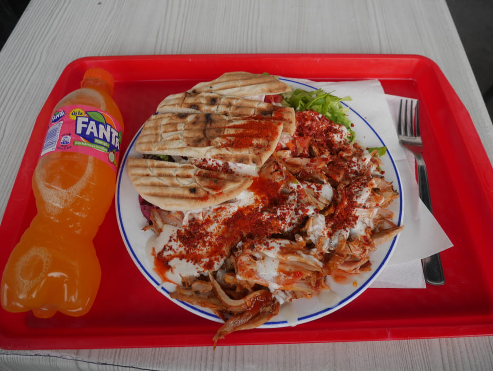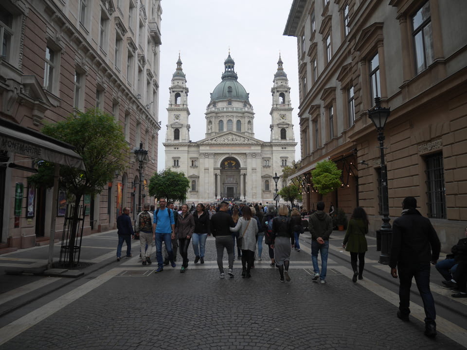 Gegen 15:00 dann schlenderte ich auf Budapests Straßen herum. Die Geschäfte hatten heute wegen eines Feiertages geschlossen. Somit war die Stimmung rein touristisch. Die Restaurants schienen gut gefüllt. Ich hatte einen Gyrosteller, der mich gut satt machte (1850 HUF mit Fanta – €6). Das Wetter war herbstlich halb trüb, wie auch meine Stimmung, denn die Reise ist eben vorbei.