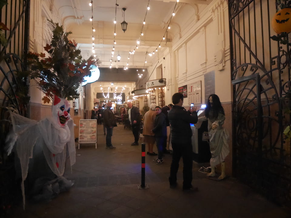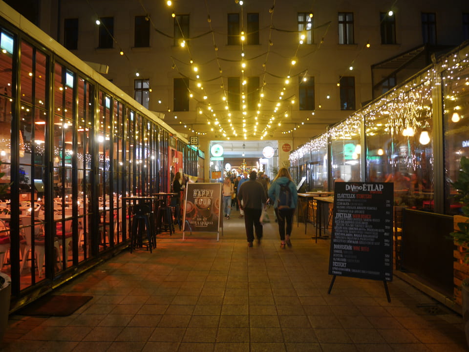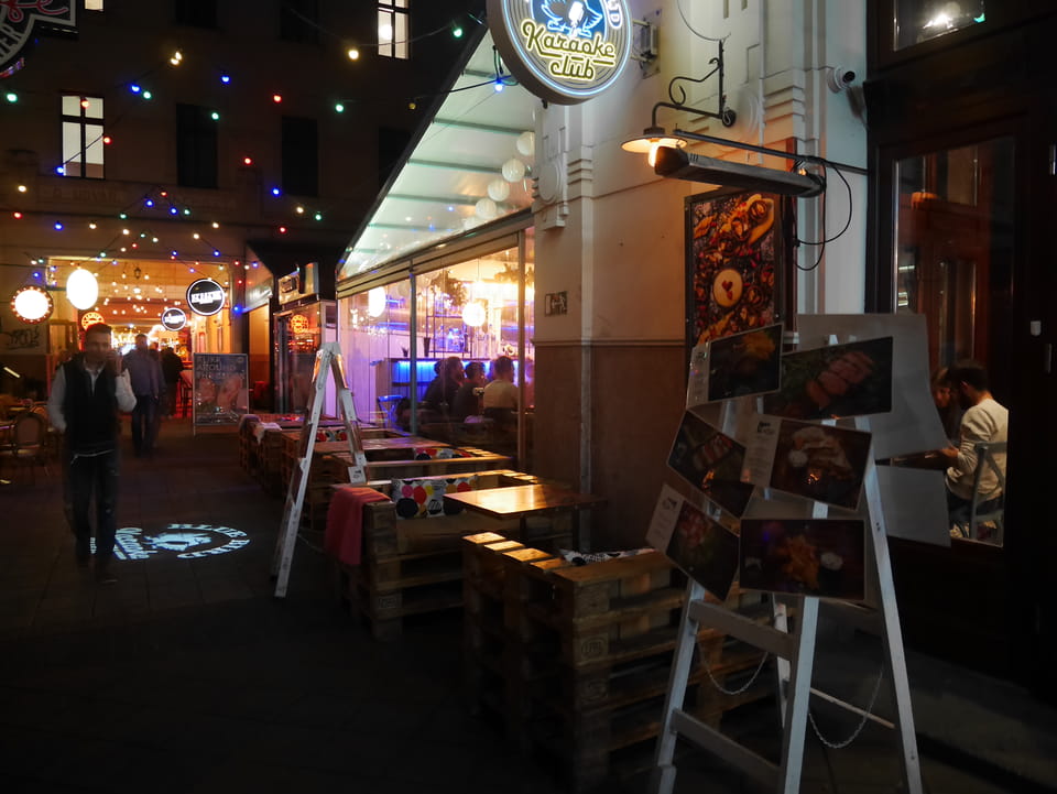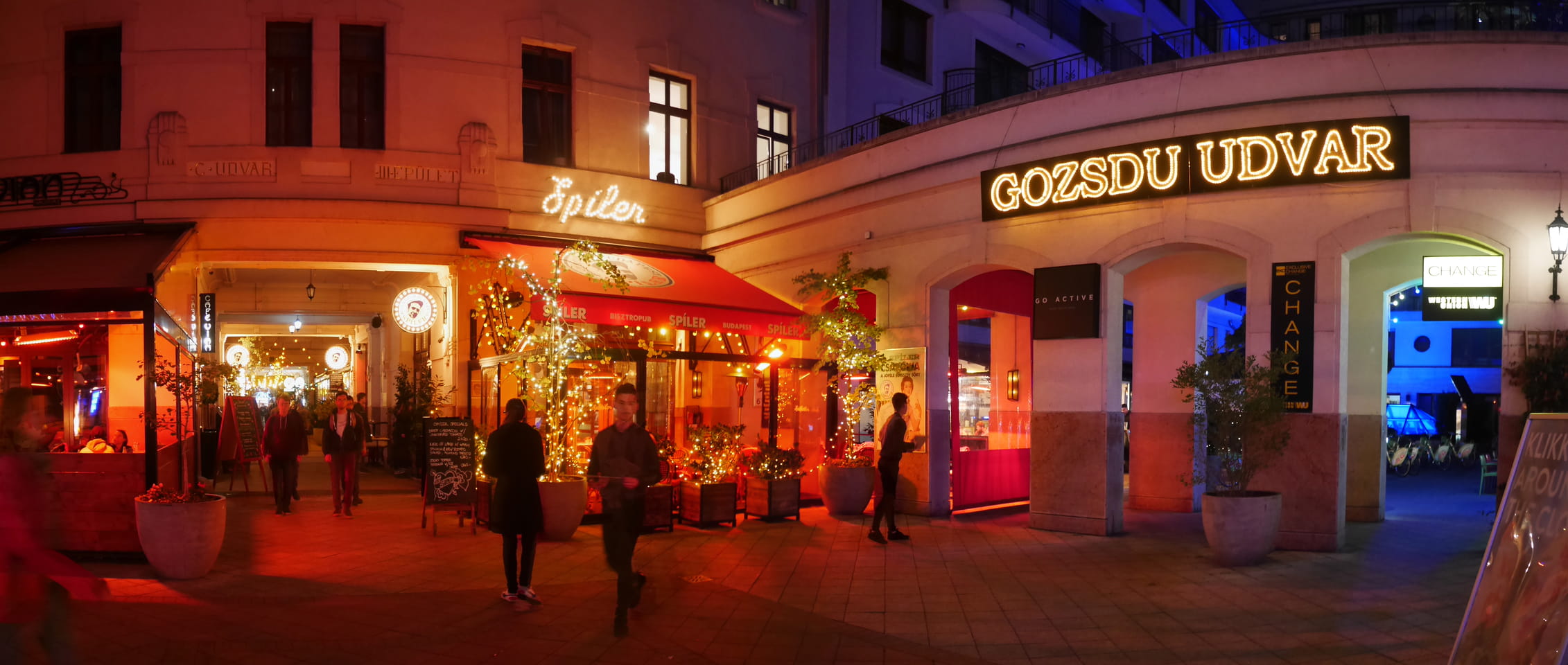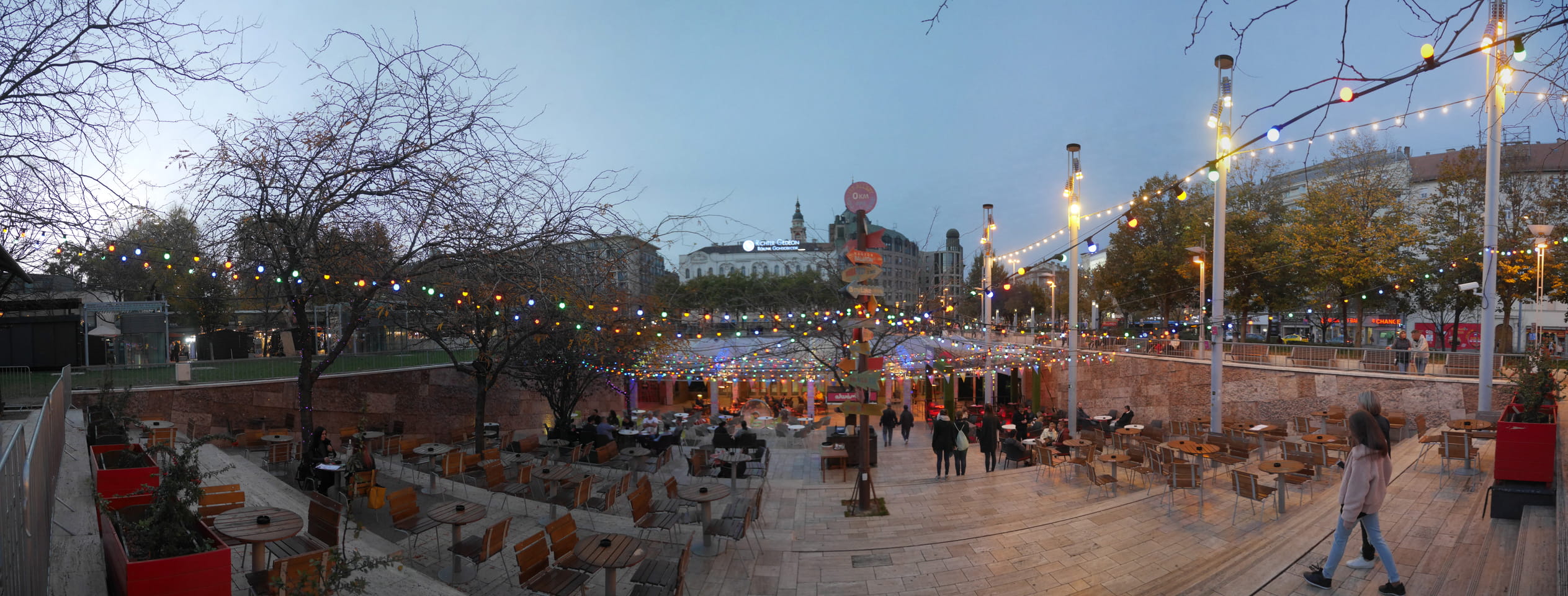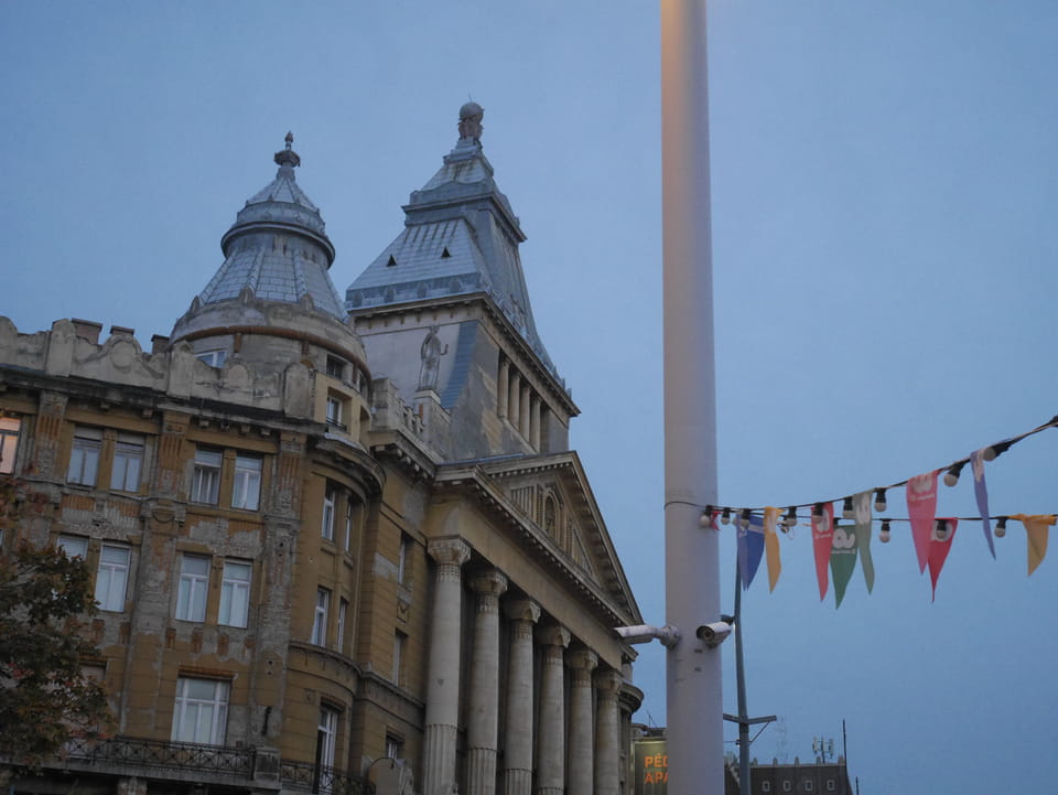 Gegen 15:00 dann schlenderte ich auf Budapests Straßen herum. Die Geschäfte hatten heute wegen eines Feiertages geschlossen. Somit war die Stimmung rein touristisch. Die Restaurants schienen gut gefüllt. Ich hatte einen Gyrosteller, der mich gut satt machte (1850 HUF mit Fanta – €6). Das Wetter war herbstlich halb trüb, wie auch meine Stimmung, denn die Reise ist eben vorbei.