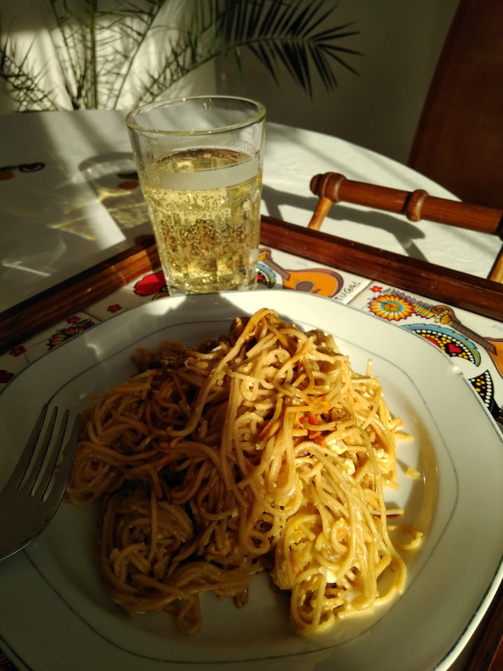 Ich kochte was mit den Bratnudeln und Extra Ei und Mie, was ganz gut kam.