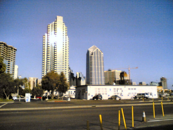 Dann ging ich zum Sushi-essen, war ja fast Abend. Das September Special schmeckte super — Tempura-Roll mit knuspriger Hülle und einer interessanten Multi-Füllung. Ich schaute im benachbareten Horton Plaza vorbei. Das obligatorische Foto von meinen Spielen im Laden gab’s auch. Eigentlich wollte ich mir auch ein paar Schuhe kaufen aber in den Laden wird gerade eine Laser Haut Klinik eingebaut. Laser sind super! :-) In der Innenstadt wird wieder viel gebaut und renoviert.