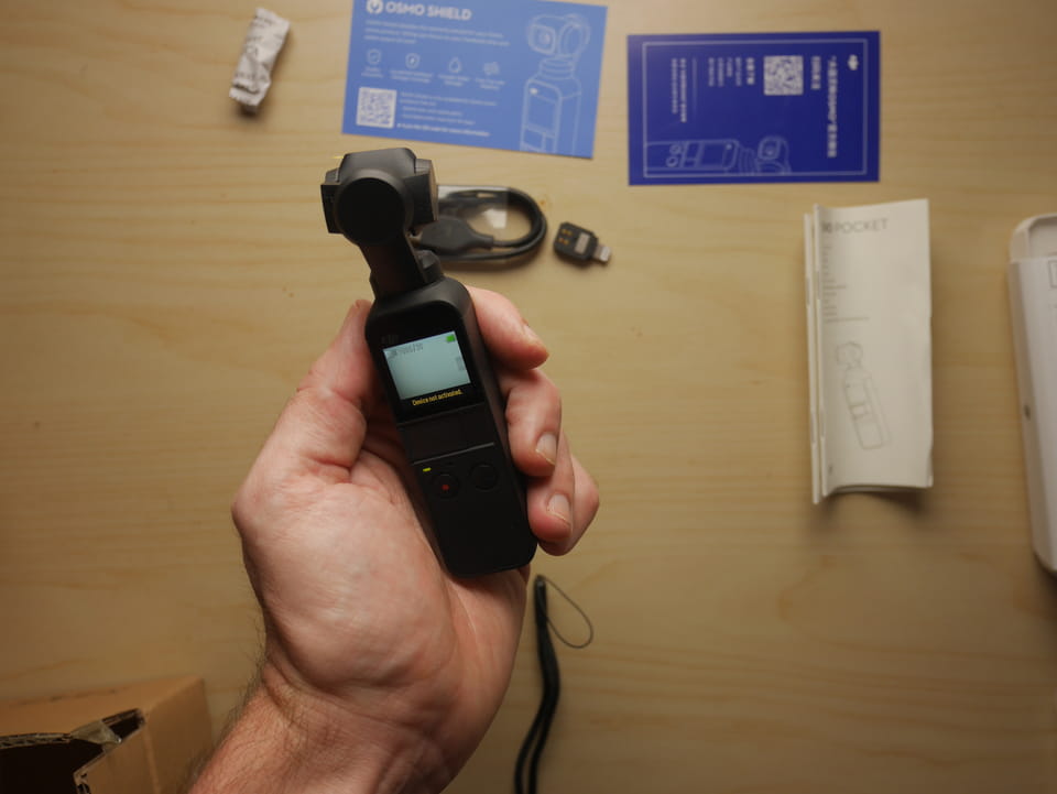 Das Teil war wirklich kleiner als gedacht. Gut, dass ich das iPad da hatte, denn ohne Registrierung macht das Teil nix. Die DJI Mimo App lief auch darauf. Mein alter iPod touch ist leider auf iOS 9.3.5 steckengeblieben und da gibt’s auch keine Abhilfe. Ein Handy mit USB-C wäre auch noch ’ne Alternative – aber gut, habe ich alles nicht, das Teil ging erst mal und machte ein Firmware Update.