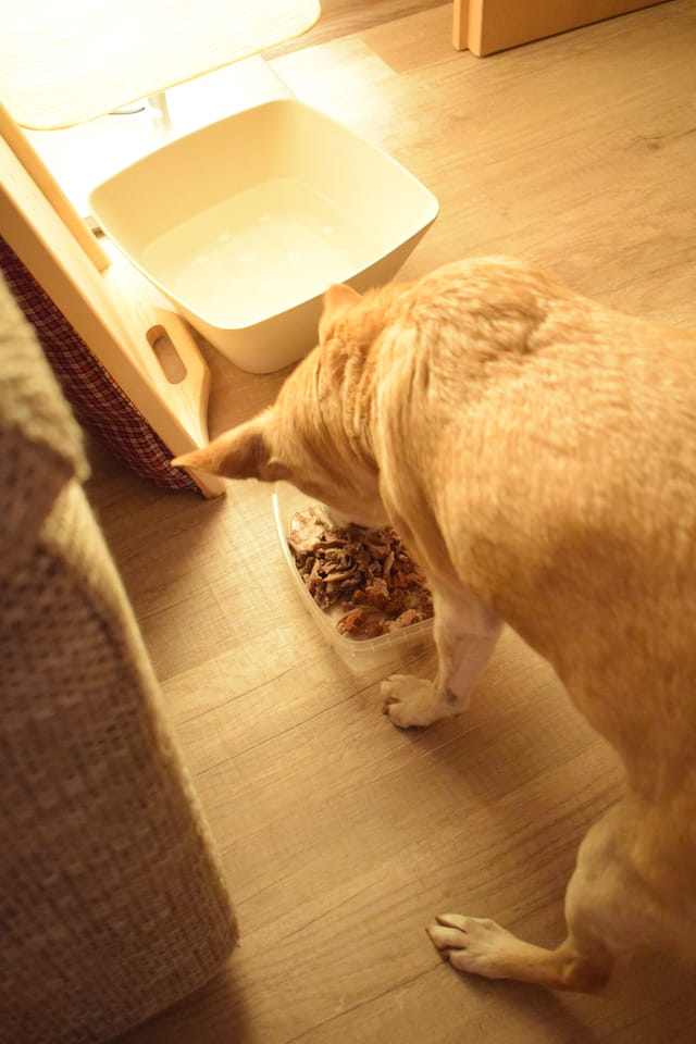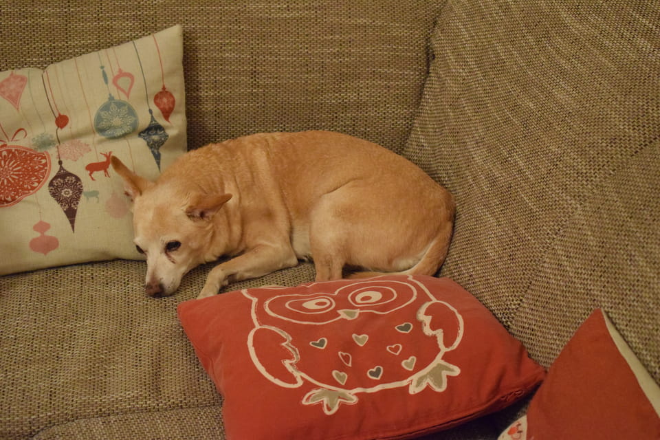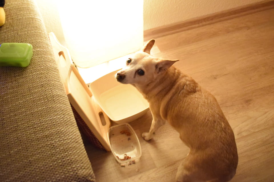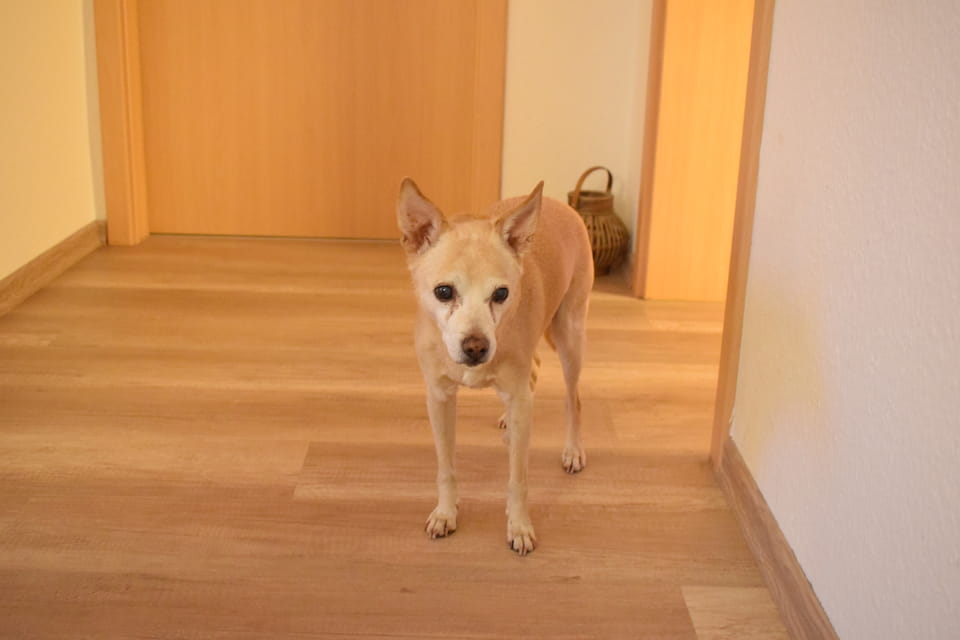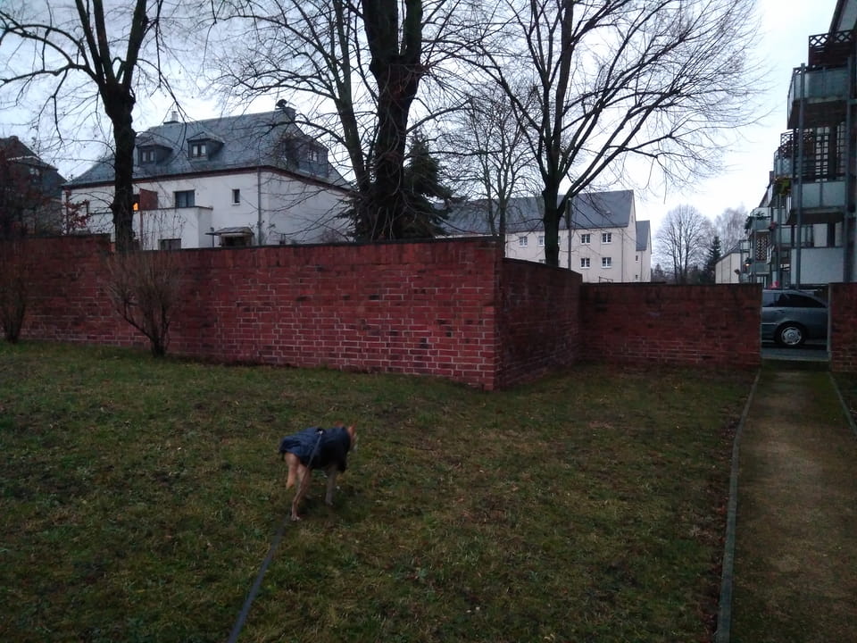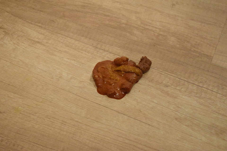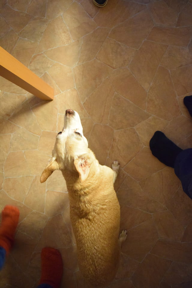 Nach dem Abendessen verabschiedeten wir uns. Der Hund rannte rum und setzte ein Souvenir doch noch die Vorsaal. Nach vielen Spaziergängen draußen, kennt er eben keine Hemmungen mehr.