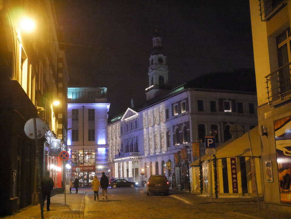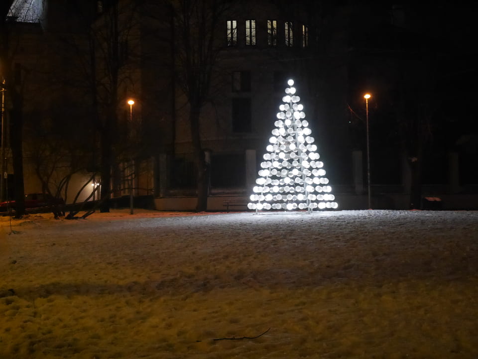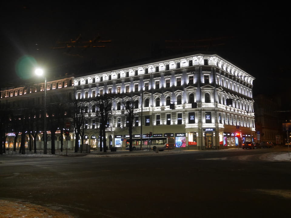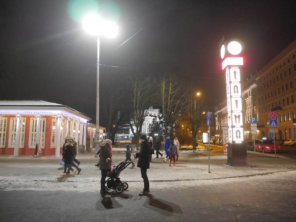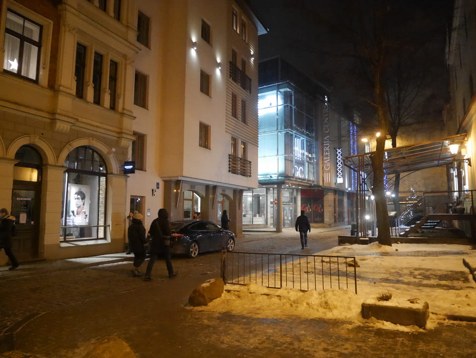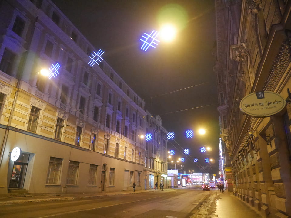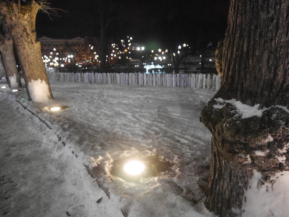 Abends schließlich war die Wäsche getrocknet und ich ging nochmal dick eingemummelt auf die Straße. Irre kalt draußen. Nur mit meiner GF7 machte ich mal Photos. Schön ist’s mit den vielen Lichtern in den Bäumen. Das Abendessen war auch russisch gut.