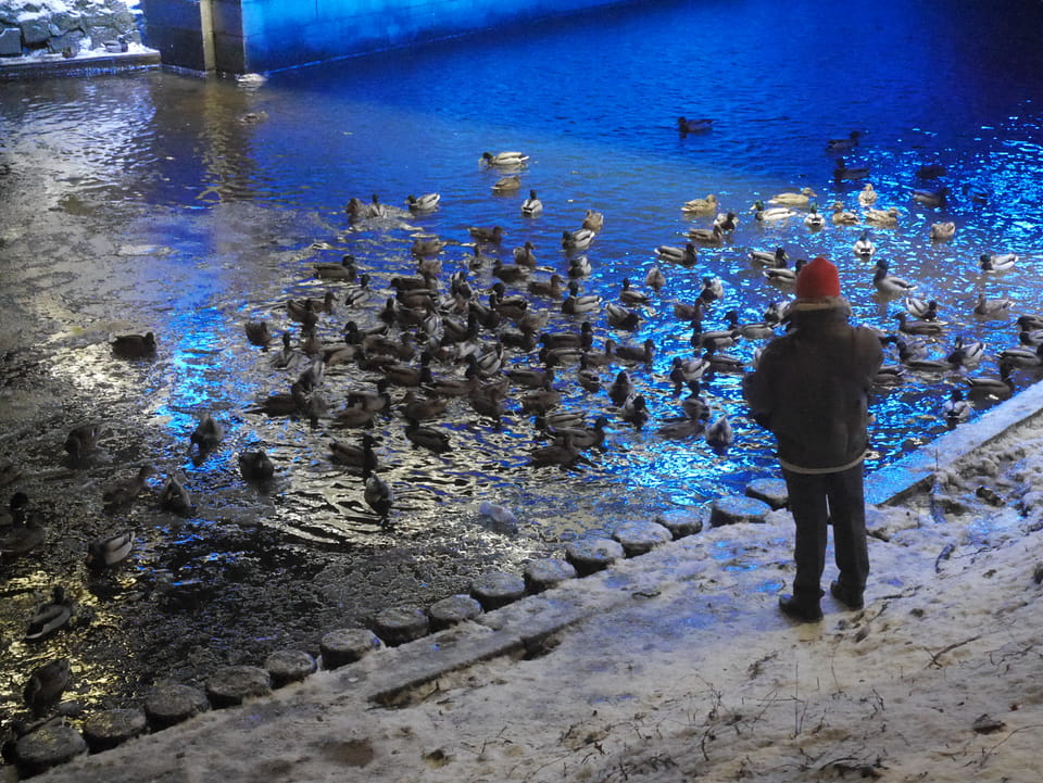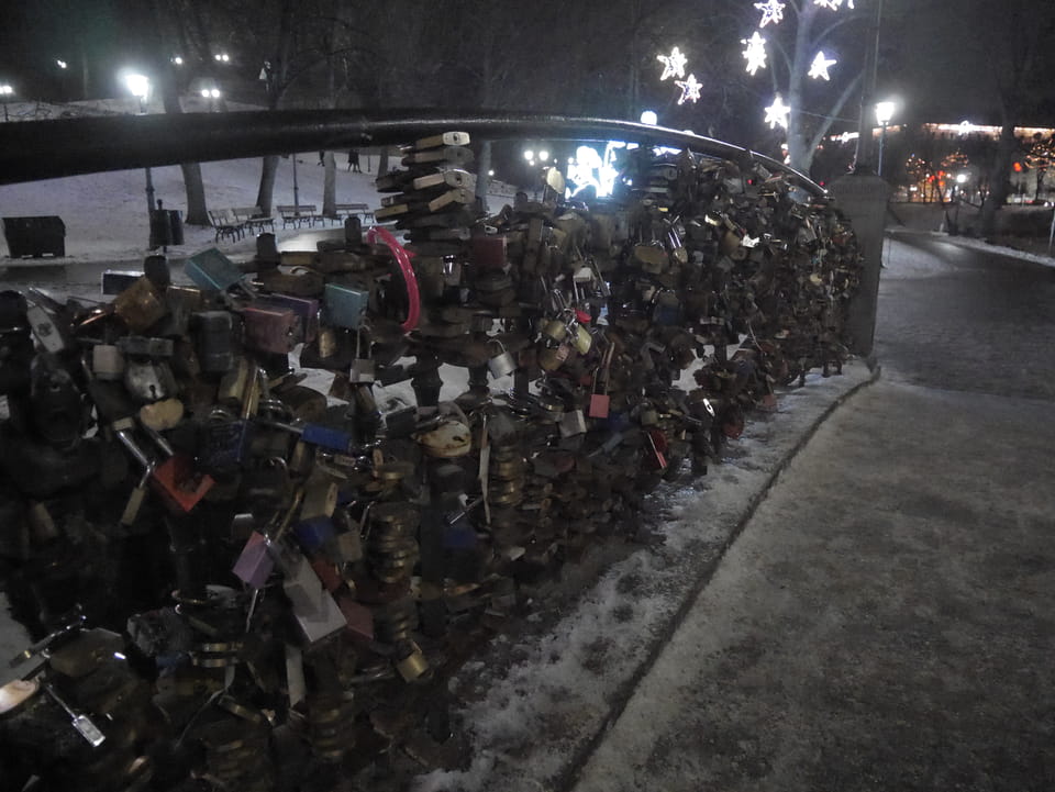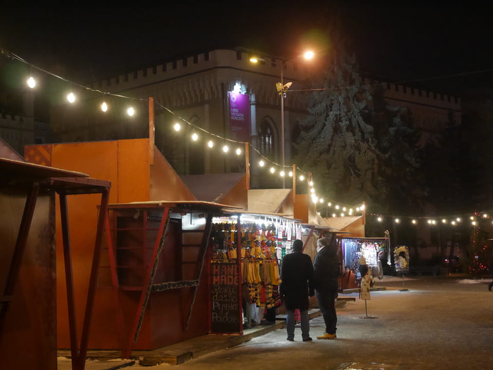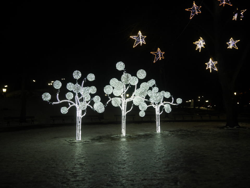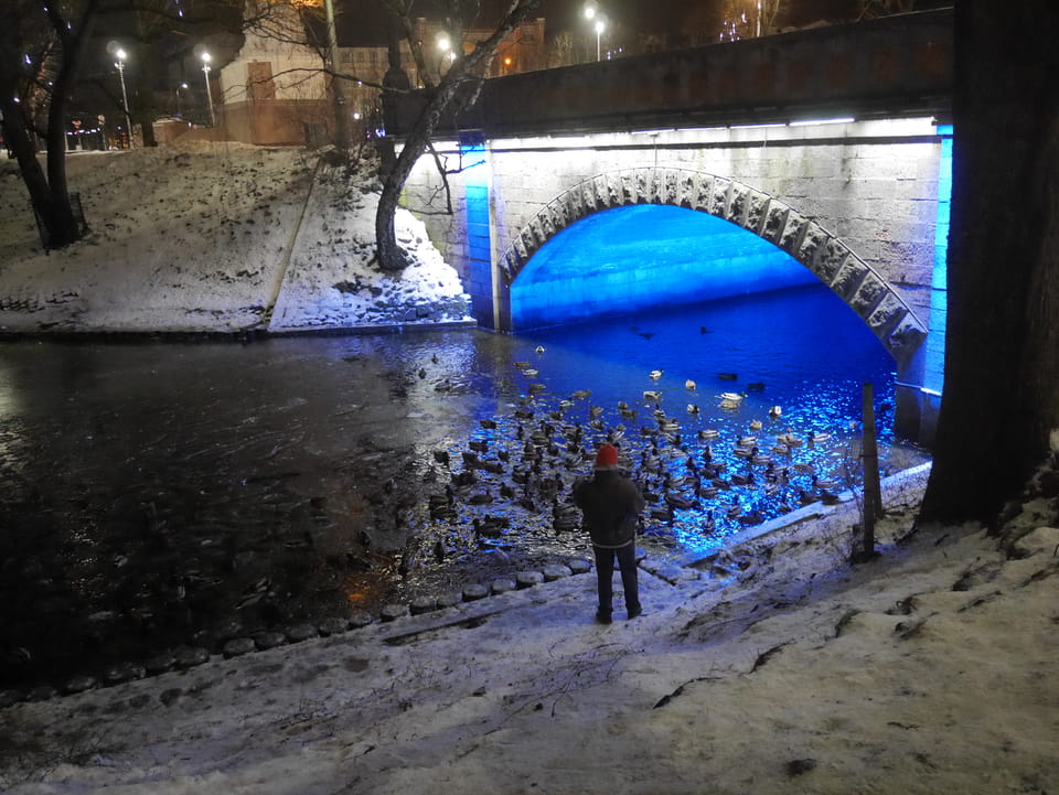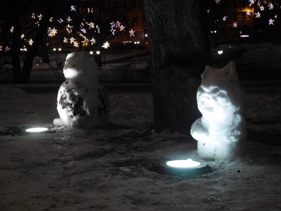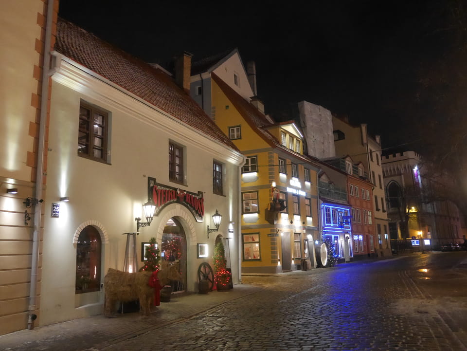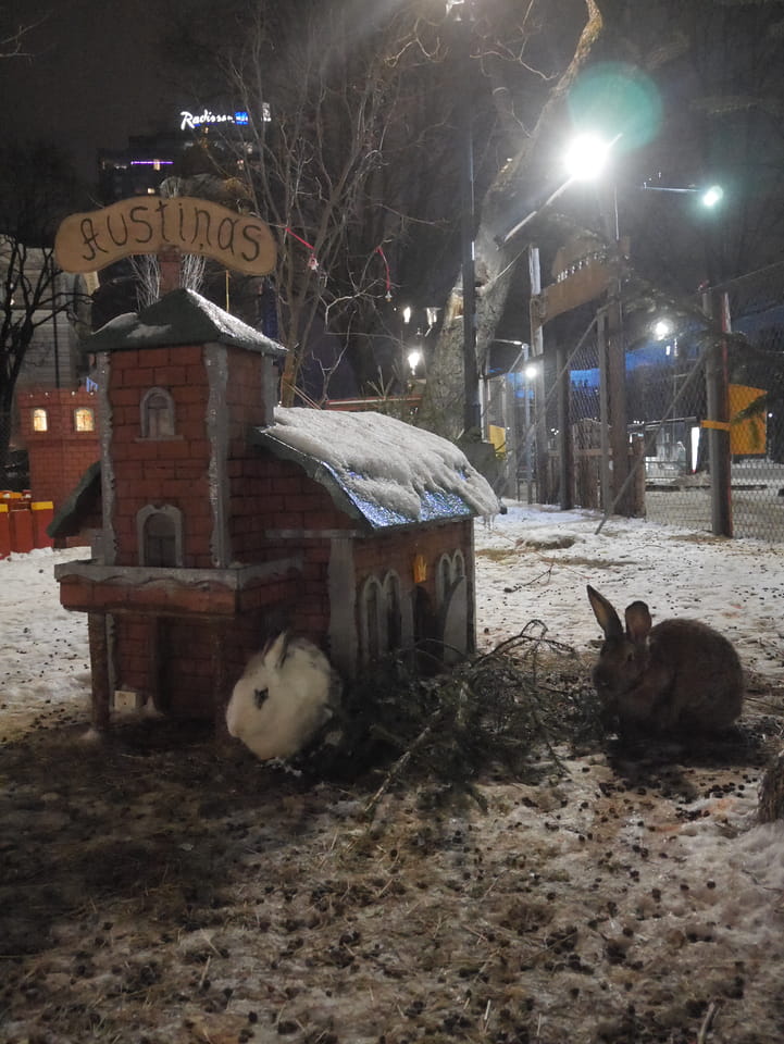 Abends schließlich war die Wäsche getrocknet und ich ging nochmal dick eingemummelt auf die Straße. Irre kalt draußen. Nur mit meiner GF7 machte ich mal Photos. Schön ist’s mit den vielen Lichtern in den Bäumen. Das Abendessen war auch russisch gut.