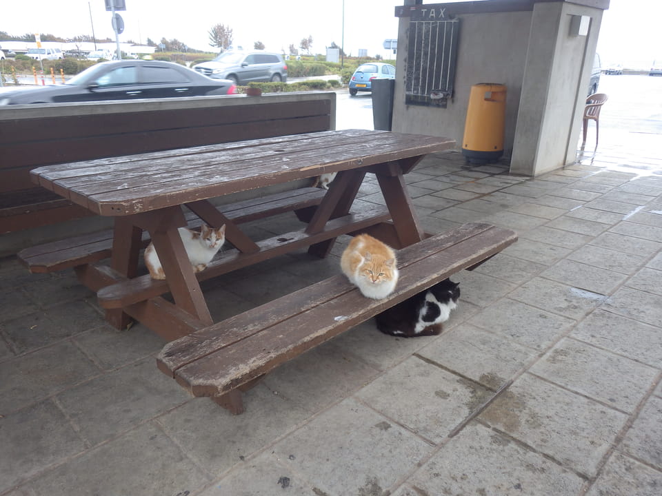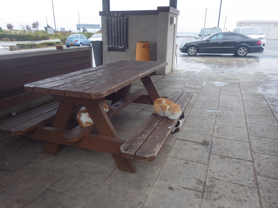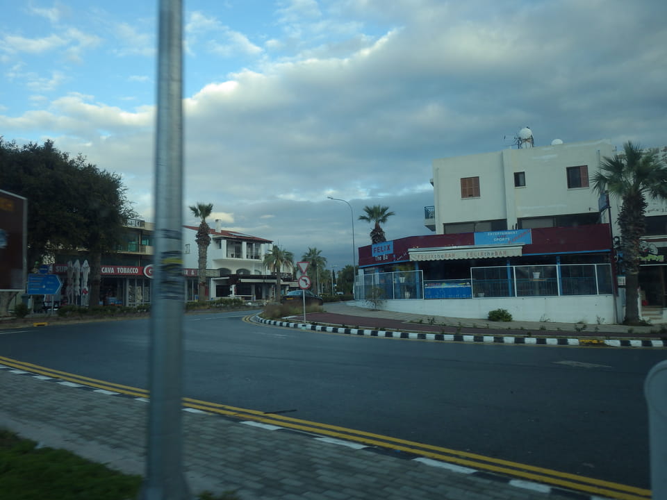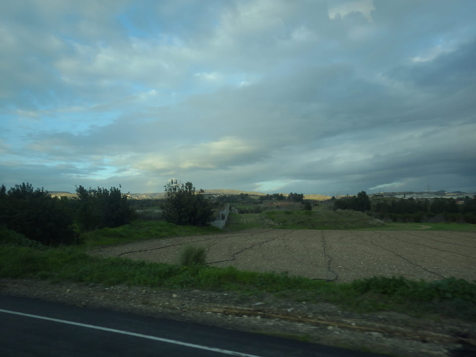 Ich also ein weiteres Mal zurück zum Flughafen, holte mir für €3,90 einen Cappuccino und wartete. Dann kam ein Fahrer, er hatte einen großen Van dabei und ich schilderte, dass man auf dem Weg vielleicht das Pärchen noch aufgabeln könnte. Wir fuhren eine Weile und gerade als wir die beiden sahen, waren sie im Begriff in ein Auto per Anhalter einzusteigen. Die Busfahrer streiken übrigens, weil ihnen das Dezember-Gehalt nicht gezahlt wurde. Die ganze Sache passiert wohl öfters. Zypern mag zwar Europa sein, ist aber eben auch sehr südlich.