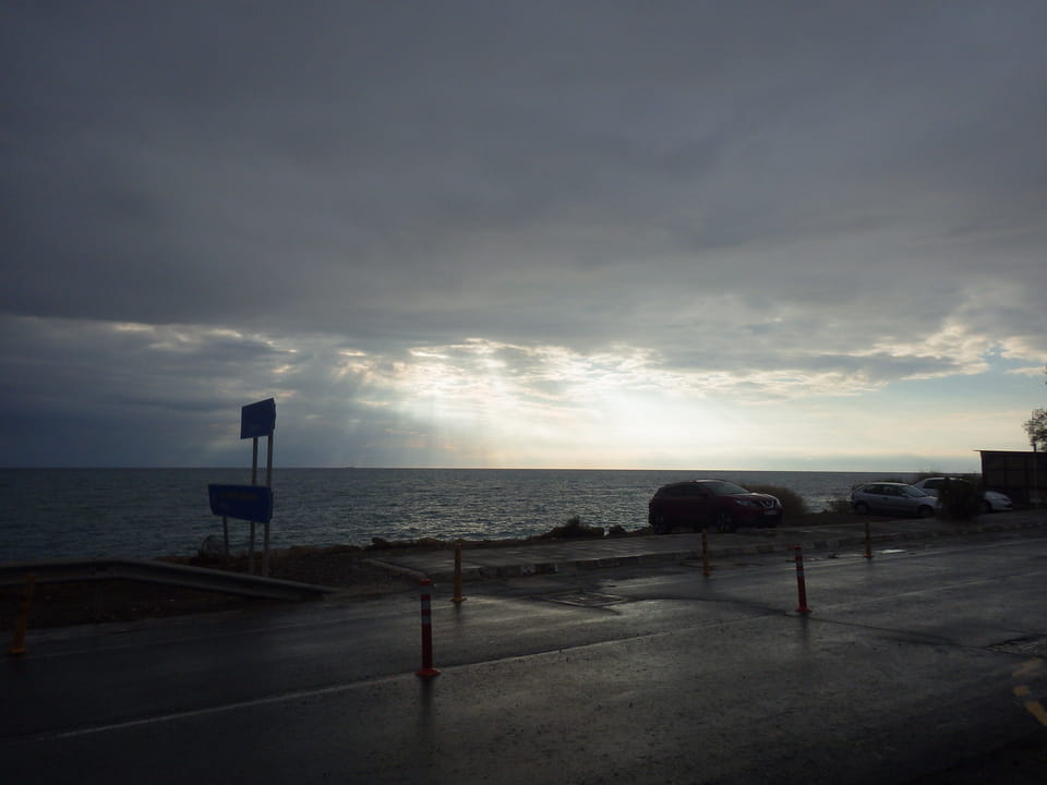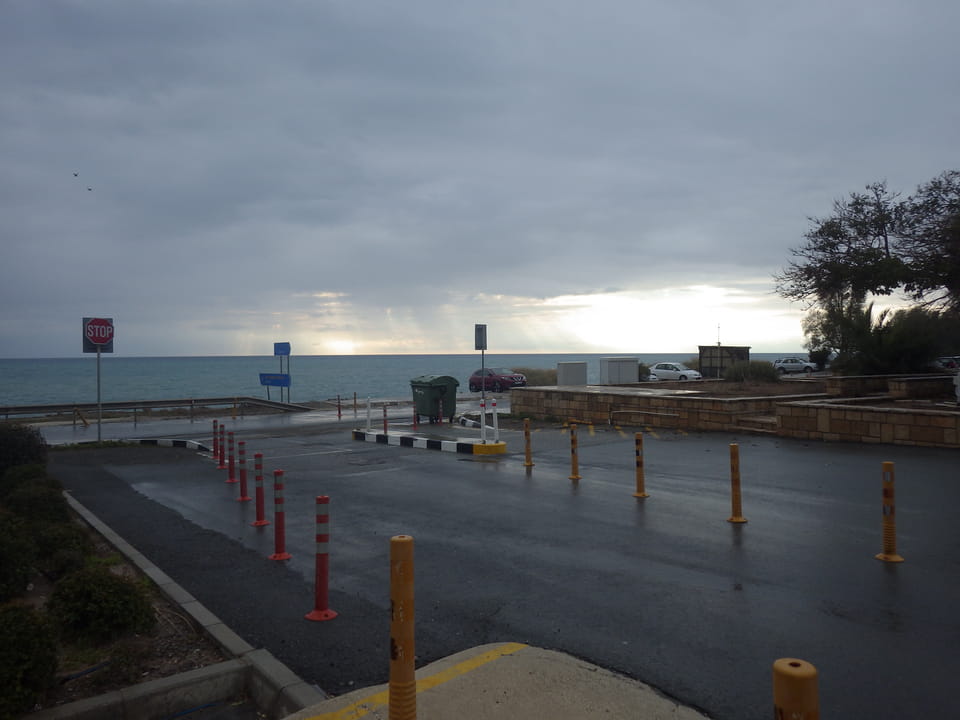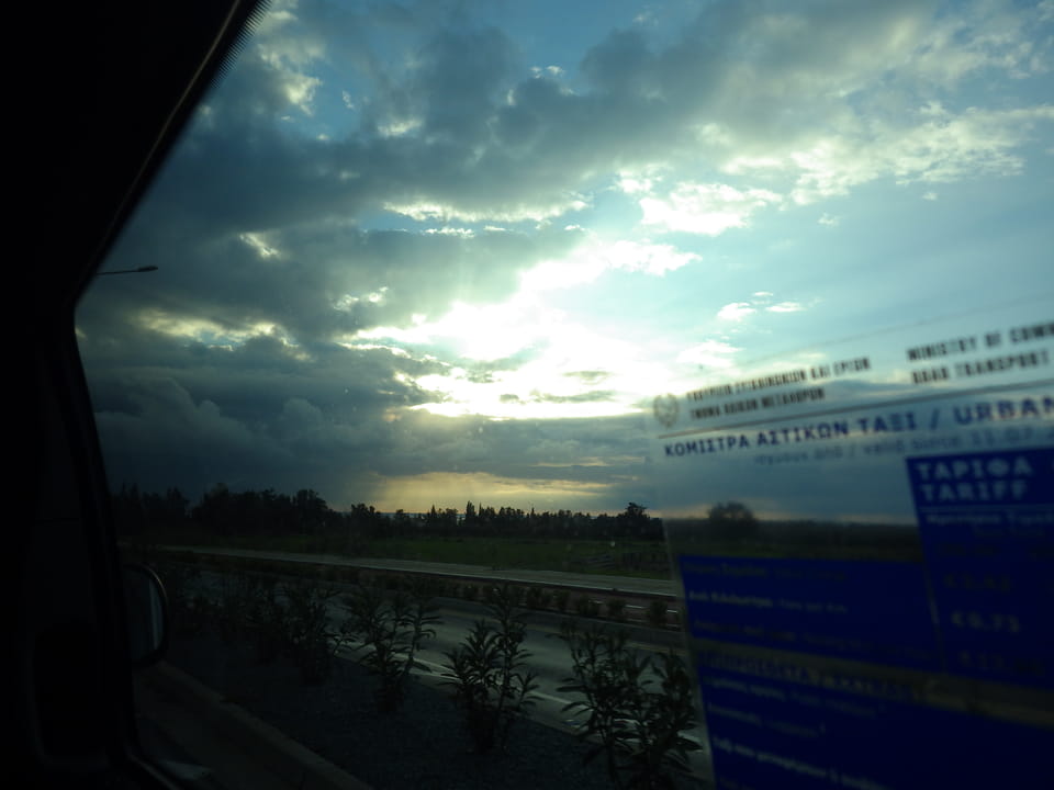 Wir kamen pünktlich in Paphos an, ich packte Sachen um. Draußen regnete es etwas aber der nahende Sonnenuntergang sah da schön aus. Man war hier schon woanders, für mich das erste Mal Zypern und damit das letzte „richtige“ Land Europas auch mal betreten. Jetzt fehlen noch Andorra, San Marino und sonstige Zwerge aber mal sehen. Ich war guter Dinge, doch das änderte sich schnell. Die Busfahrer streikten.