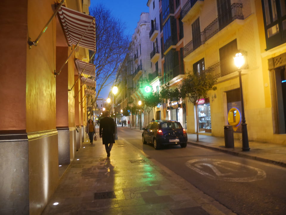 Walking in PALMA de MALLORCA / Spain on a winter evening - 4K 60fps (UHD)