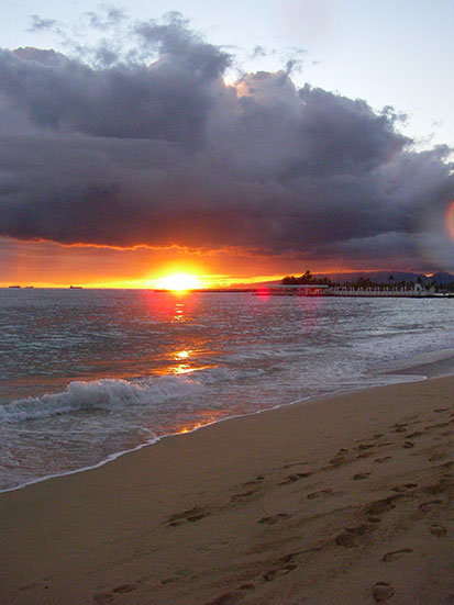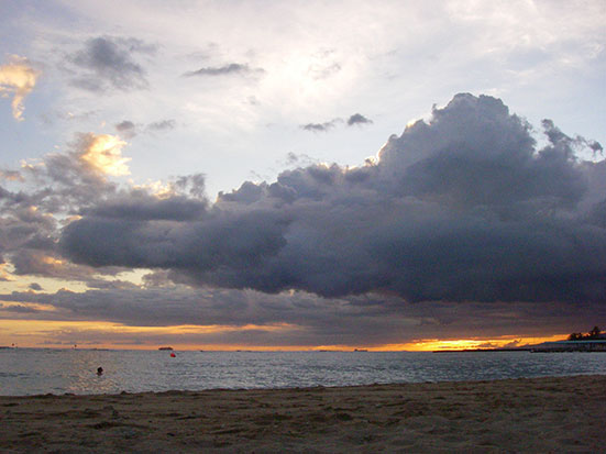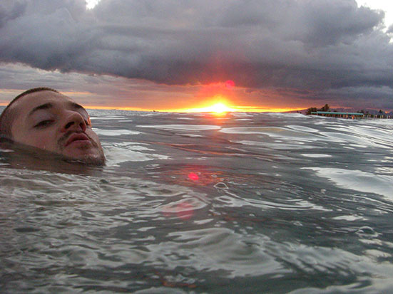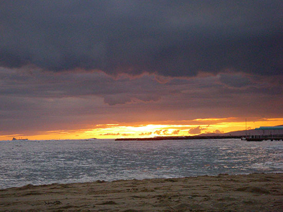 Dann zum Strand. Nicht ganz so sonnig heute, sodass ich mich nicht in den Schatten legen musste. Es war dann schon gegen 4 und ich schlief bis nach 6. Dann Baden zum Sonnenuntergang. Sehr beliebtes Photo-Motiv.