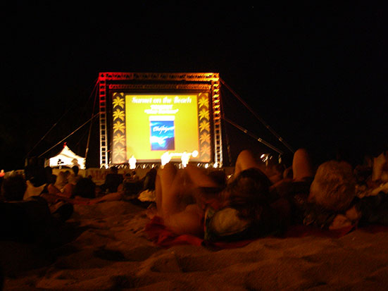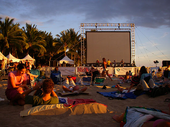 Nach dem Sonnenuntergang wurde ein Film gezeigt. Der Regisseur von „Blue Horizon“ war auch anwesend.