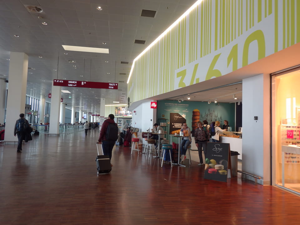 Gegen 11:30 dann war’s langsam Zeit, aufzubrechen. Statt Straßenbahn spazierte ich auch mangels Fahrkarte zur Metro und fuhr zu Centrale. Dort dann fand ich mich recht schnell zurecht, fand die Bushaltestelle nach Bergamo. Eine Frau fing mich ab und übergab mich an einen Schalter der drei Busfirmen. Alle gleich Preise (€7) wohl, doch ich fragte nach der Abfahrtzeit – 12:20, doch ich wusste, dass terravision 12:10 fuhr. Also kaufte ich da gleich mein Ticket.