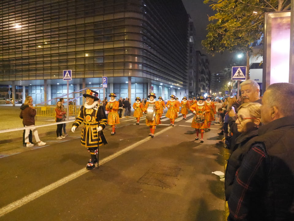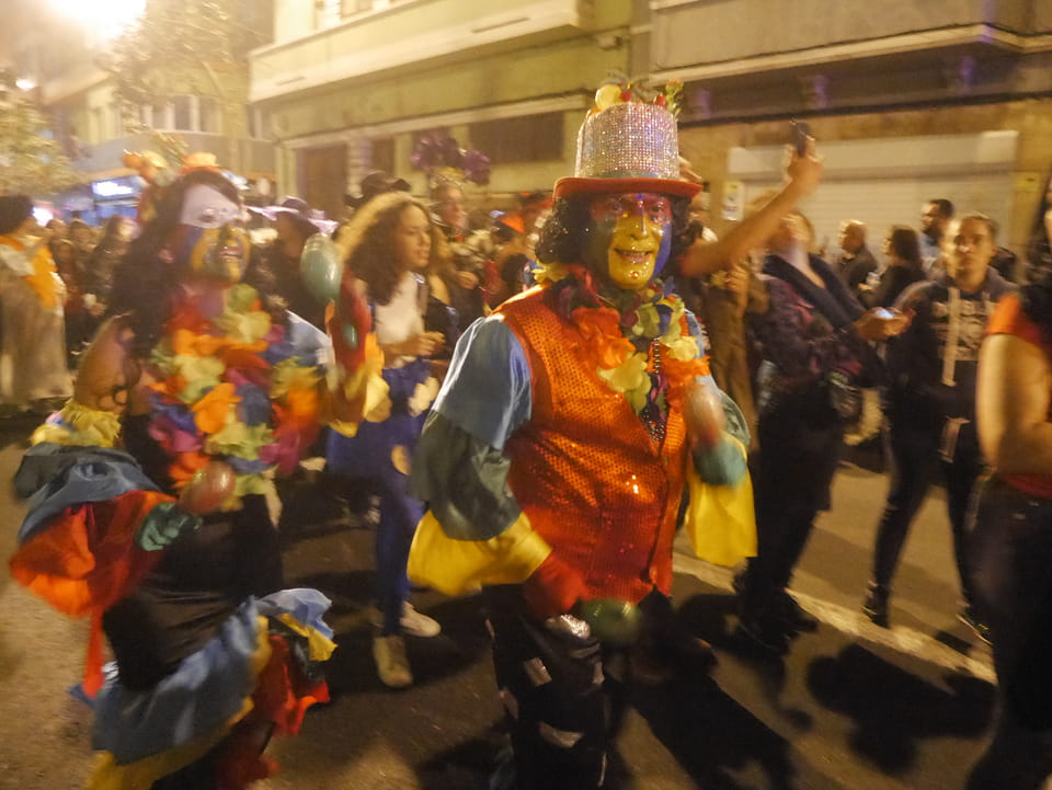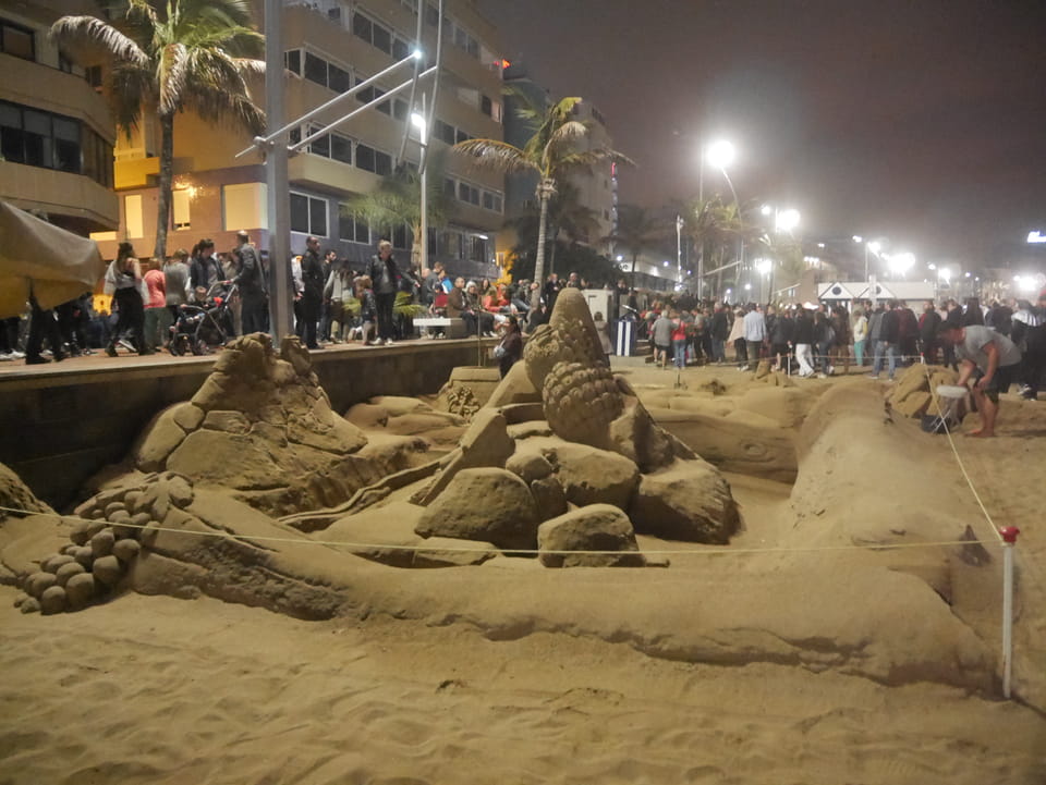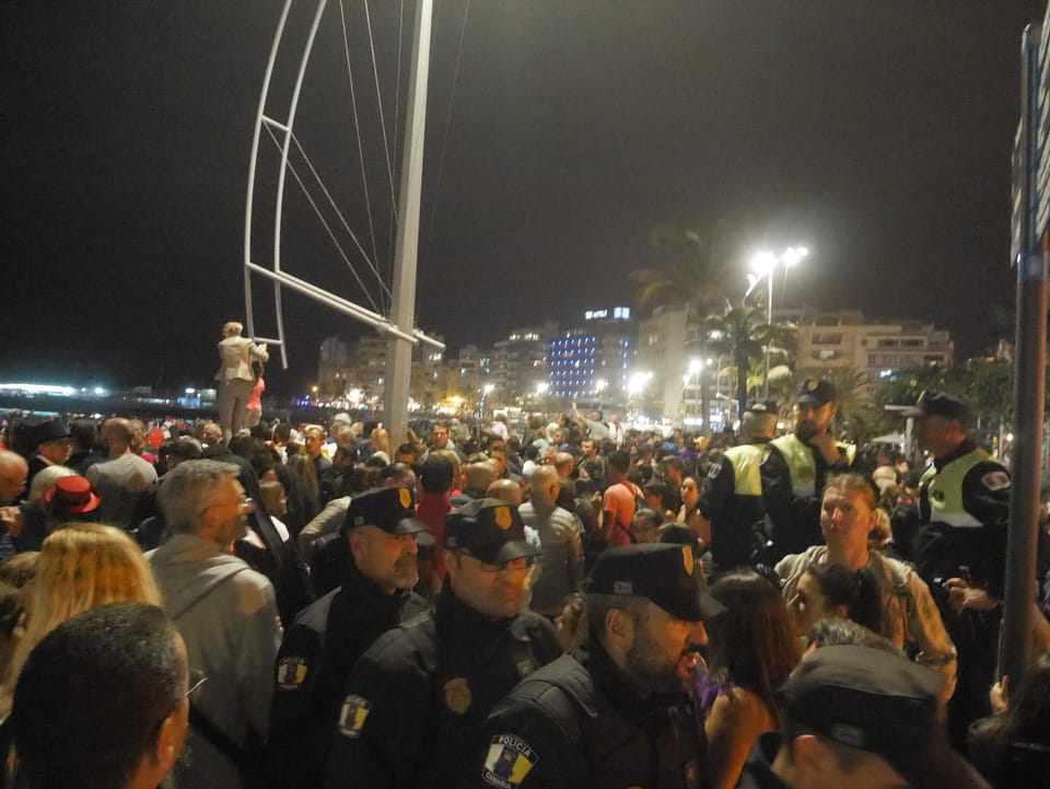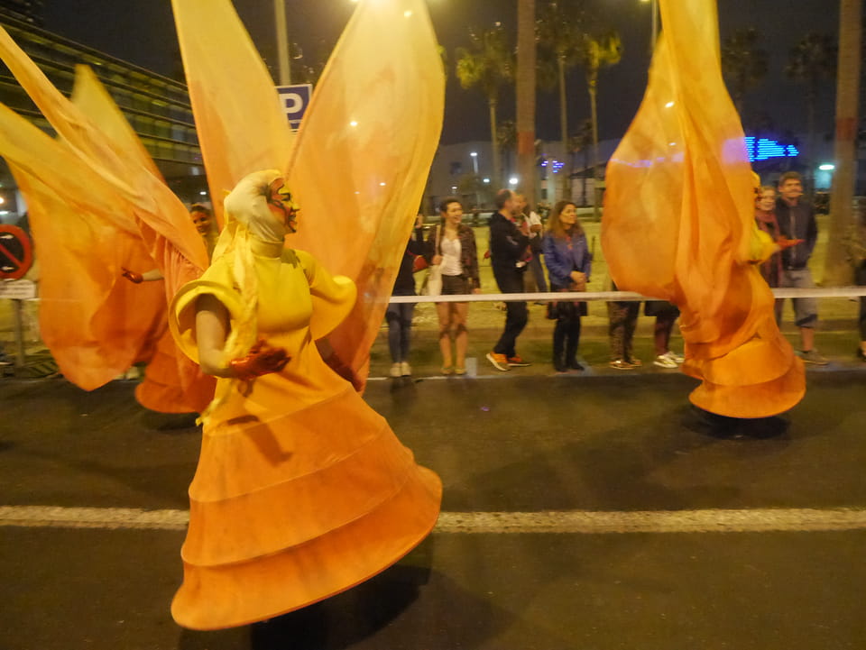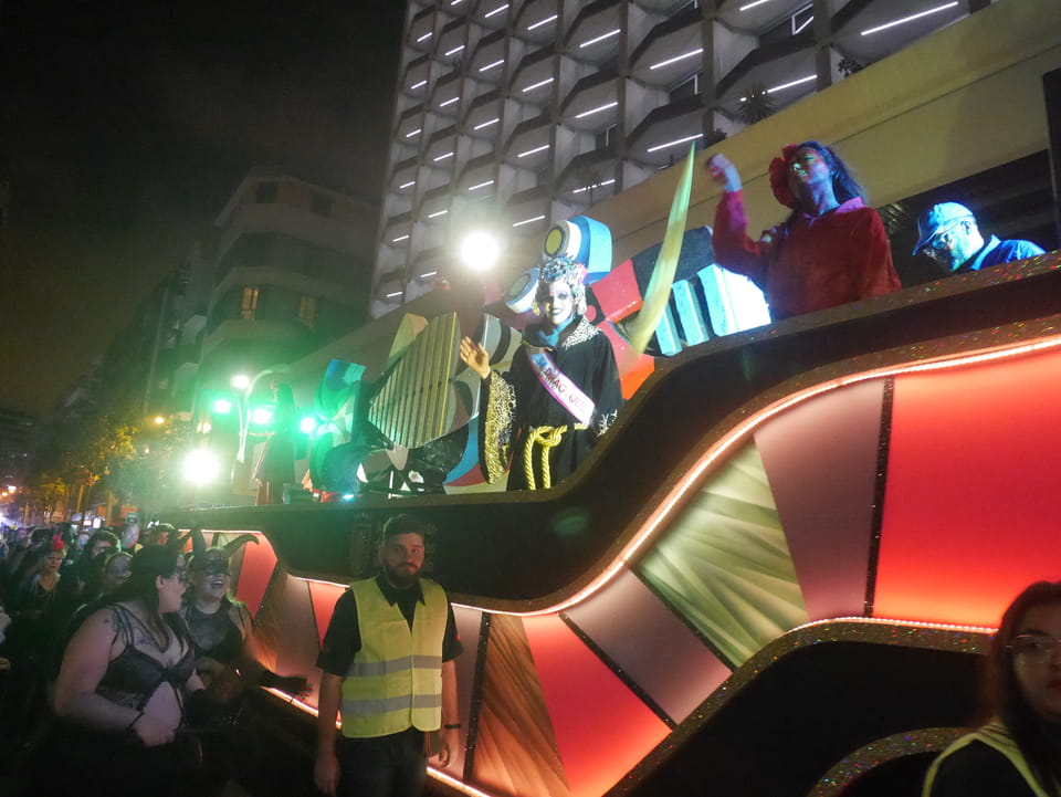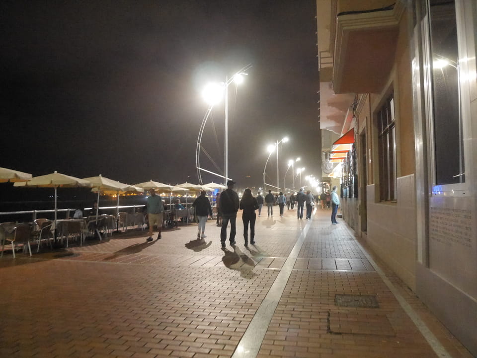 Vor 18:00 zurück in’s Hostel, aß ich etwas Tütensuppe und ging dann gegen 20:00 los, um die Sardine und das Feuerwerk anzuschauen. Wieder alleine unterwegs, weil ich filmen wollte. Die Routine sollte sich etwas ändern, nur müsste ich dann editieren. Aber OK, jetzt waren viele Leute in Las Canteras unterwegs. Die meisten gingen Richtung Norden. Ich hatte keine Ahnung, wo die Sardine angezündet war, doch der Menschenstrom war gut erkennbar. Ich sah dann Polizei und Absperrungen. Die letzte Prozession des Las Palma Carnavals. Die Tradition hier ist, dass Männer sich als Frauen verkleiden und eine Trauerfeier parodieren. Da wird geheult und gejammert, dass die Feier nun zu Ende sei. Es gab auch ein paar Trommler und Tanzgruppen, bevor zwei Trucks die Sache abschlossen.