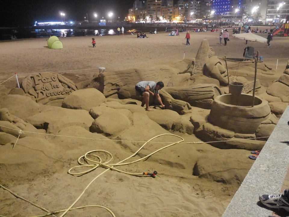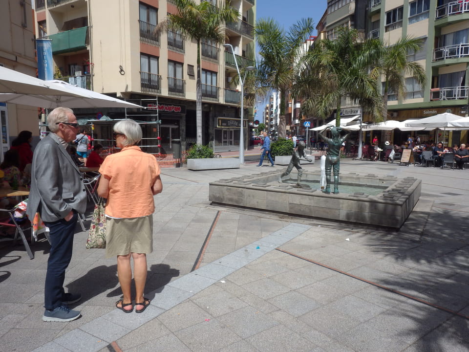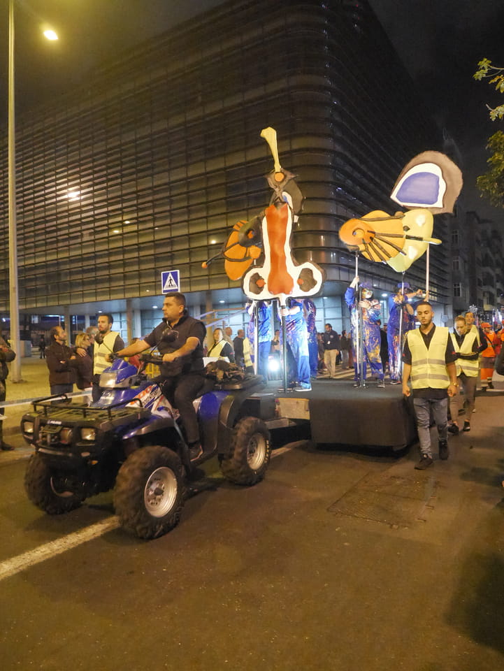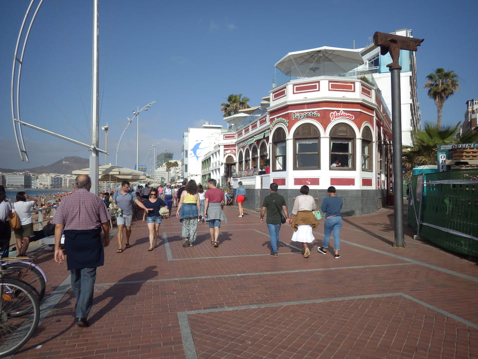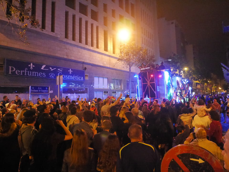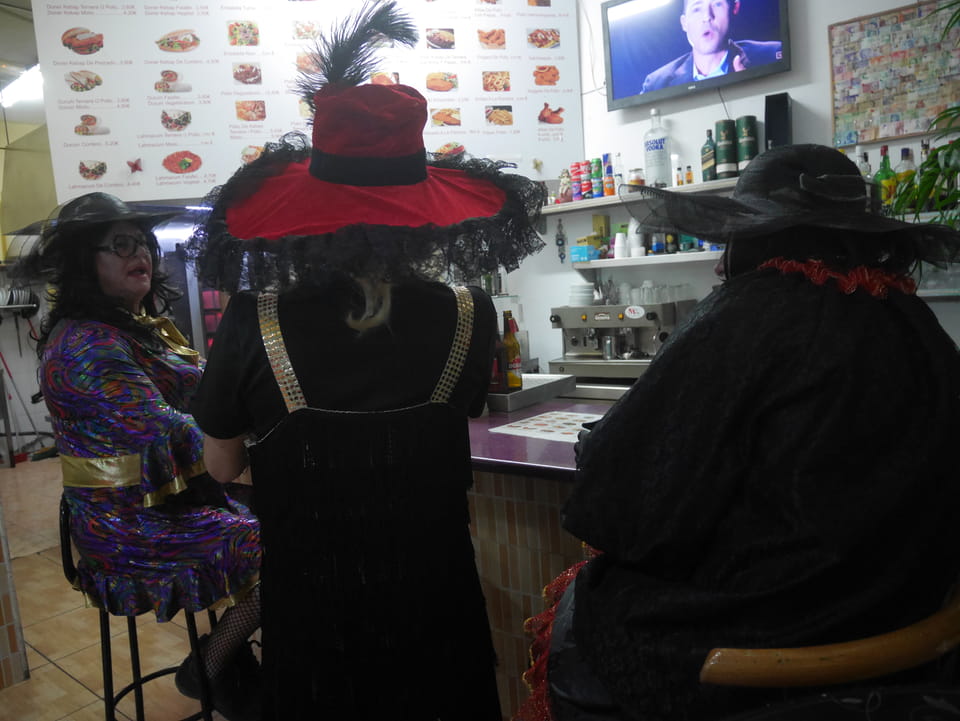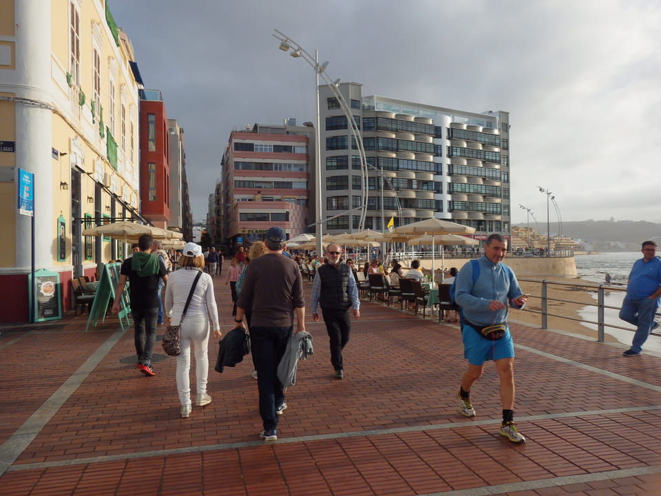 Vor 18:00 zurück in’s Hostel, aß ich etwas Tütensuppe und ging dann gegen 20:00 los, um die Sardine und das Feuerwerk anzuschauen. Wieder alleine unterwegs, weil ich filmen wollte. Die Routine sollte sich etwas ändern, nur müsste ich dann editieren. Aber OK, jetzt waren viele Leute in Las Canteras unterwegs. Die meisten gingen Richtung Norden. Ich hatte keine Ahnung, wo die Sardine angezündet war, doch der Menschenstrom war gut erkennbar. Ich sah dann Polizei und Absperrungen. Die letzte Prozession des Las Palma Carnavals. Die Tradition hier ist, dass Männer sich als Frauen verkleiden und eine Trauerfeier parodieren. Da wird geheult und gejammert, dass die Feier nun zu Ende sei. Es gab auch ein paar Trommler und Tanzgruppen, bevor zwei Trucks die Sache abschlossen.