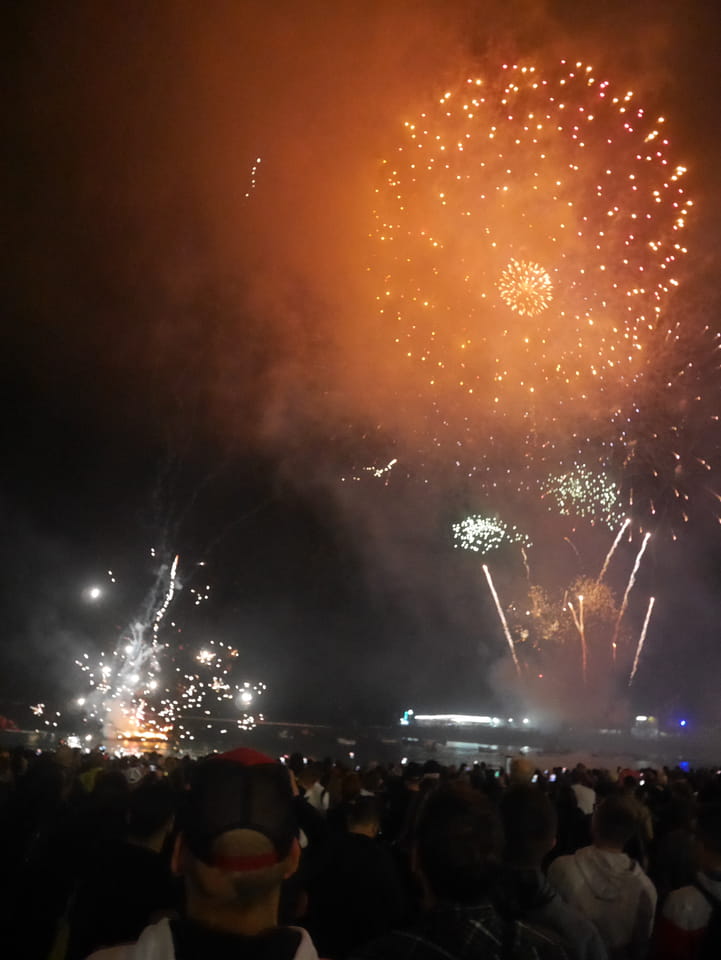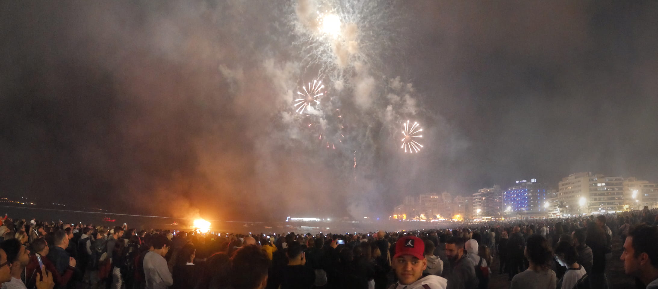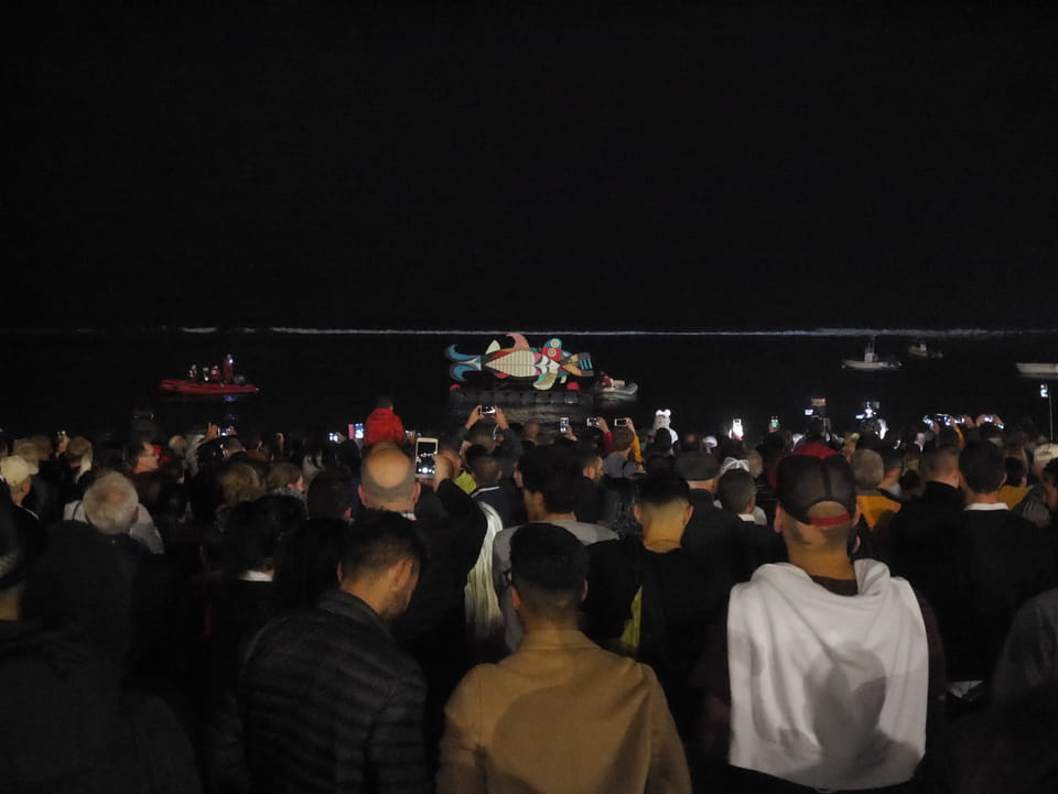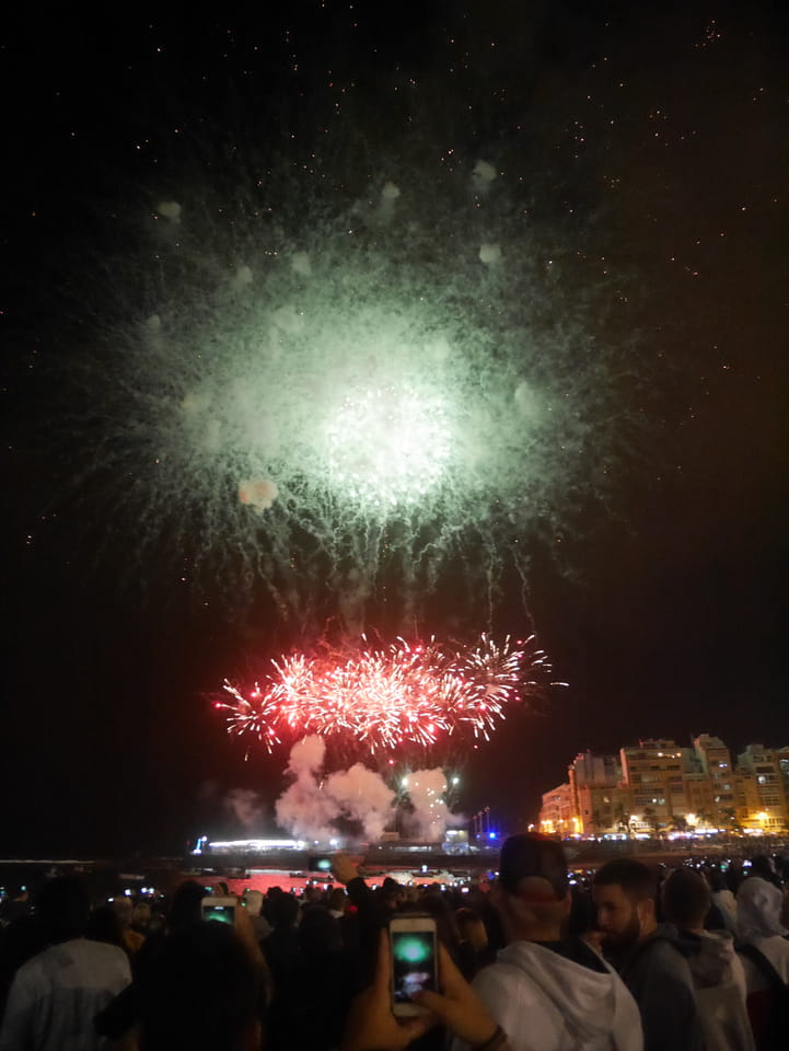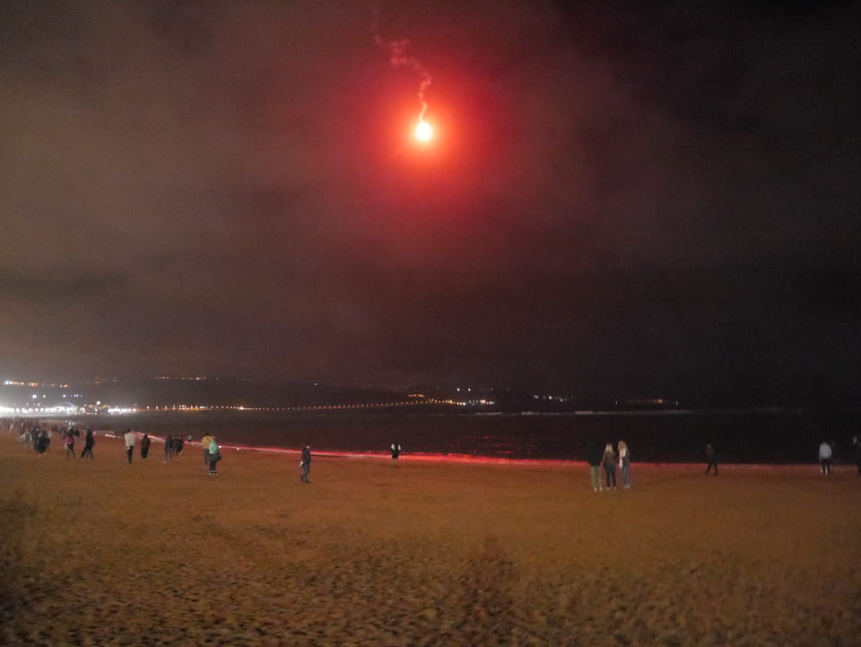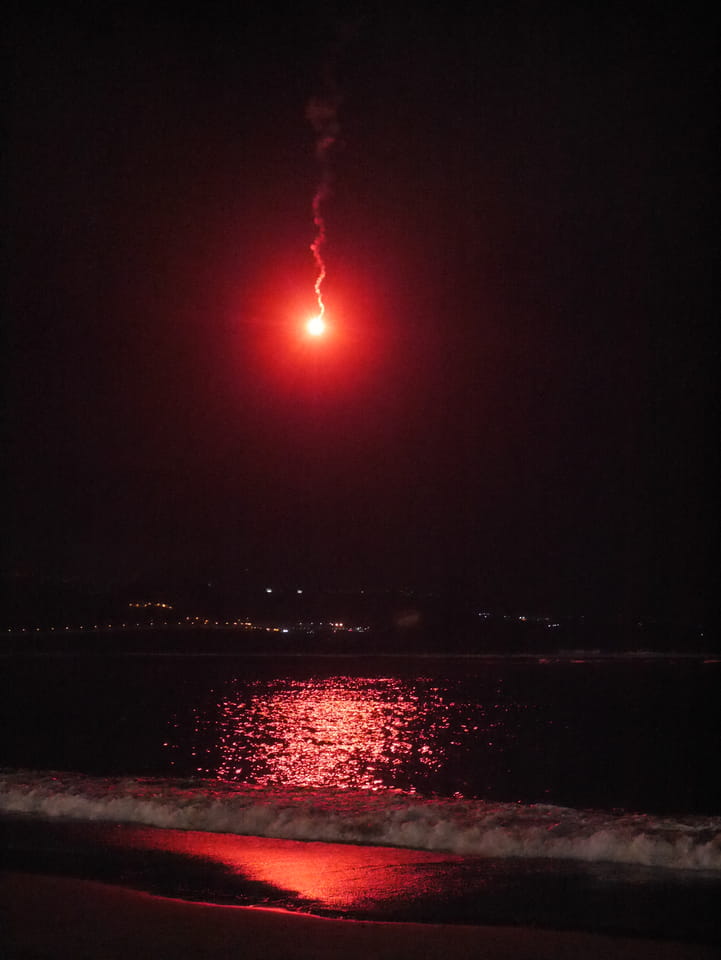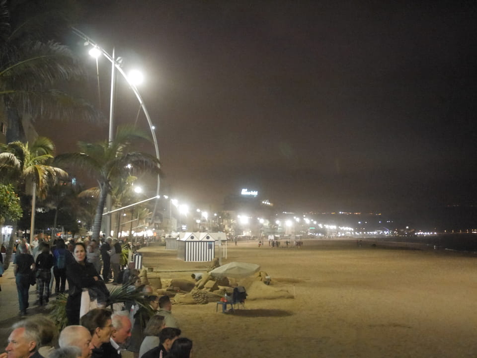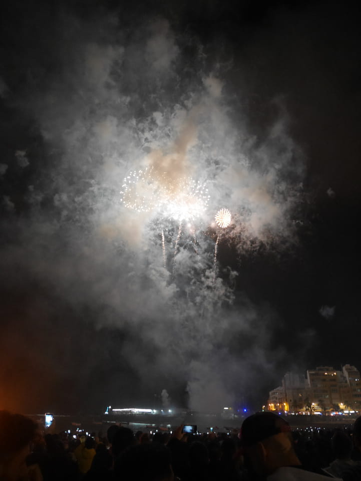 Die Sardine wurde in’s Wasser gebracht und eine riesige Menge Leute stand am Strand, um die Sardine brennen zu sehen. Dann startete ein großes Feuerwerk. Für 20 Minuten feuerte und knallte es ordentlich. Die Sache war eines Neujahrensfeuerwerks würdig. Es wollte gar nicht aufhören. Auch hier eine Überraschung. Der Karneval hier war gestern mit der Parade größer und heute auch mit dem Abschluss imposanter, als ich mir das vorgestellt hatte.