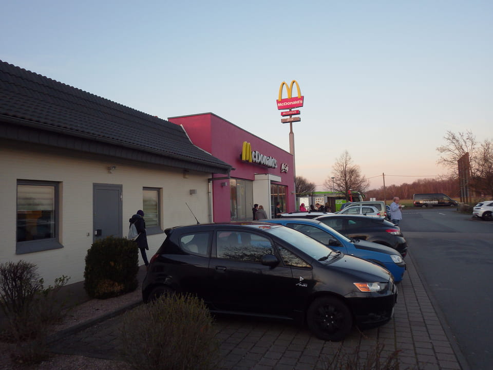Auf einer recht schnellen Route mit Stopps nur in Jena und Erfurt, gab’s erst gegen 18:00 dann eine Pause für den Busfahrer. An der Haltestelle war ein McDondals, sodass ich doch noch zu meinenm McRib kam (€7,09 Menü).