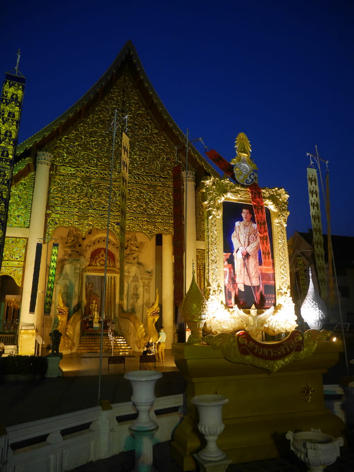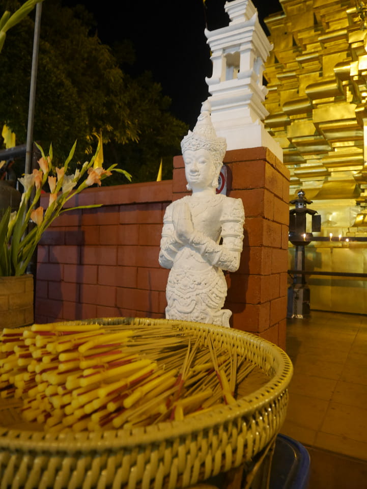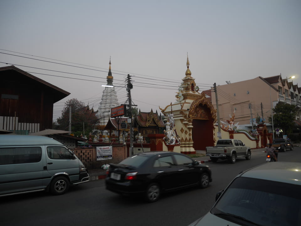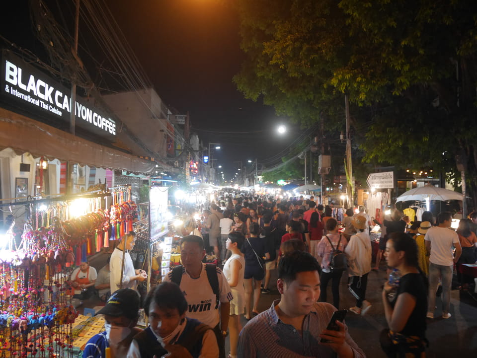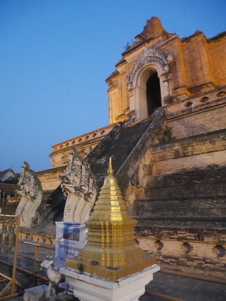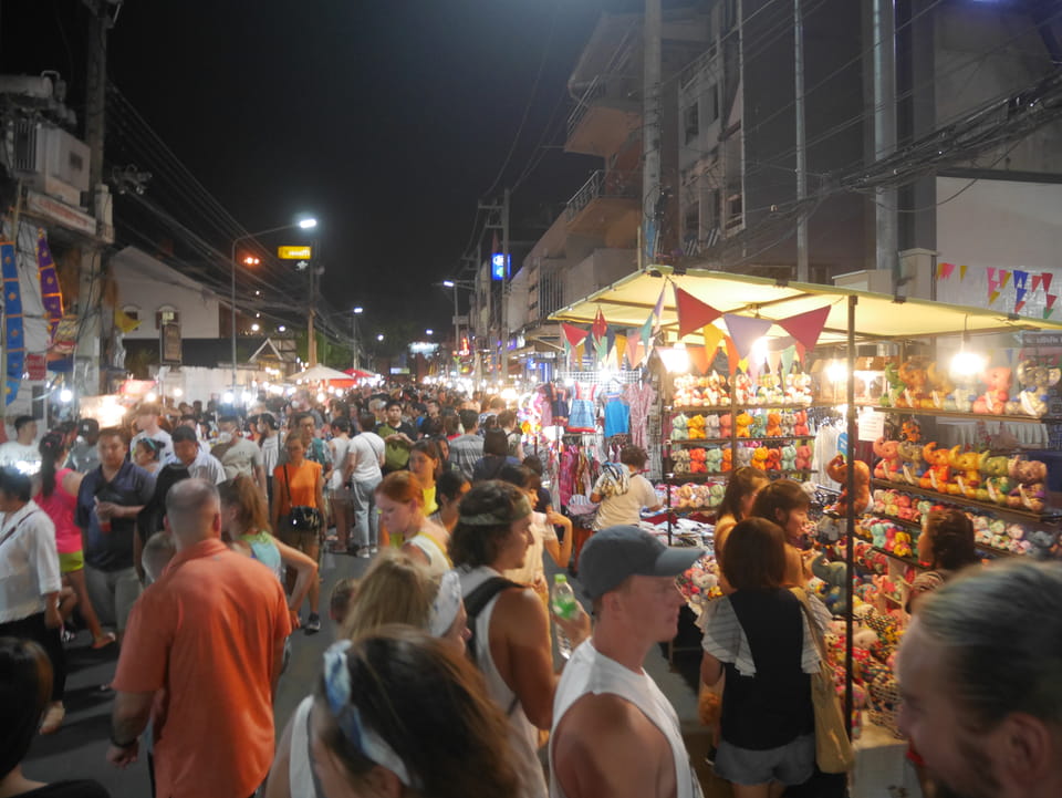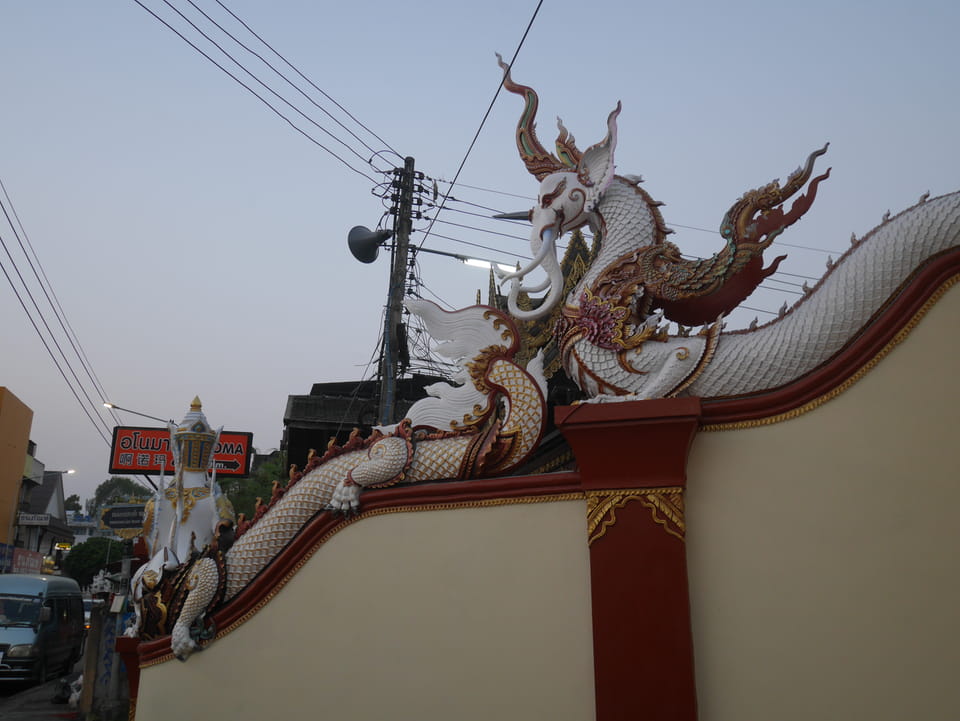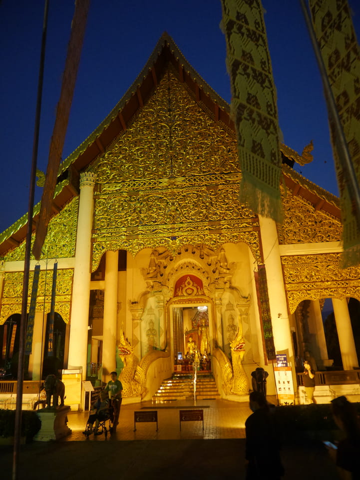 Zuerst schaute ich im Wat Chedi Luang rein (THB 40 Eintritt). Tolle Atmosphäre mit Gebet der Mönche. Danach ging’s zum Markt, wo die Menschmassen sich durch die Straßen schlenderten. Ich war nicht der Einzige, der heute die Sache per Walking Video filmte. Ich ging mit Umwegen bis zum Tha Phae Gate und da war der Osmo auch fertig. das passte fast bis auf die Sekunde genau. Glück gehabt.