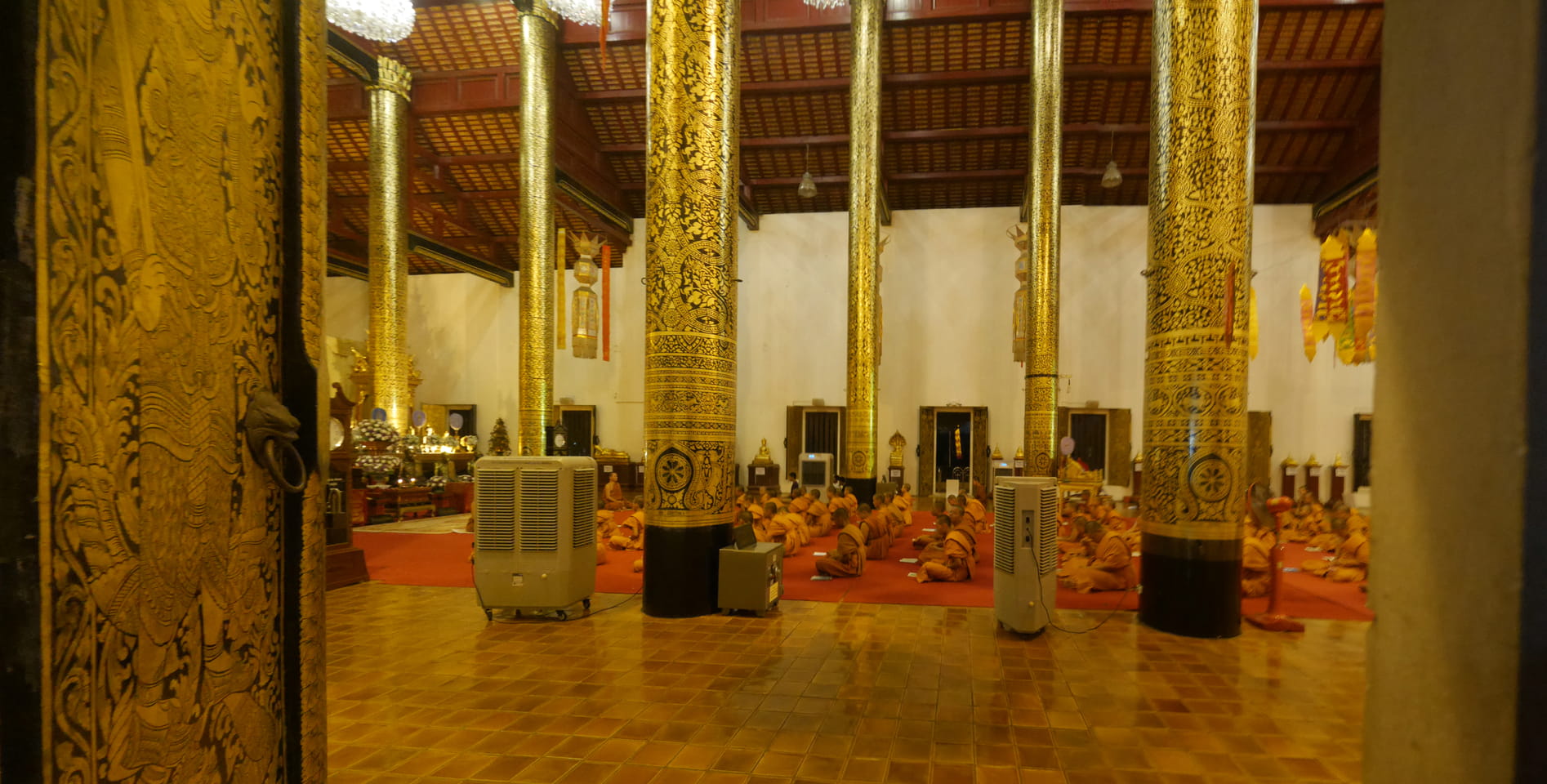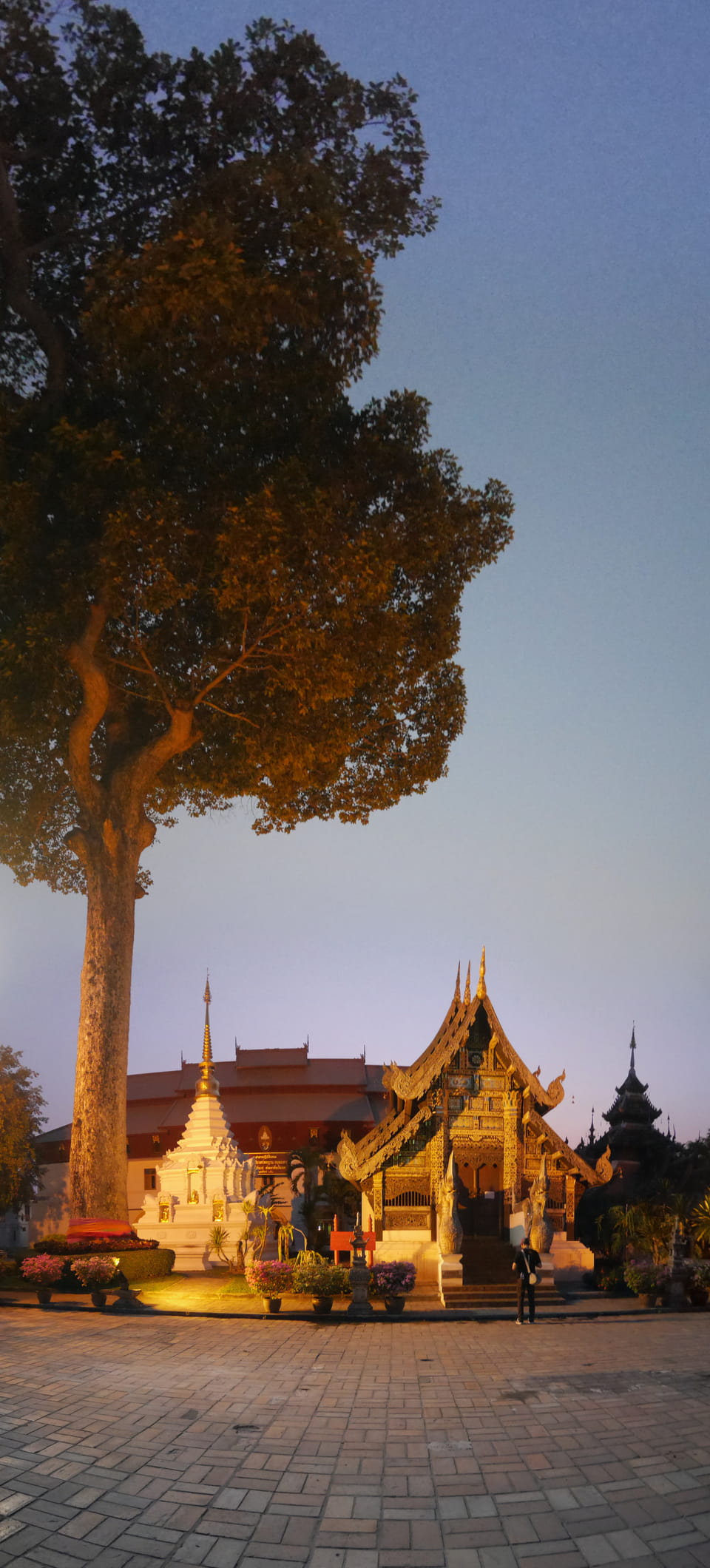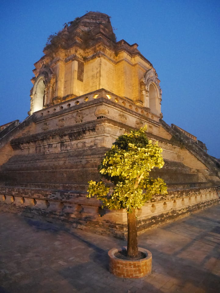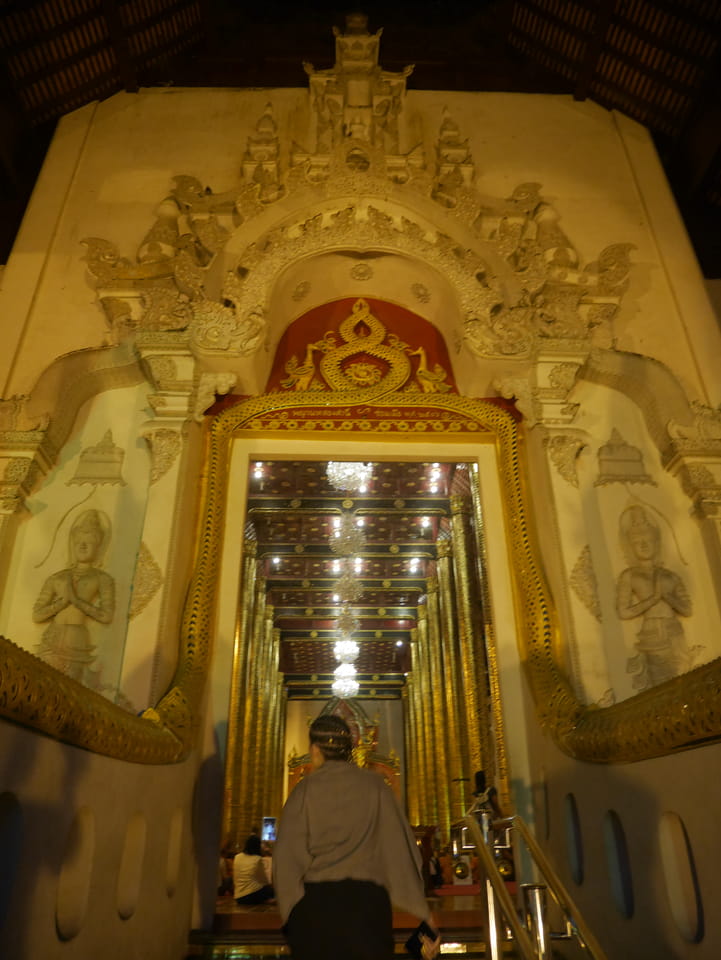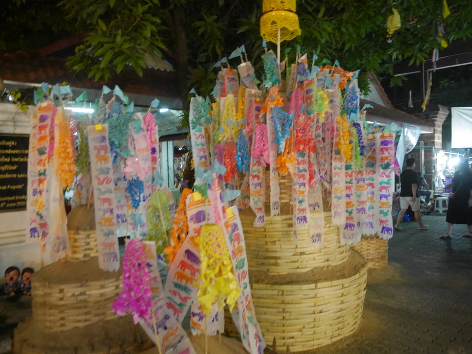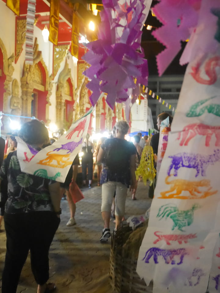 Zuerst schaute ich im Wat Chedi Luang rein (THB 40 Eintritt). Tolle Atmosphäre mit Gebet der Mönche. Danach ging’s zum Markt, wo die Menschmassen sich durch die Straßen schlenderten. Ich war nicht der Einzige, der heute die Sache per Walking Video filmte. Ich ging mit Umwegen bis zum Tha Phae Gate und da war der Osmo auch fertig. das passte fast bis auf die Sekunde genau. Glück gehabt.