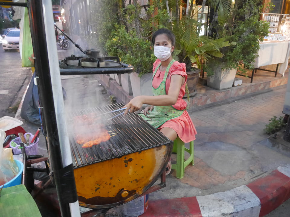 Draußen schaute ich in einer Apotheke, ob ich irgendwie einen kleinen Kühlakku finde. Es gab eine Augenkühlmaske, die ich kaufte (120 THB). Sonst ist Thailand eher spärlich in Sachen Kühlakkus ausgestattet. Ich ärgere mich, dass ich ein Sparkassengeschenk – eine Kühlakkutasche – doch zu Hause ließ.