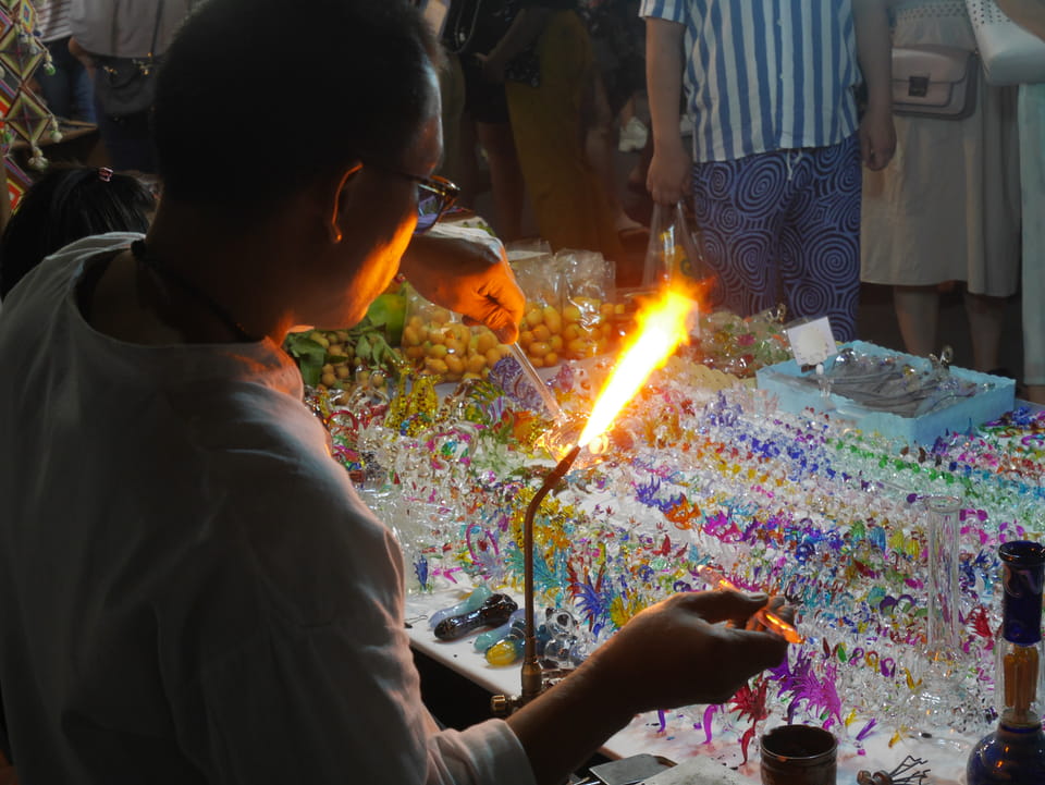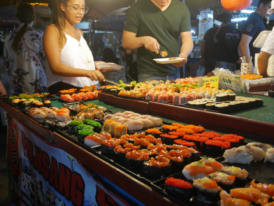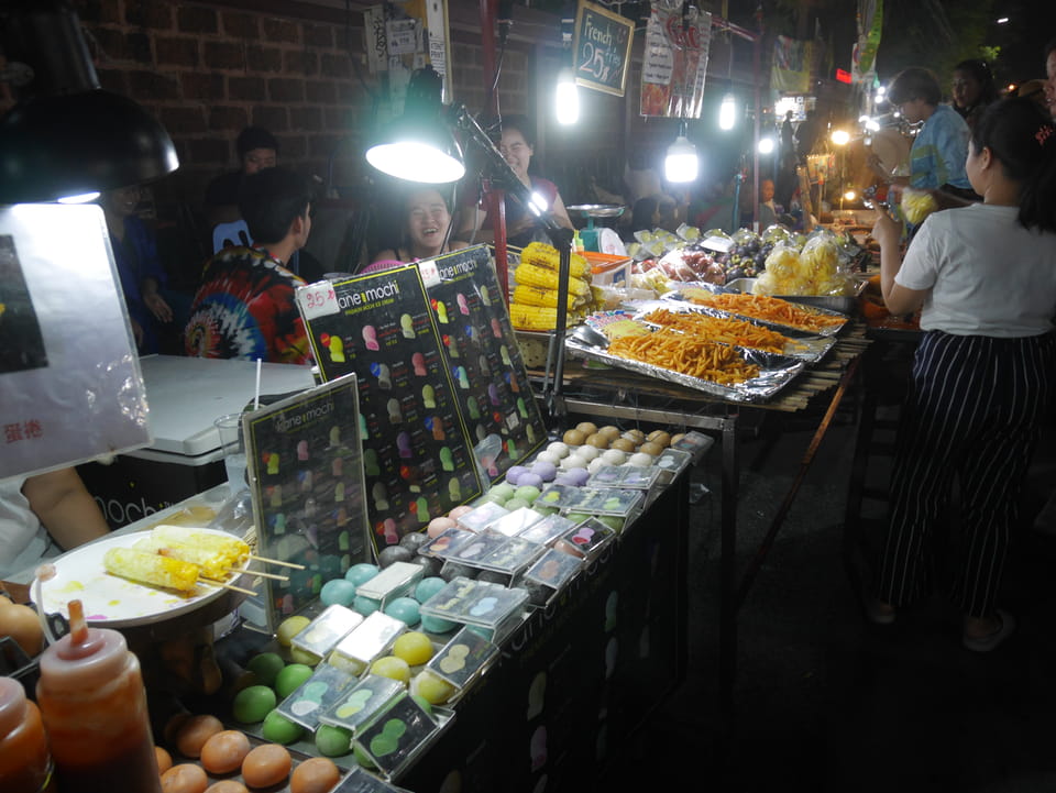 Ich hatte einen eiskalten Waschlappen in einem Ziploc Beutel, den ich zur Kühlung um den Osmo Pocket legen wollte. Es ist einfach Mist, wenn nach ca. 35′ alles Schluss ist. Ich kühlte auch den Osmo im Kühlschrank für vielleicht ein paar Minuten mehr. Dann ging’s endlich los, ich ging Richtung Sonntags Nachtmarkt.
