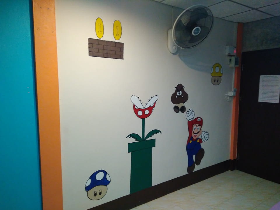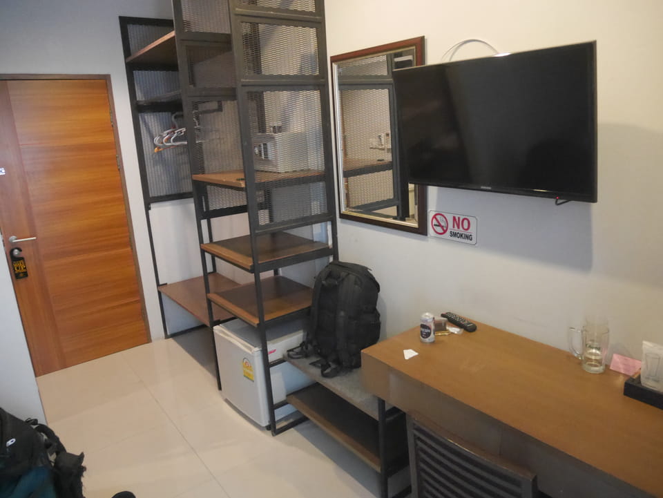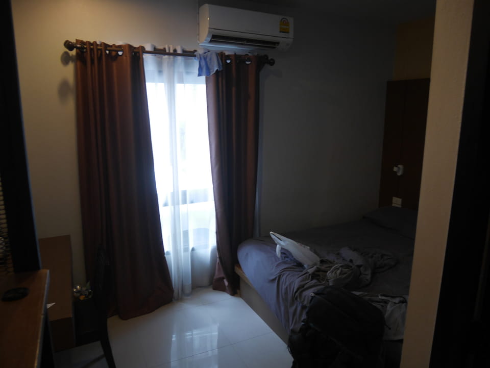 Das Billigzimmer sah auf dem Photo schon schrecklich aus, ich nahm dann doch für 490 THB ein’s mit Klima. Eine Mario Bros. Deko, harte Matraze und doch sehr spartanisch. Die Toilette hatte nicht mal Wasserspülung. Indien lässt grüßen.
