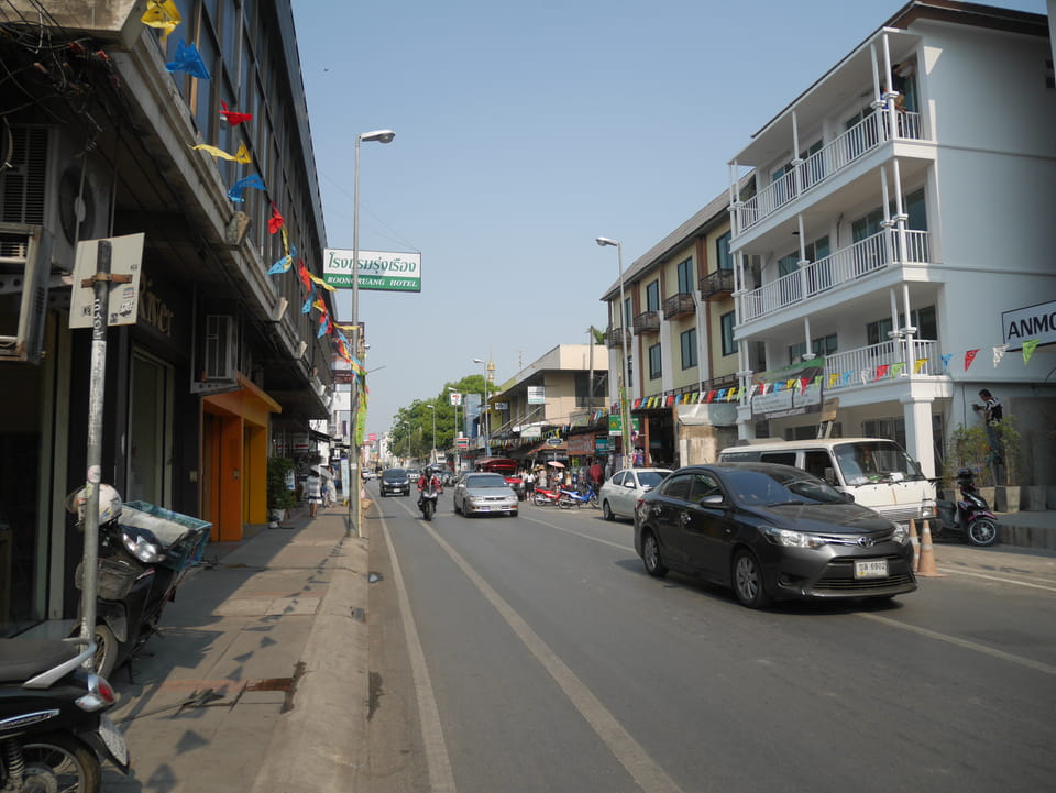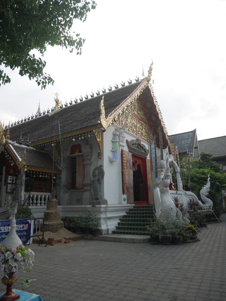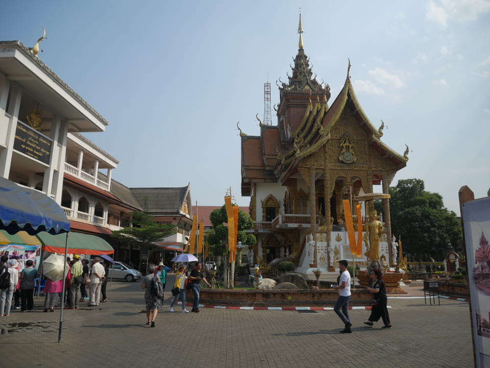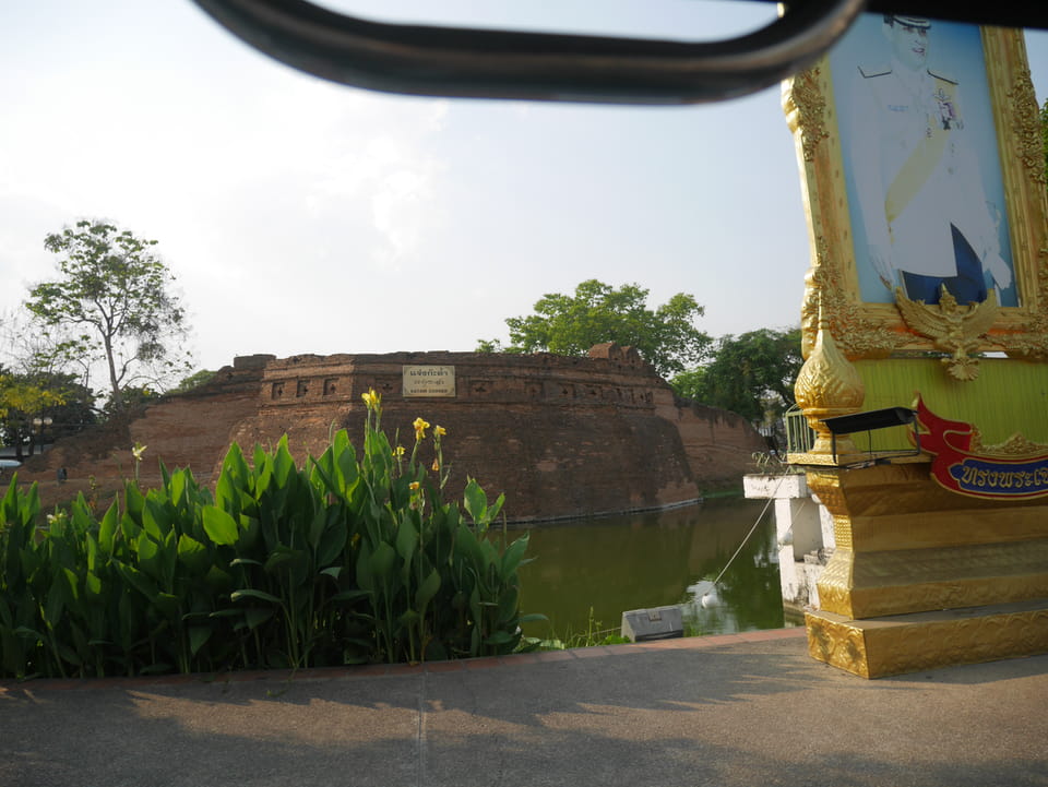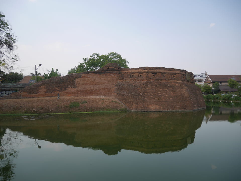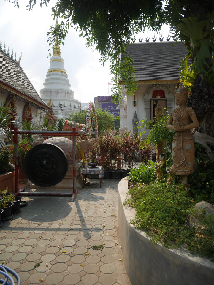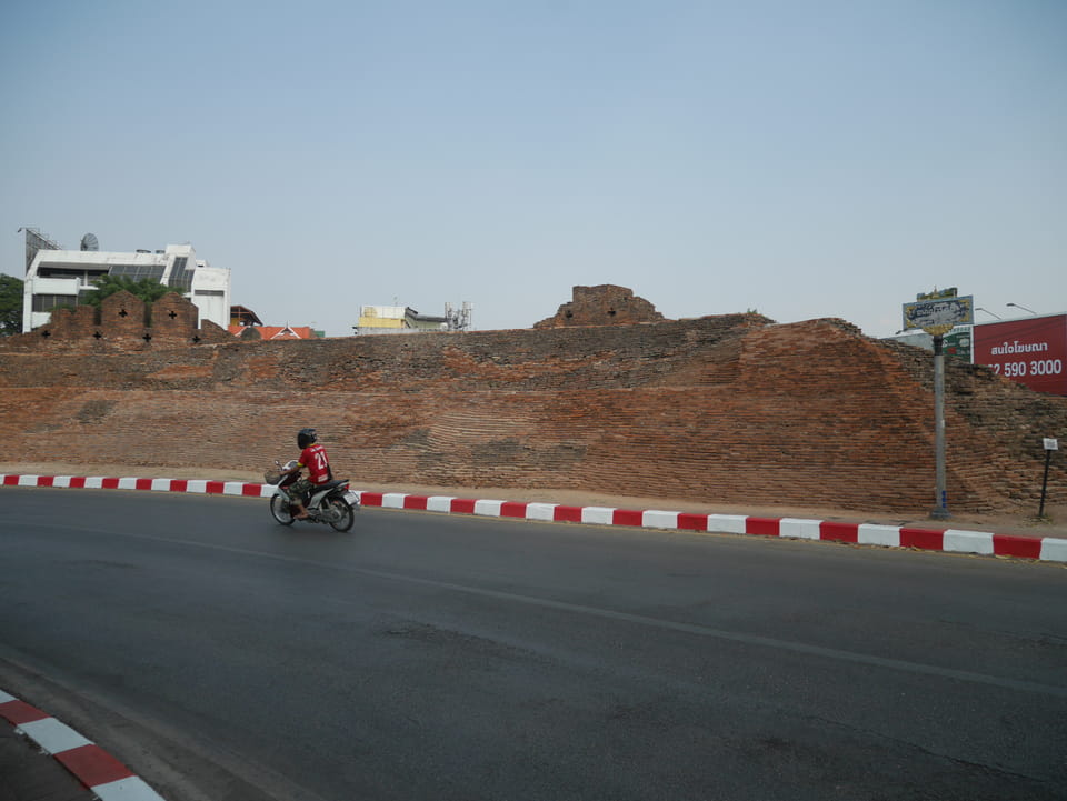 Meine Osmo Kühlung war inwzischen auch warm geworden, doch ich legte in der Nachmittagshitze los. Vom Tha Pae Gate ging’s auf die Straße, vorbei an Wats. Da merkte ich nach ein paar Minuten, dass das Micro aus war. Mal wieder der Akku alle.