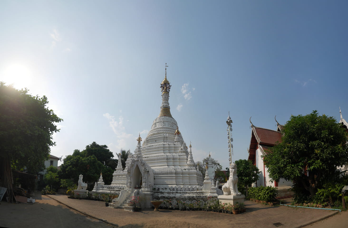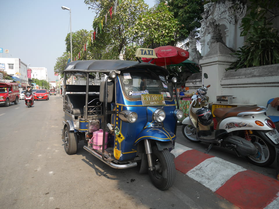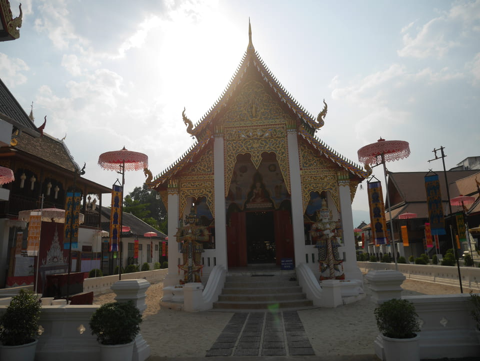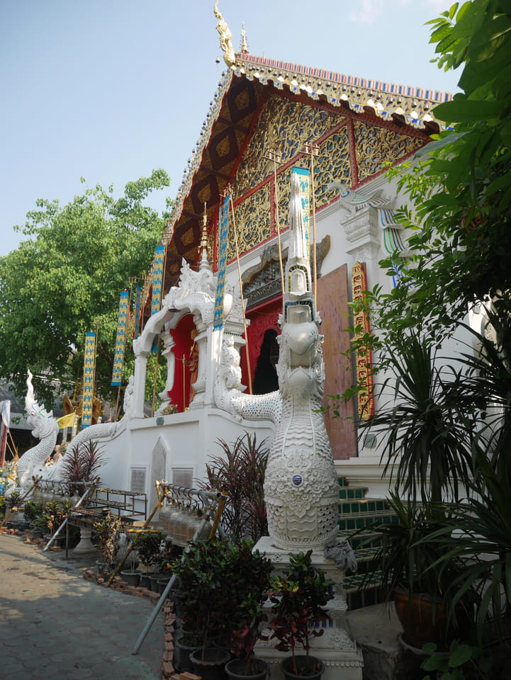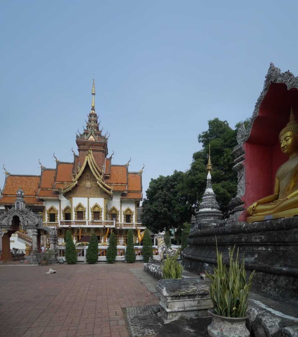 Meine Osmo Kühlung war inwzischen auch warm geworden, doch ich legte in der Nachmittagshitze los. Vom Tha Pae Gate ging’s auf die Straße, vorbei an Wats. Da merkte ich nach ein paar Minuten, dass das Micro aus war. Mal wieder der Akku alle.