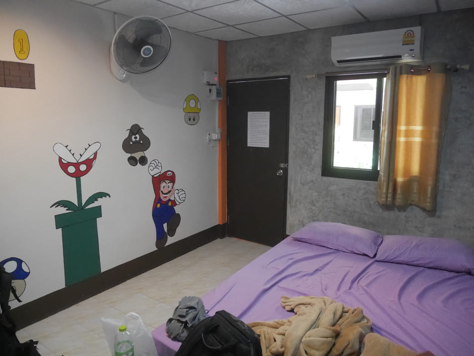 Da war ich im Chern Chan Hostel. Das machte einen sehr guten Eindruck. Das Zimmer dann auch. Bei dem Preis von 490 THB, dem gleichen, wie für das schlechte Doppelzimmer in Rayong, kann man auch bissel was erwarten. Hier gab’s aber bequeme Betten, tolle Bettbezüge und sogar Frühstück. Trotz mangelnder Privatspähre ein besserer Deal.