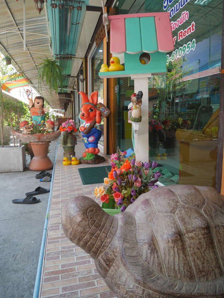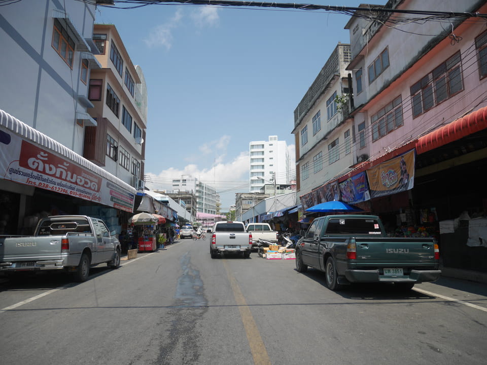 Kein Problem hier aber meine Stimmung war etwas mies. Die Hitze hier macht zu schaffen aber eine weitere Nacht wollte ich nicht hier bleiben. Trotzdem drehte ich eine Runde um den Block. Dabei wollte ich bei 7-11 Guthaben auf meine Karte einzahlen, was aber an der Sprachbarriere scheiterte. Es gab Angebote, die ich online nehmen wollte, die aber wohl doch nicht für Touristen gedacht waren. Man verband mich noch über Handy mit einer englischsprachigen Miss aber alles für nix. Ich zog weiter, nahm 1,5GB 512Kbit für ’ne Woche und ca. €2,50THB – danach 64Kbit.