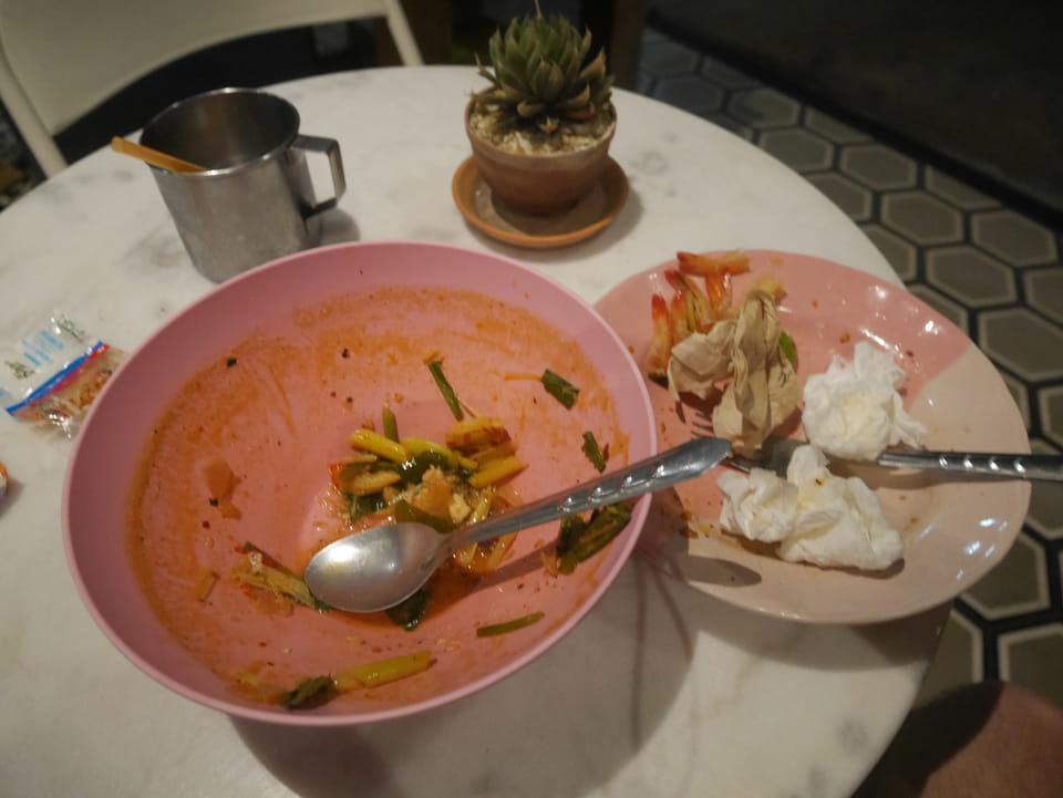 Ich chillte erst mal herum, bestellte mir auf der Straße ein Essen, was mir dann an’s Hostel geliefert wurde. Tomy Yum mit Huhn und Shrimps und dann noch Reisnudeln mit Hühnchen. Die Tom Yum war scharf, wie ich es mag. Bei der Hitze schwitze ich wie selten.