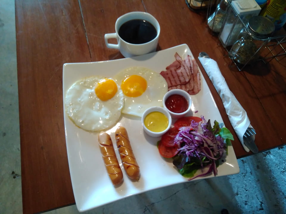 Trotz Wecker hatte ich’s verschlafen. Die Uhr zeigte 10:30 und Frühstück gab’s nur bis 10? Ich ging runter und bekam noch ein nettes Tablet.