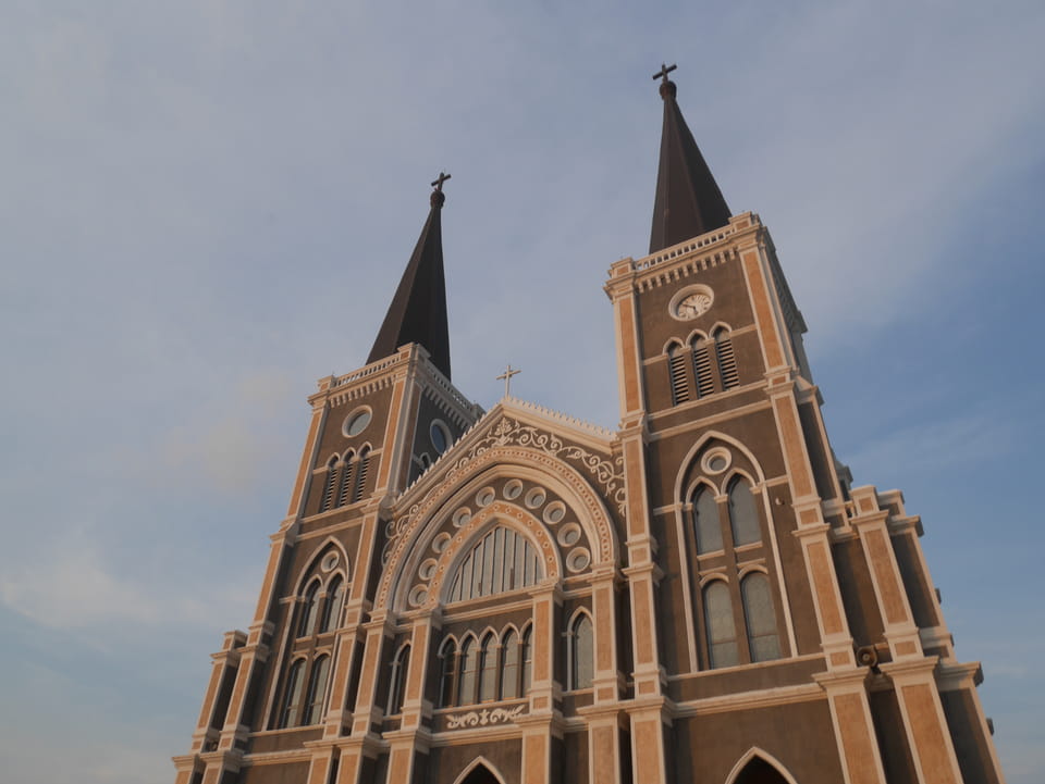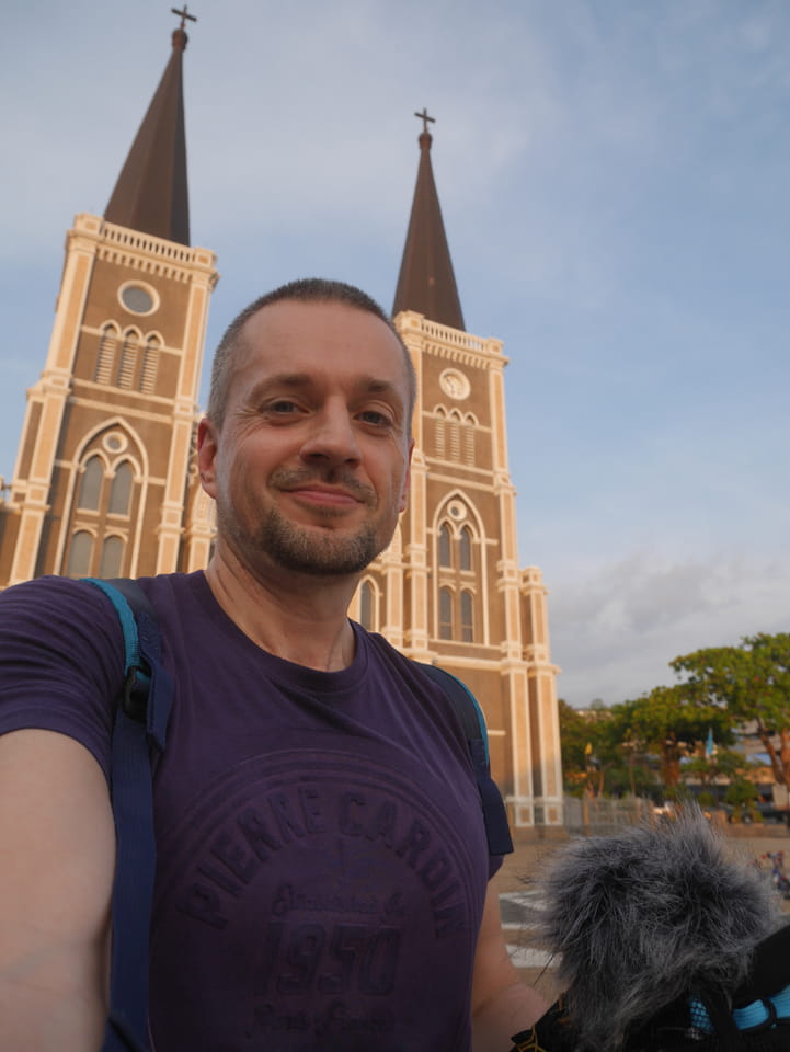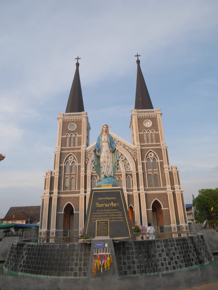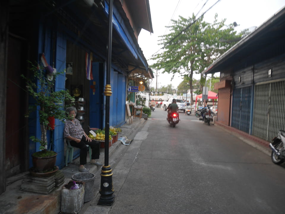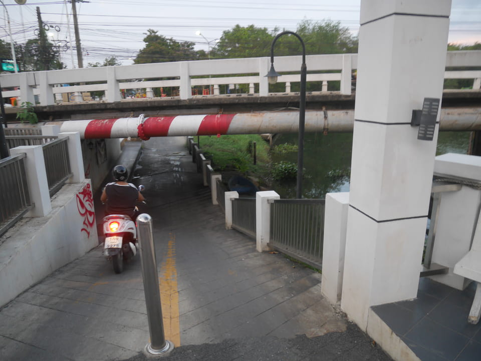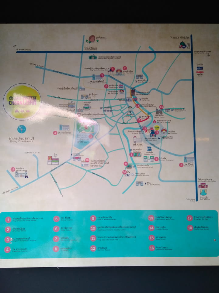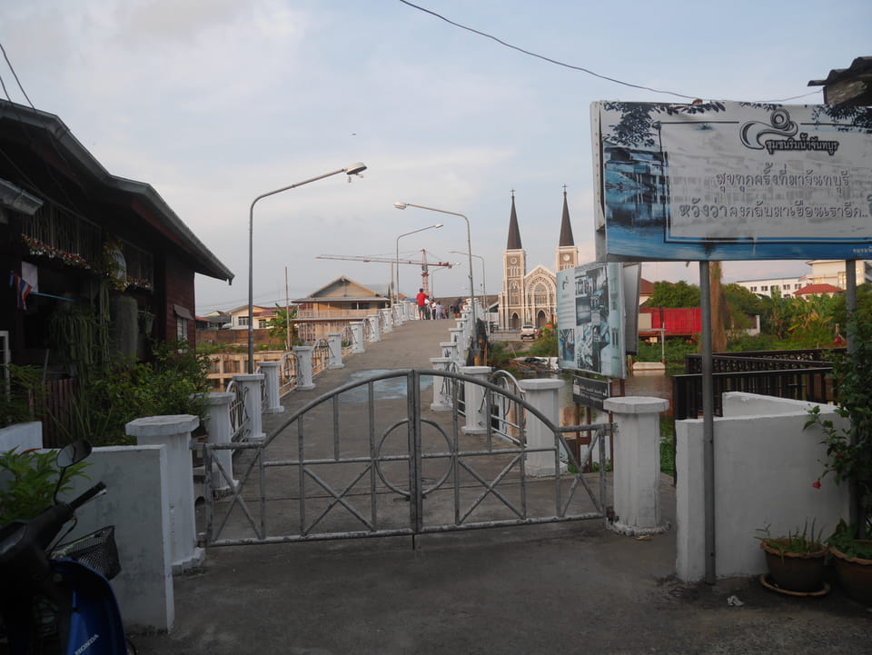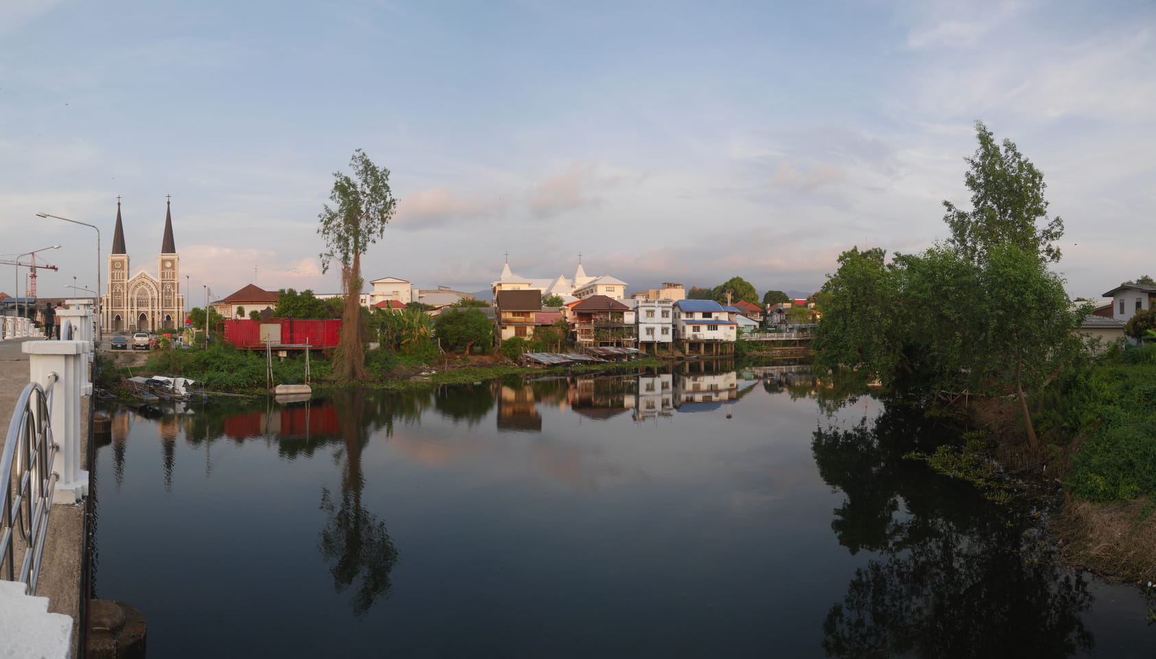 In Chanthaburi gibt’s sogar eine katholische Kirche, die man über eine kleine Brücke erreicht. Ansonsten war ich auf der Suche nach einem Bild, der Waterfront. Die Szene fand ich schließlich ganz am Schluss, wieder von einer Brücke ein Blick auf die Old Waterfront Chanthaburis.