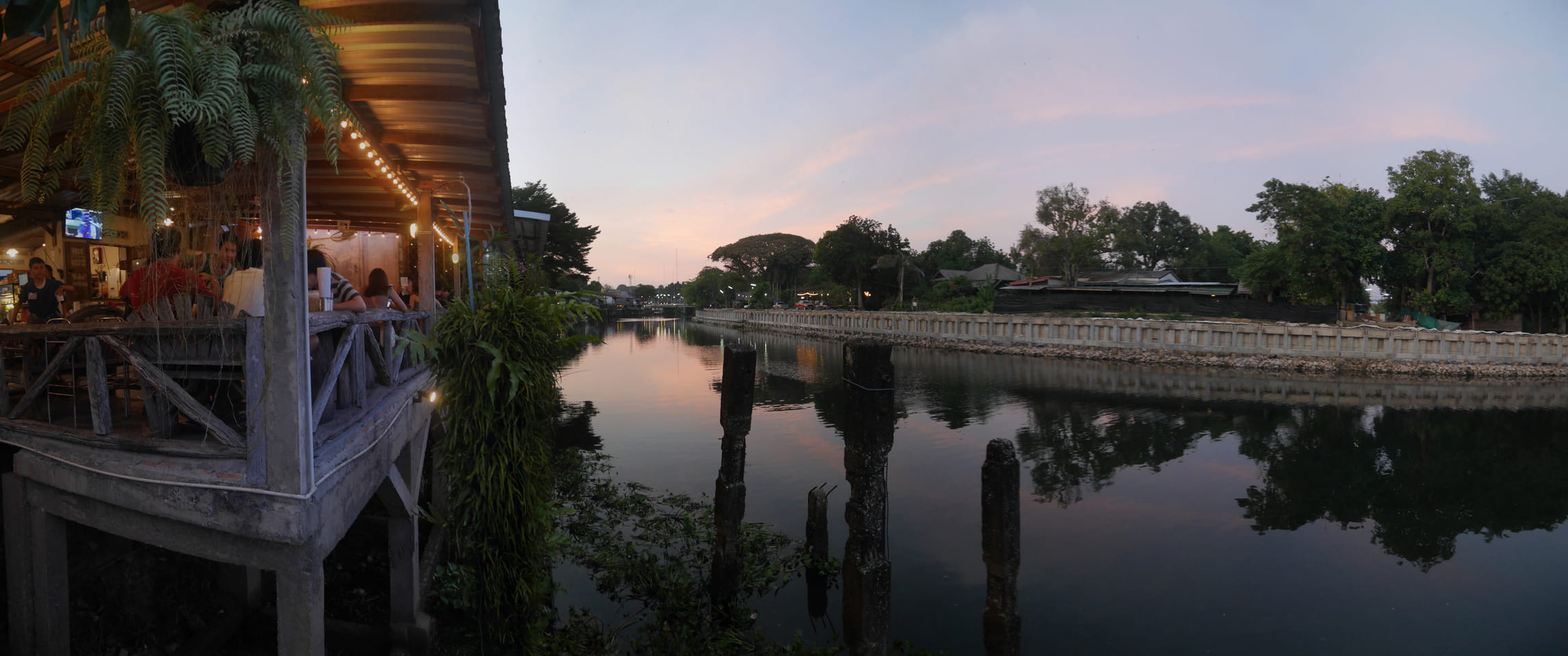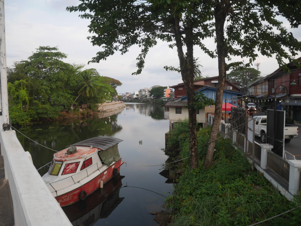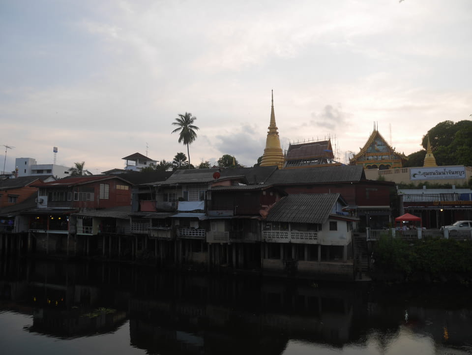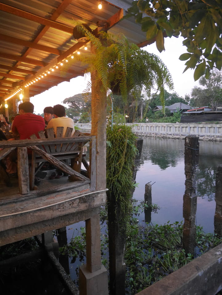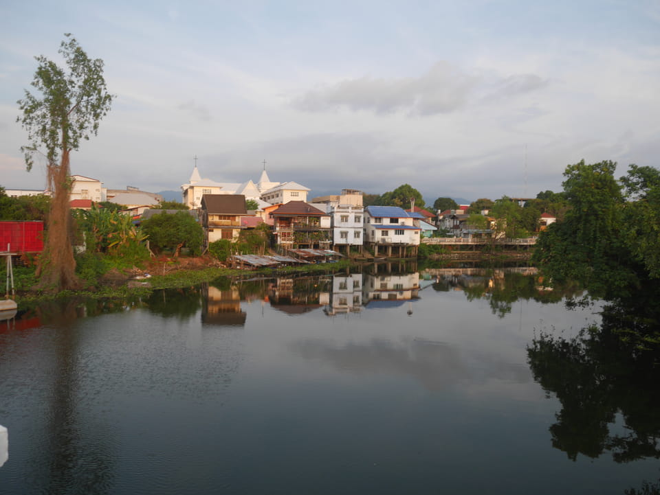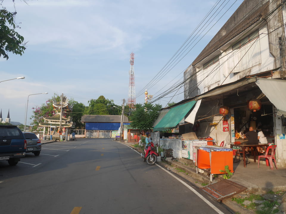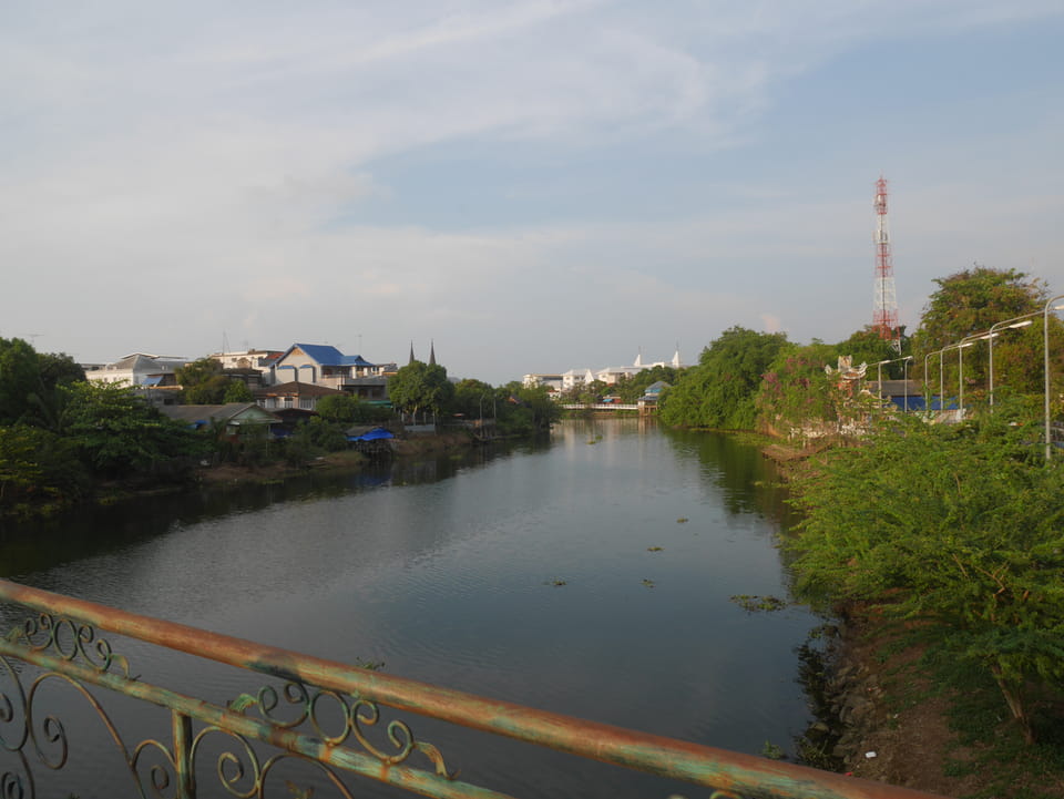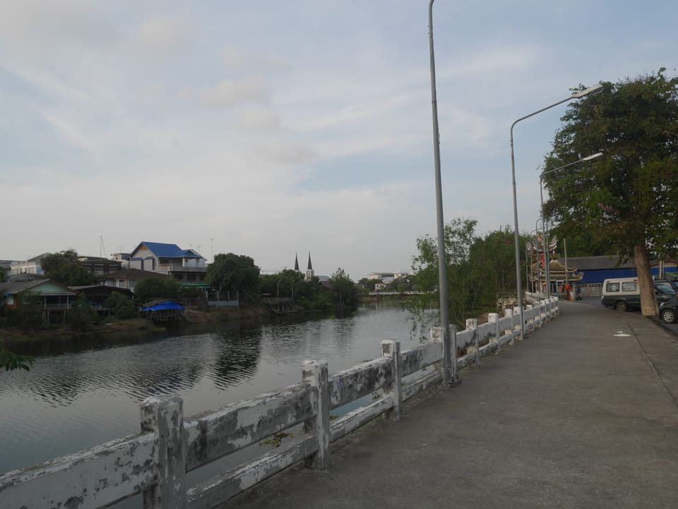 Ganz so viele Touristen gibt’s hier nicht aber ein paar Leute schon. Es gibt halt wenig zu gucken, was aber eben ganz nett ist. Ein halb verschlafener Ort da am Fluss, wobei der moderne Stadtteil ganz normal thailändisch ist.