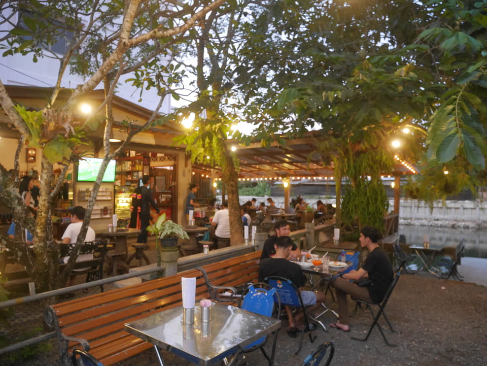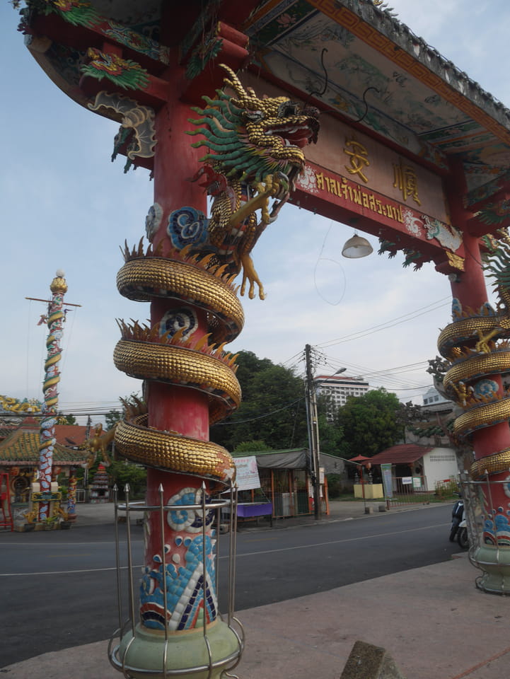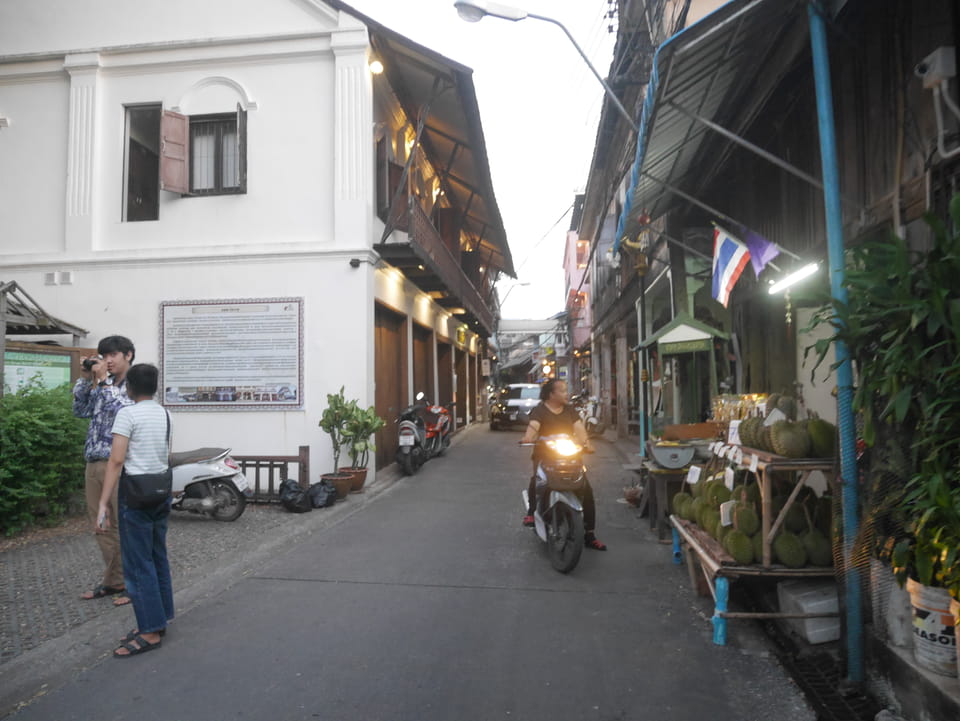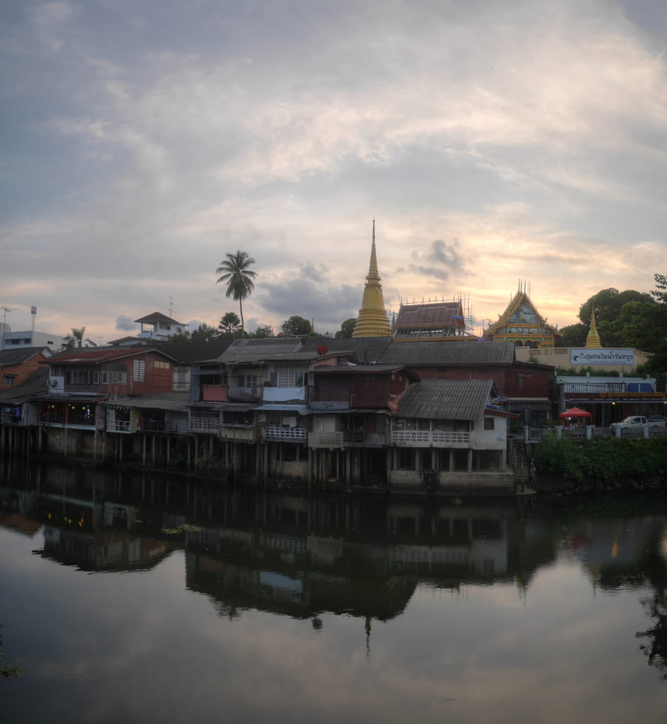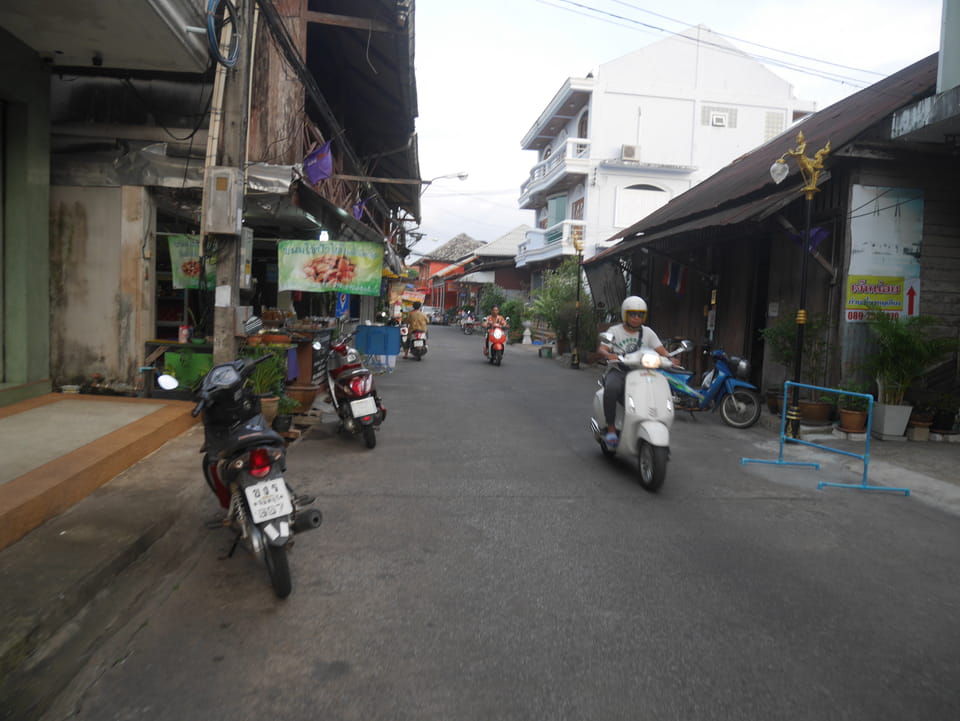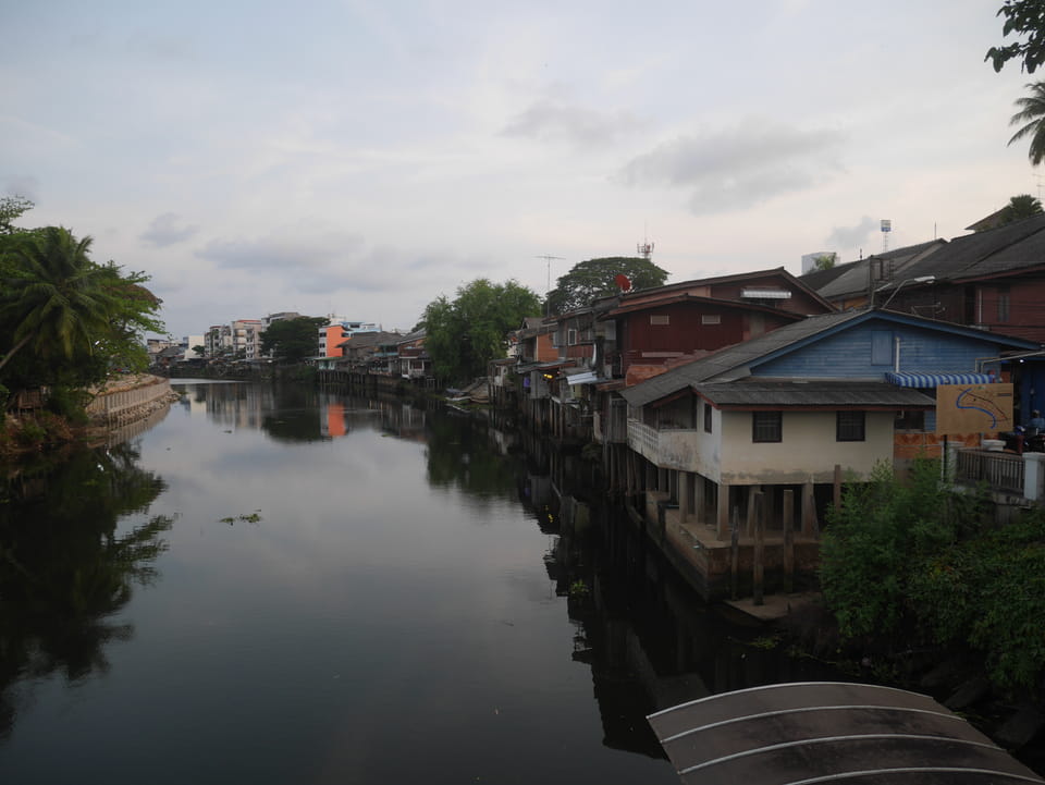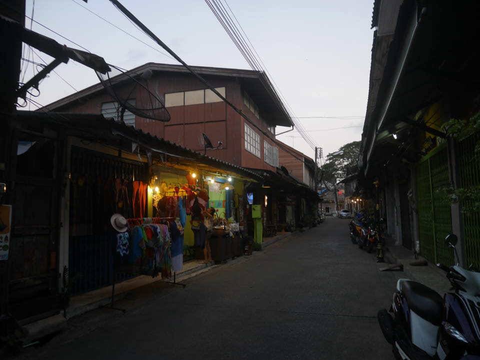Ganz so viele Touristen gibt’s hier nicht aber ein paar Leute schon. Es gibt halt wenig zu gucken, was aber eben ganz nett ist. Ein halb verschlafener Ort da am Fluss, wobei der moderne Stadtteil ganz normal thailändisch ist.